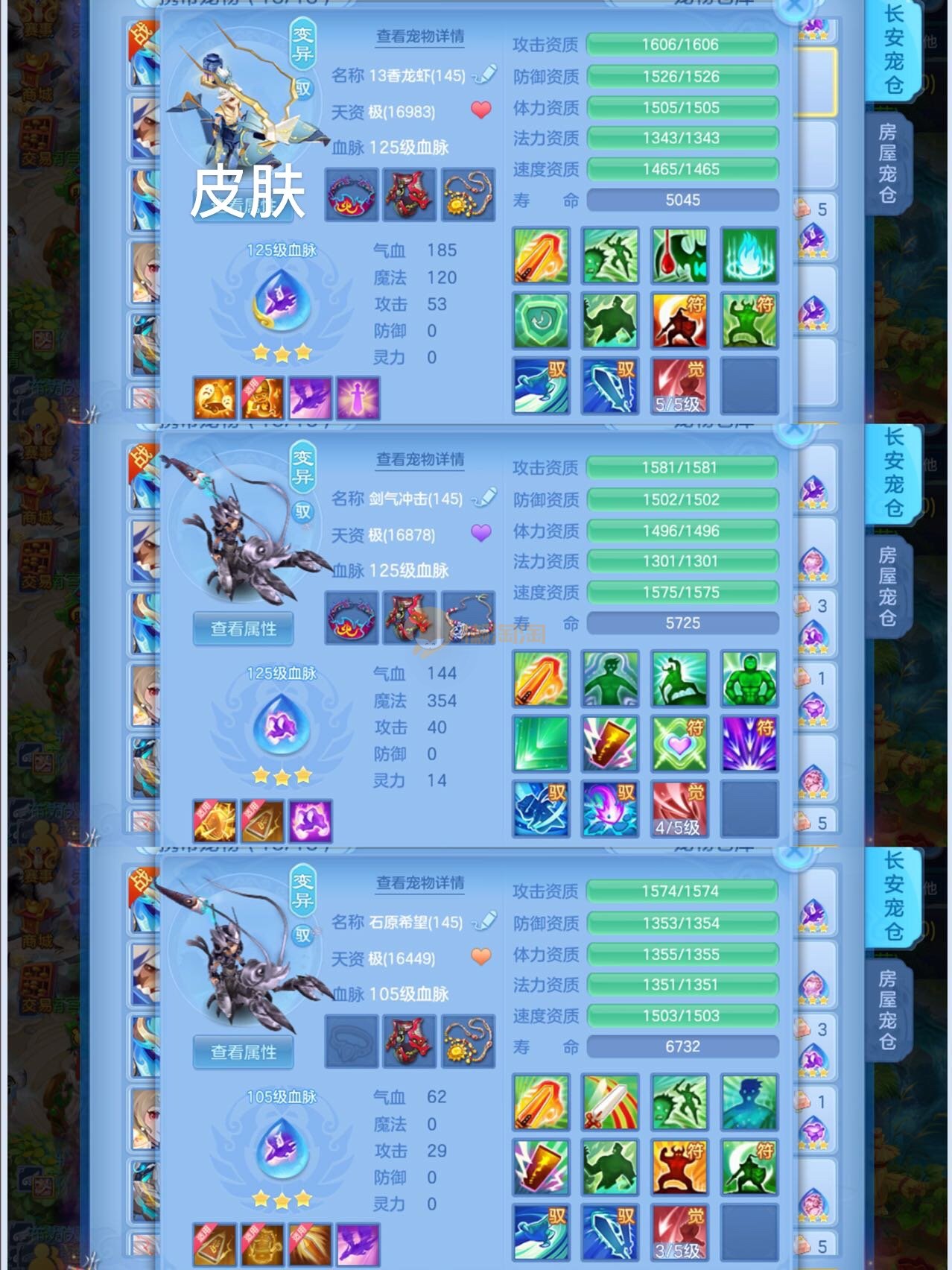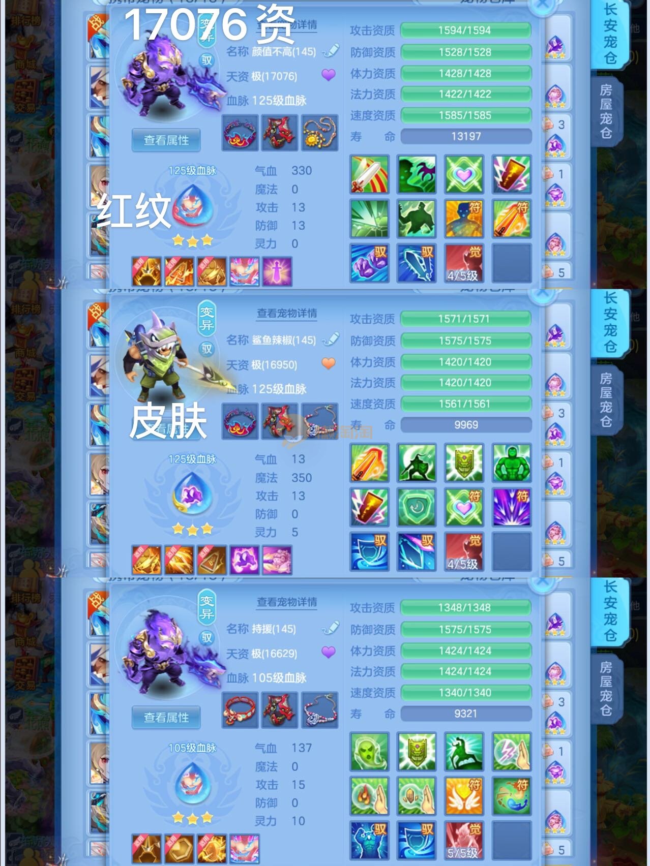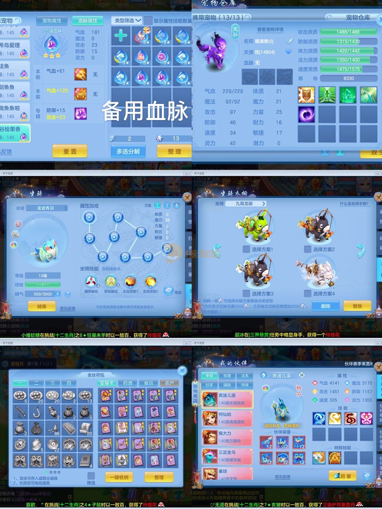 3件14段2星装备,19个6技能,14只满兽魂,7个红纹3专属血脉,5只宠物皮肤,3个高级坐骑,海景房,带150万银子,可以改密码关联手机