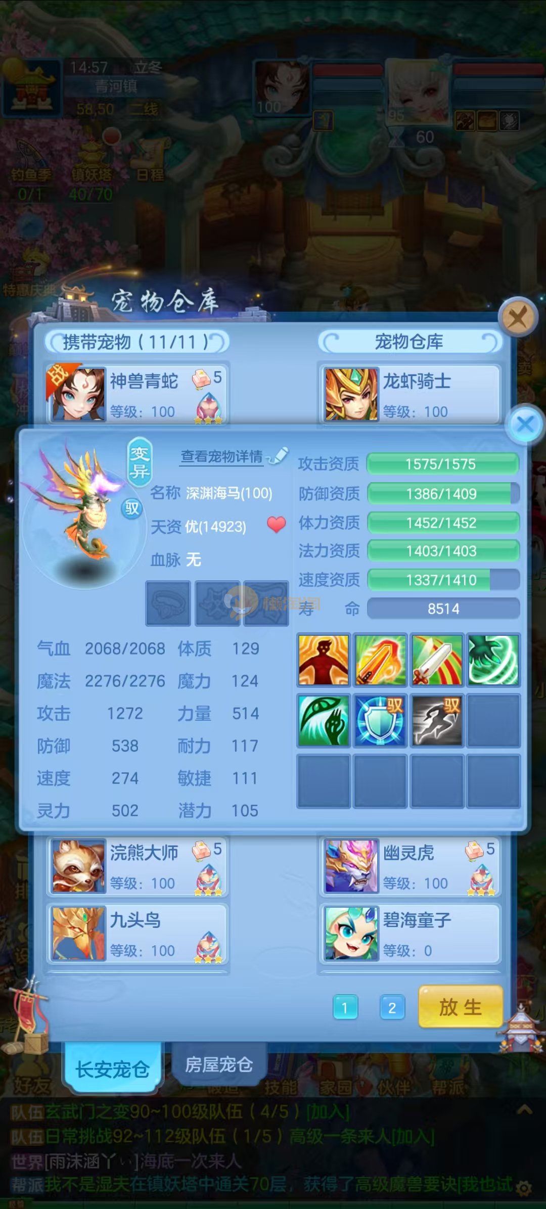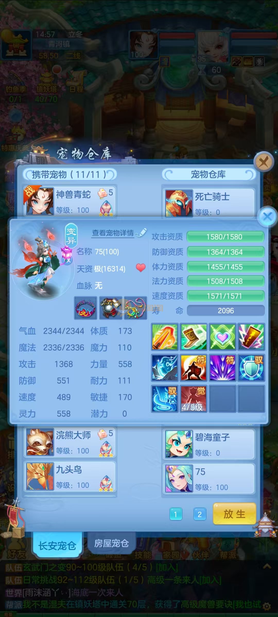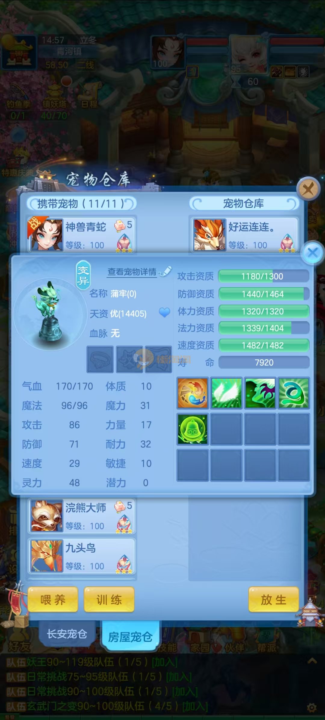 周年相伴95魔王 2蛇1强化玉龙,宝宝齐全。装备法物理均可,物理12段,法系11段混,3套属性,血脉基本上毕业血脉,低价出售