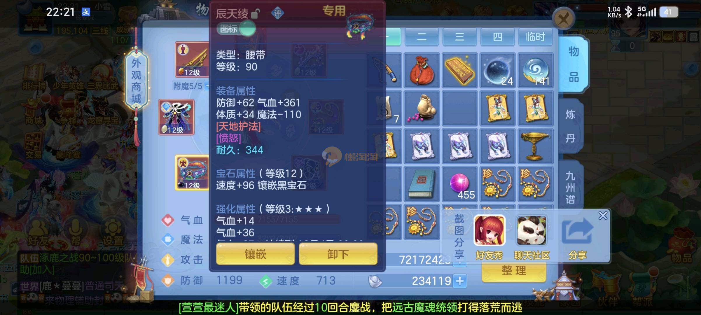 95神器头盔愤怒易腰带封,满段3神差一个内胆,无敌蒲牢,弄2只卡速被内胆存好就可以打架