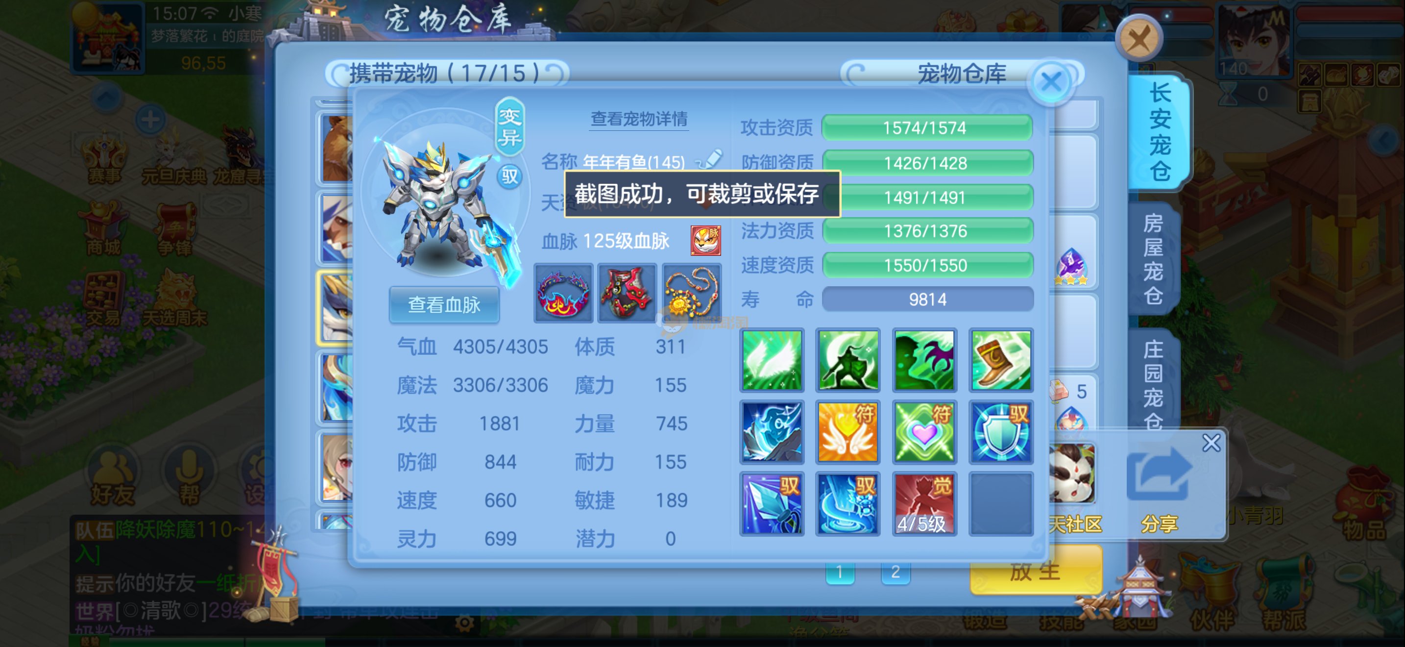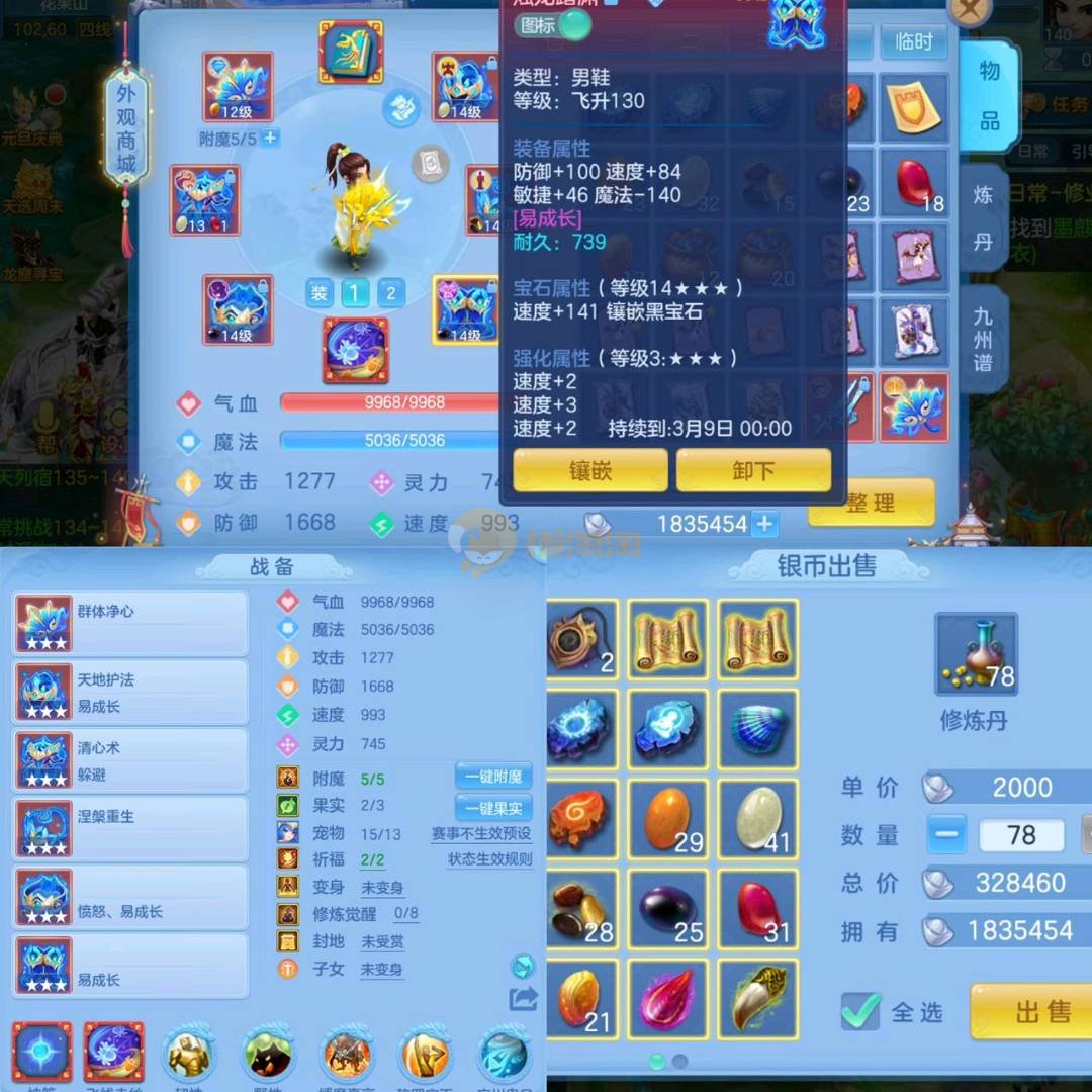 5件14段4星140级男方寸,14满兽魂,9专属,带215万银子