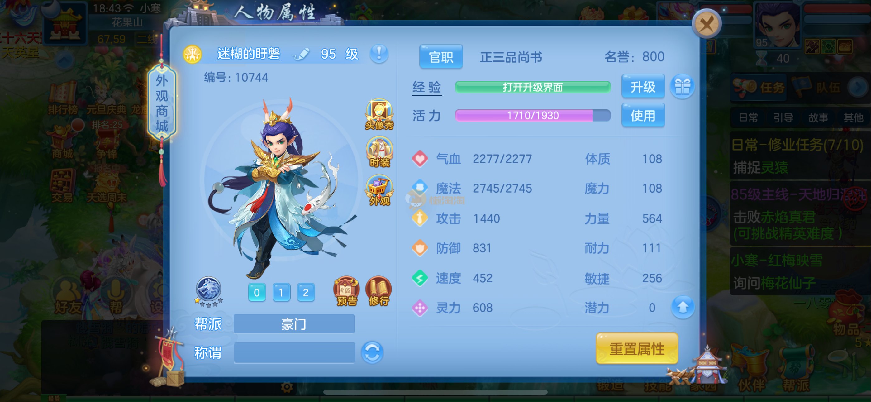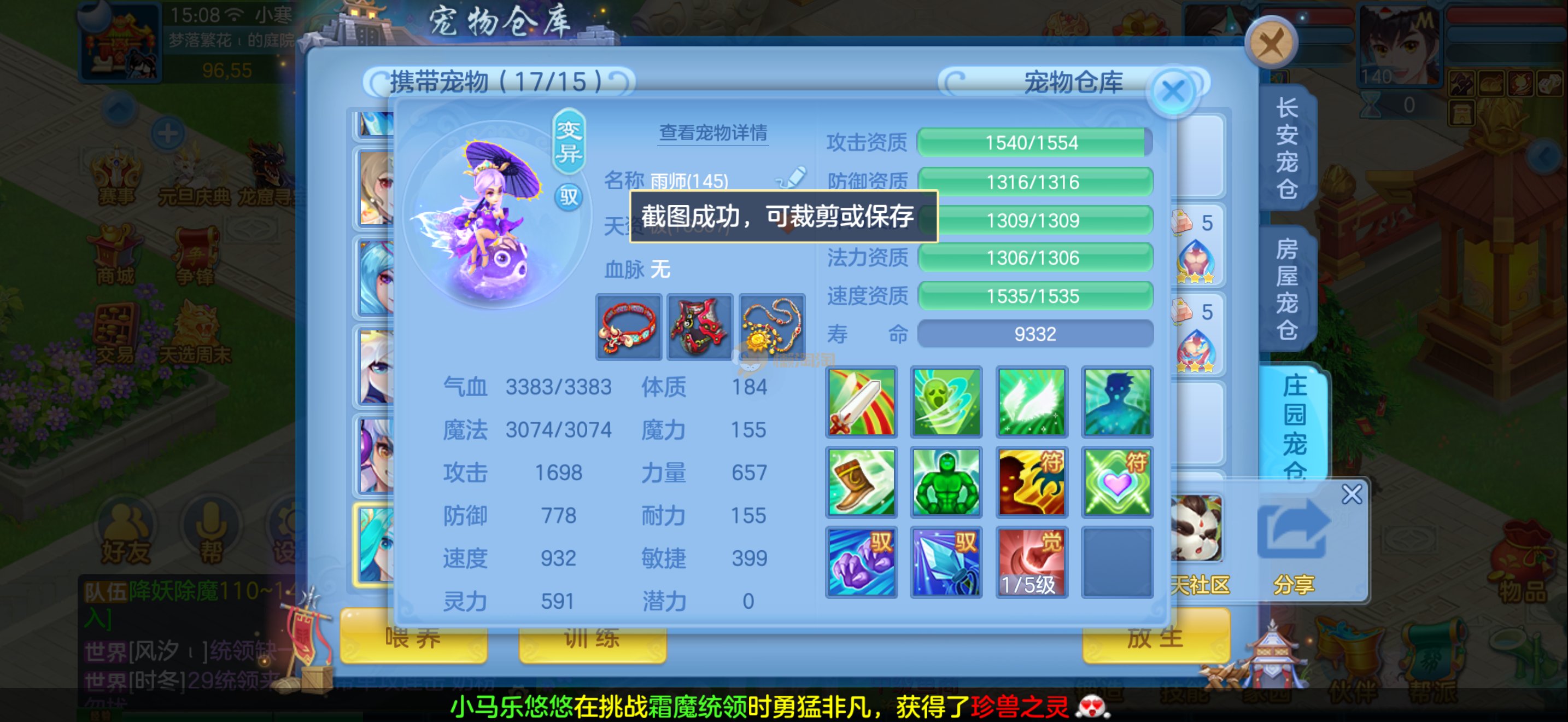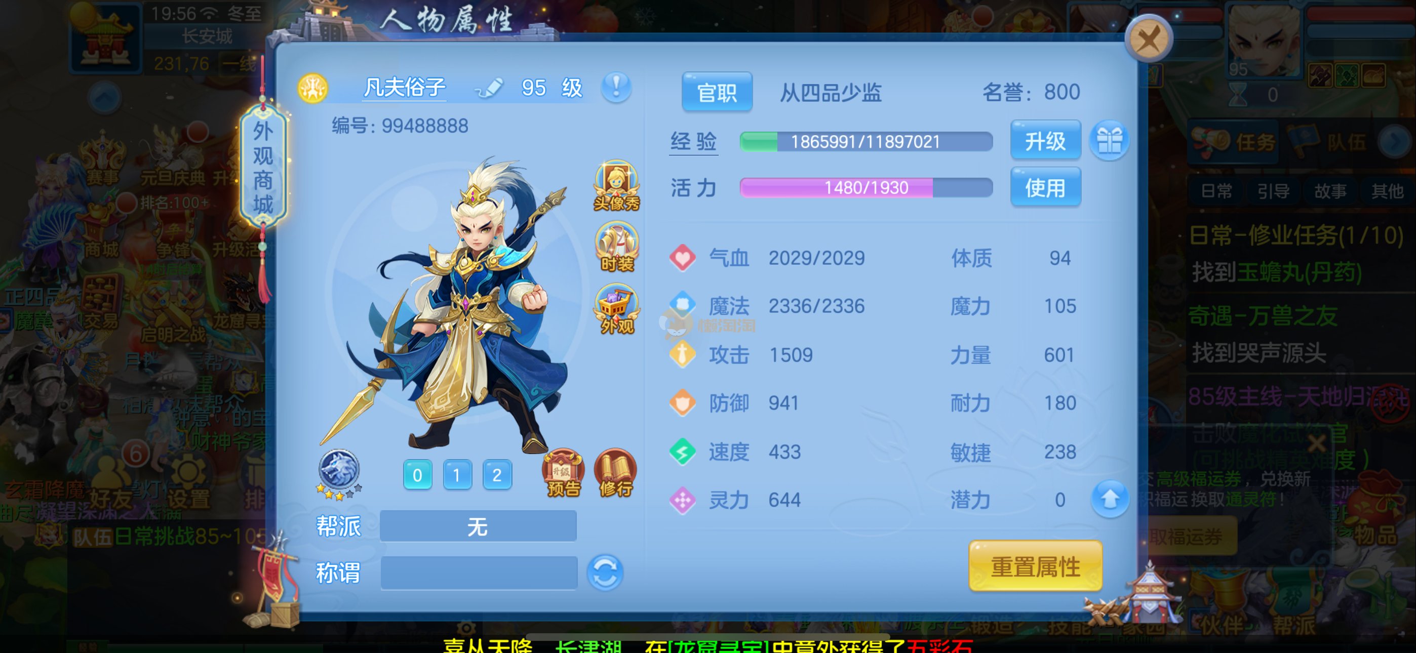 95武侯 三神1强化 极限灵 装备单加30以上 高级坐骑染色 6个专属热门专属天赋 童子 灵鹤 狐狸 浣熊 仙子 5个皮肤 资源很多还有高必 月卡 英豪令都开通了 可马上换绑