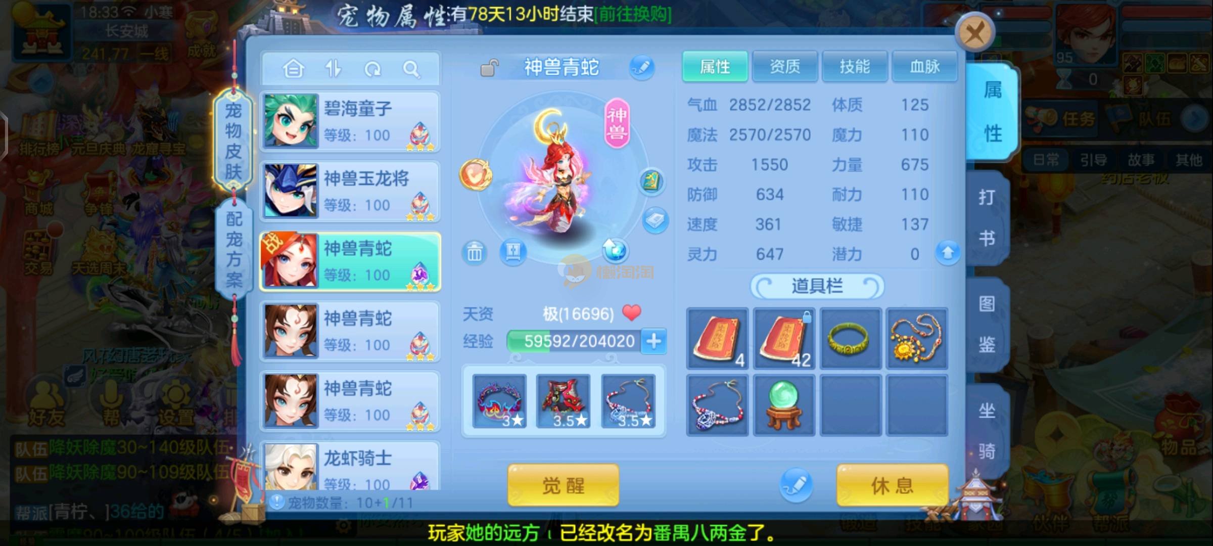强化仙强化玉龙追影蛇,极品宝宝,竞技随便前10买来即可打架边玩边卖