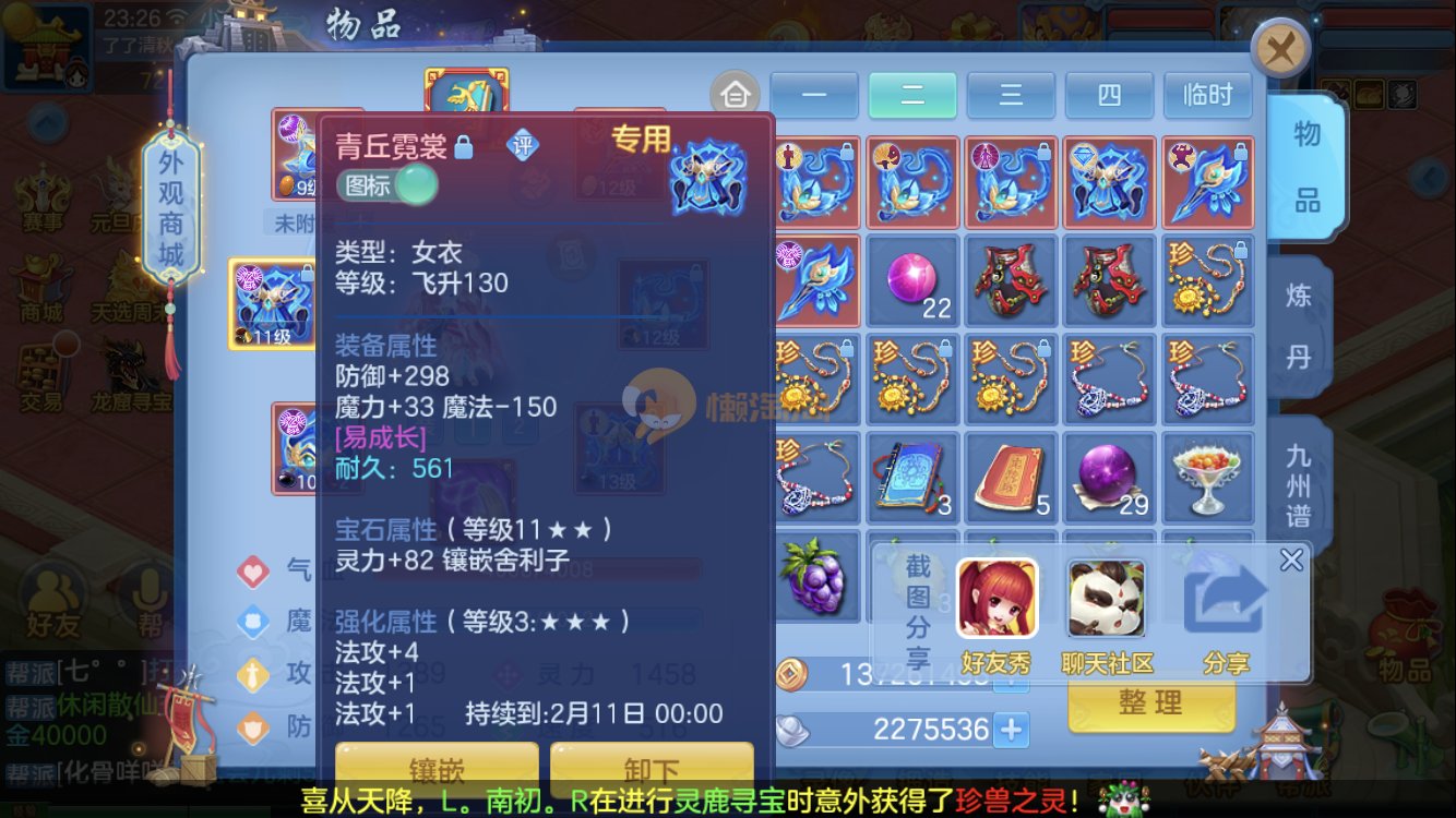 95男狮子,三神两强化一珍兽。愤怒易,装备单加33左右。