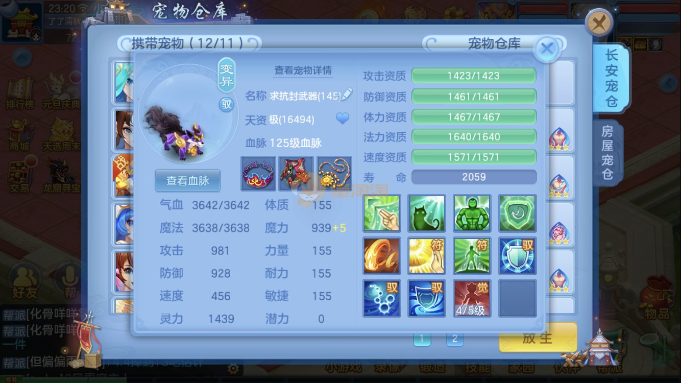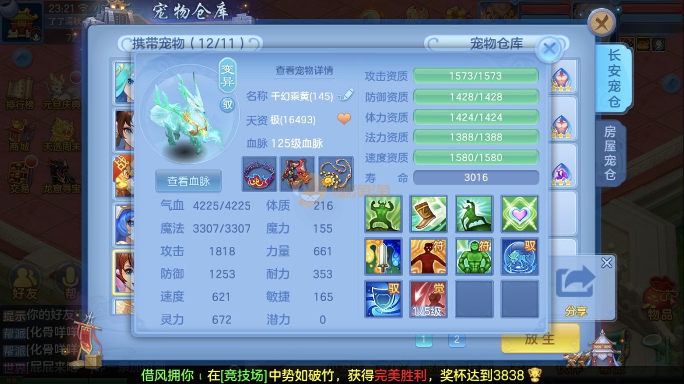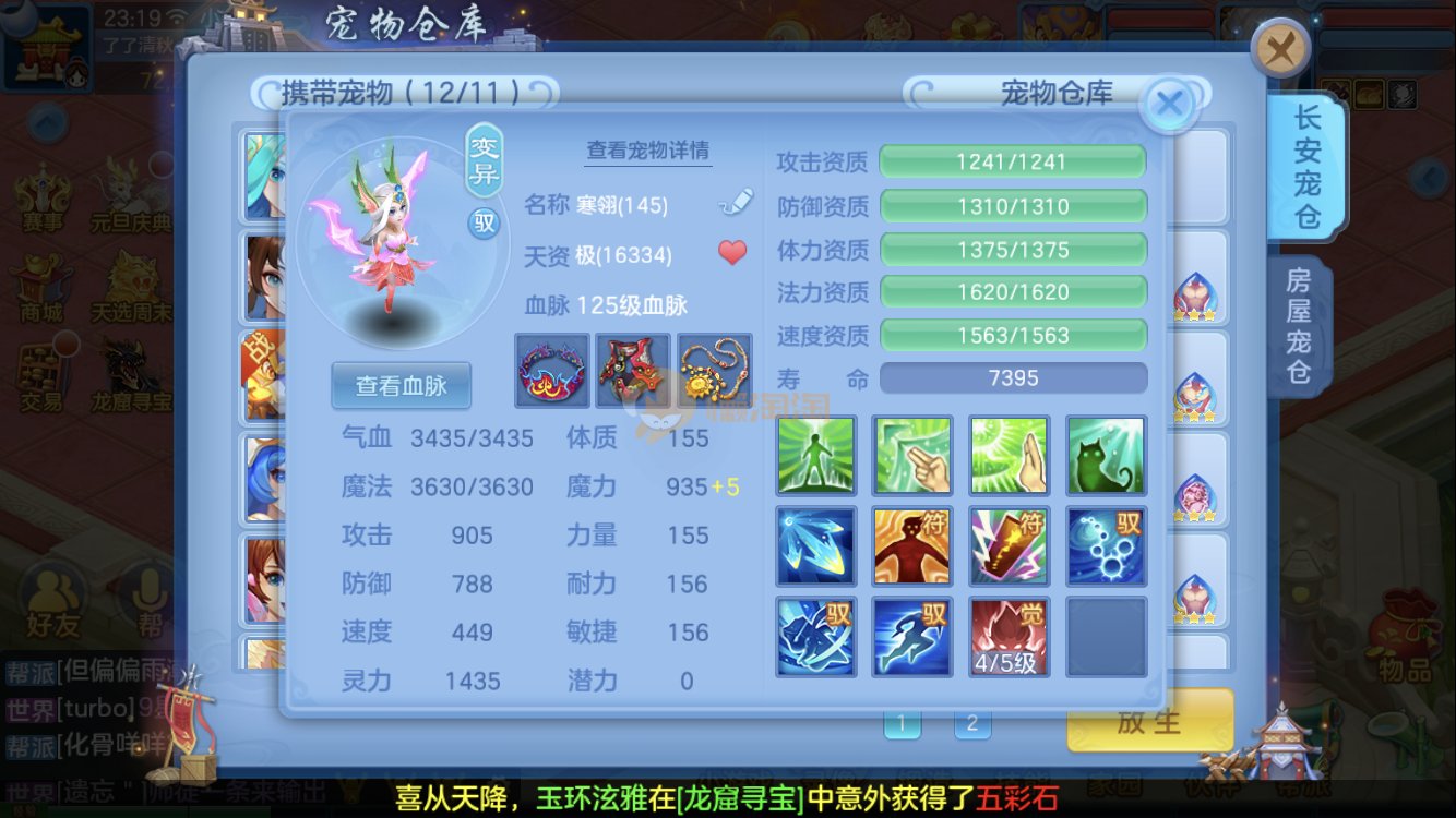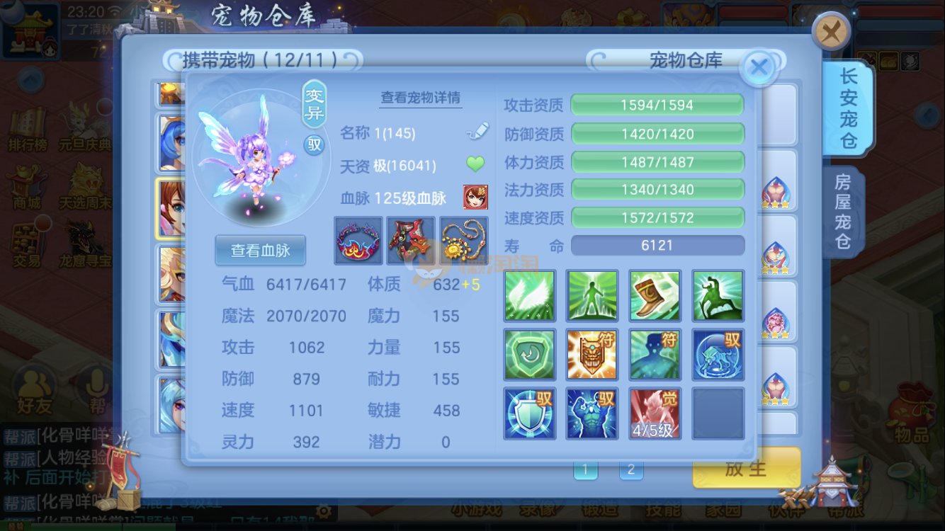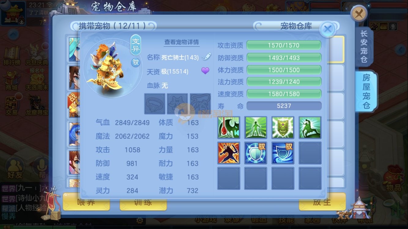 满家具,有装备可转辅助封,爆资质老虎,童子,祸斗,寒翎,双倍充值,易激励/易五雷头,满伤武器,双内丹神兽