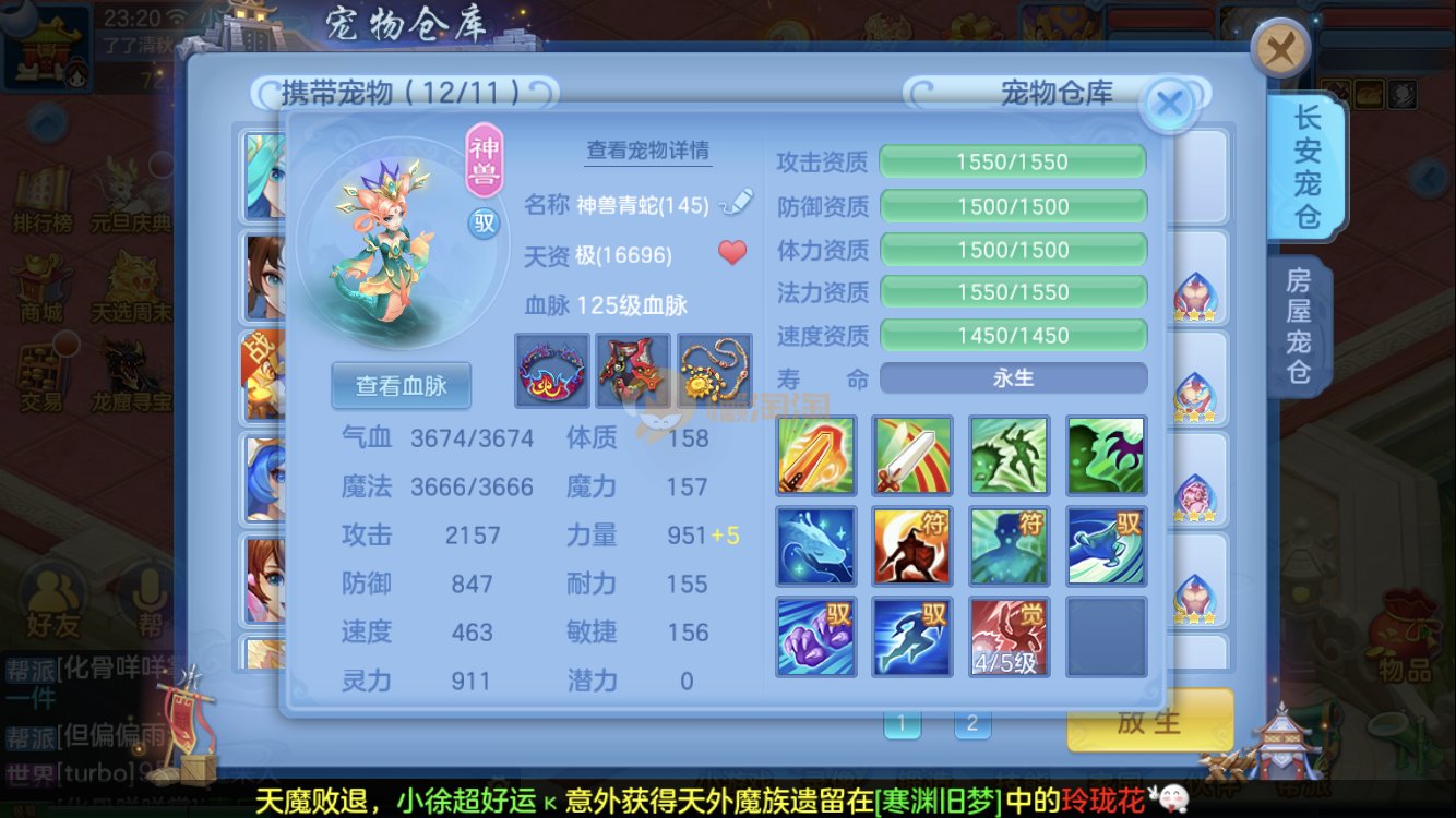 天下无双140级男万兽, 不变卡2710伤害,全身高属性易装备,双仙兽 ,3神兽, 宝宝24只成品红紫 10多个满兽魂宝宝,平均单加45以上, 带庄园高级坐骑 具体细节看图 2980邮箱 1年换绑 验证码找懒懒