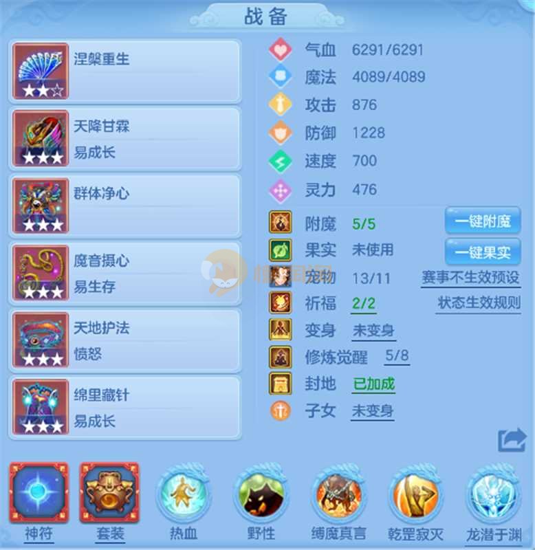 95男狮子,三神两强化一珍兽。愤怒易,装备单加33左右。