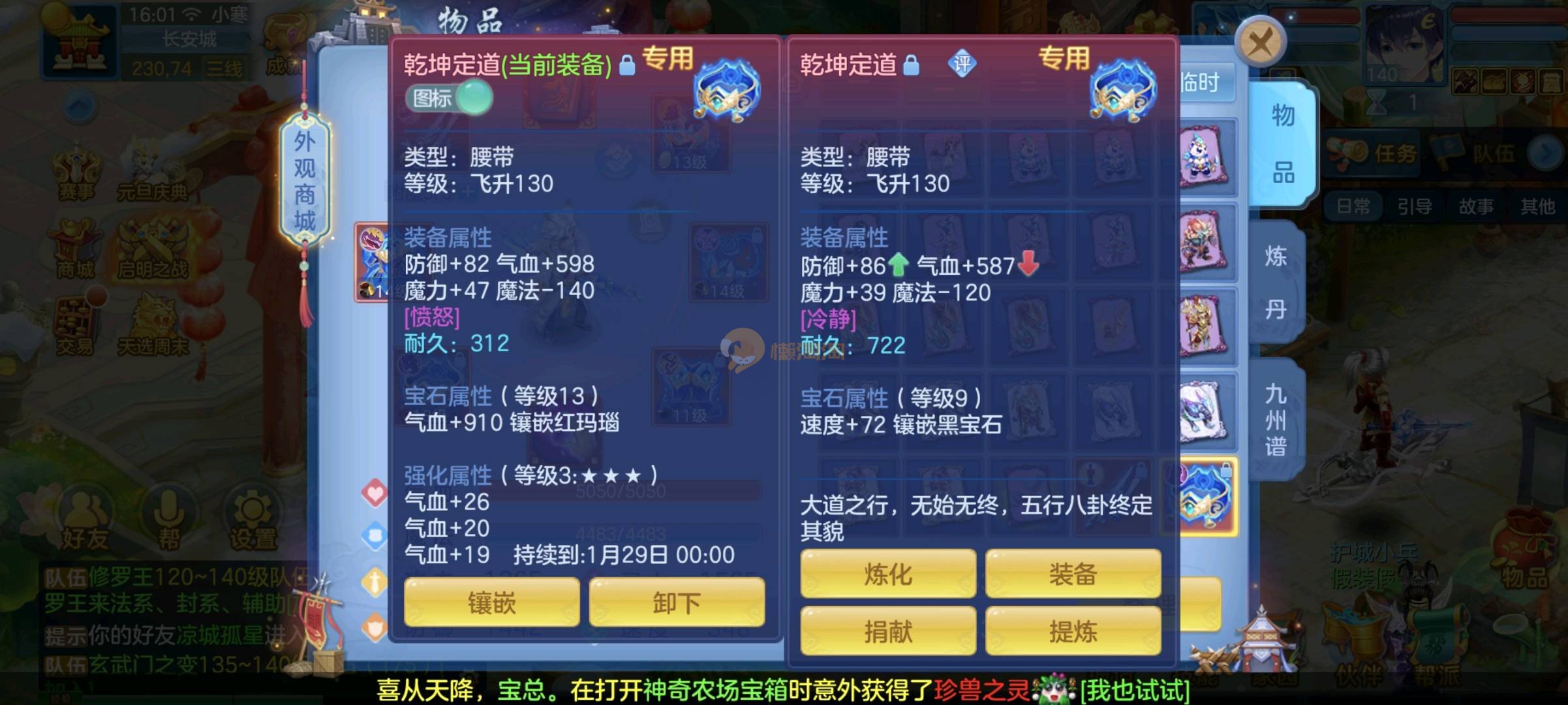 宝宝够用两件14双神玉龙刚换出来有物理装备可转物理