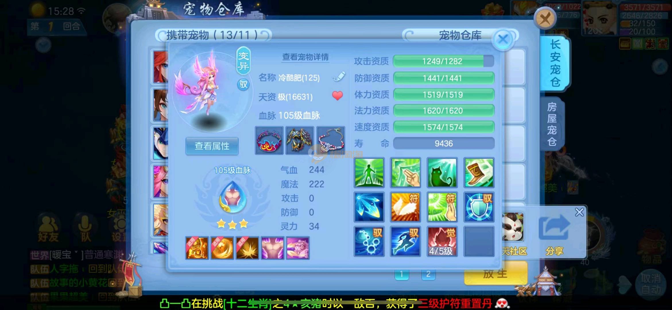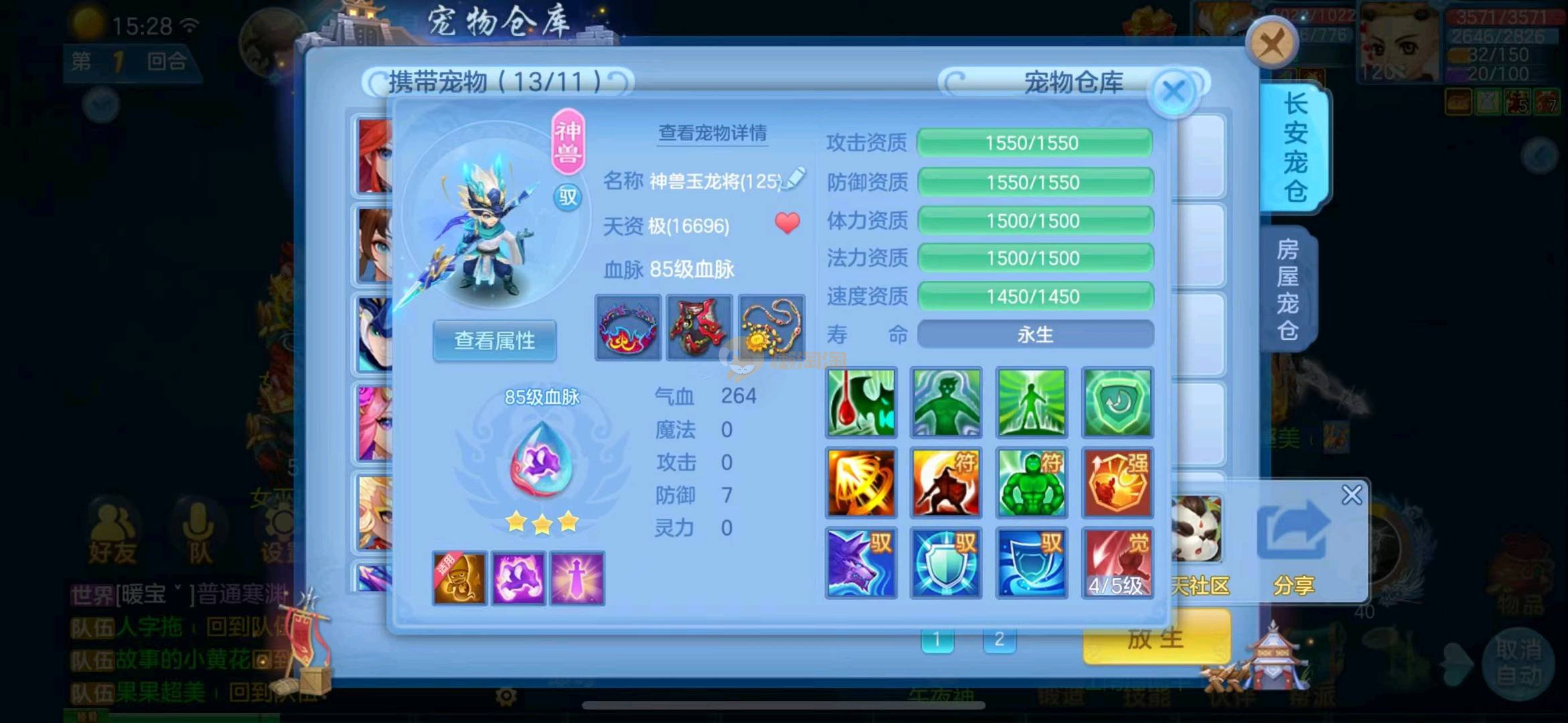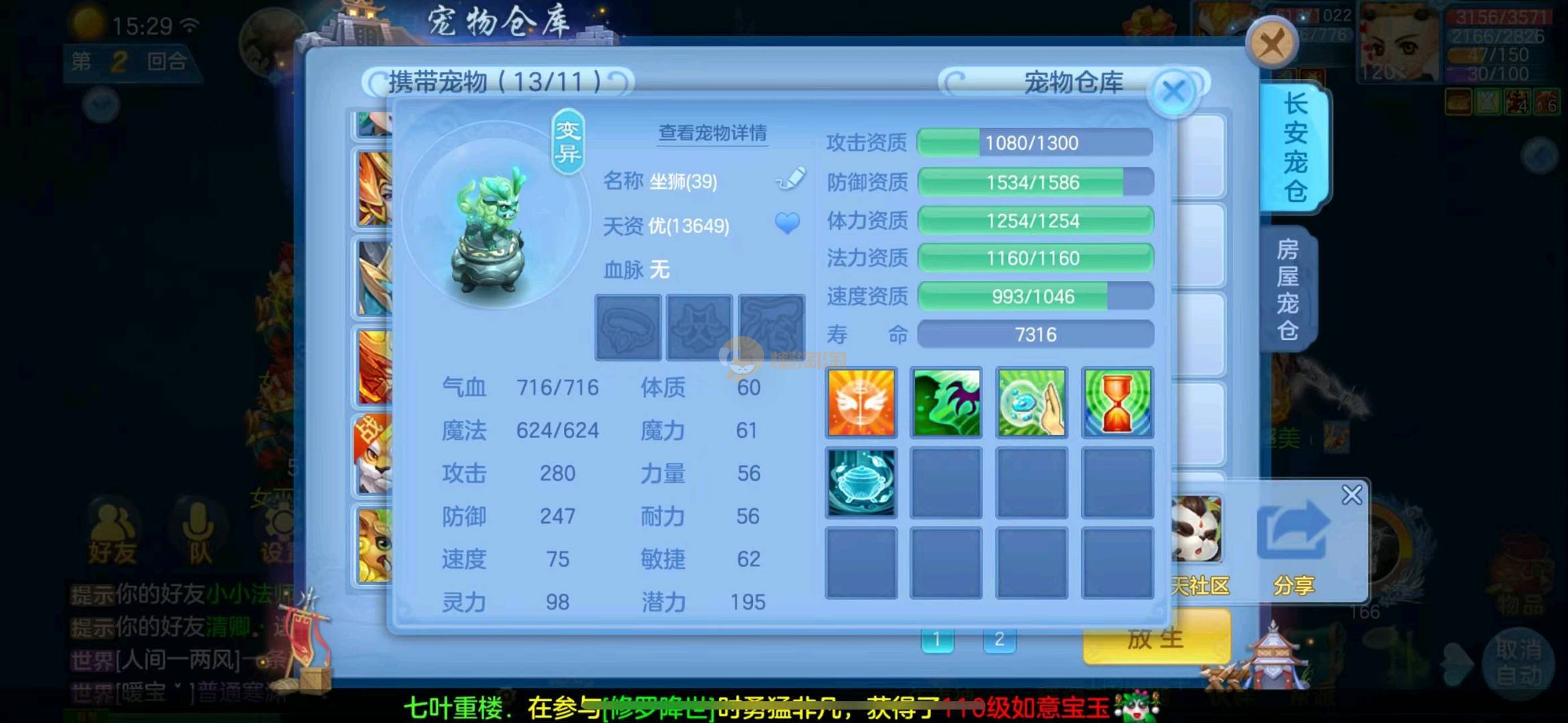 首页> 神武手游> 定山海 120狮子 3神两蛇一玉龙一强化 满速童子 一皮肤多个极品宝宝 寒邻爆资质带皮肤 爆资质虎大将 血脉炎弓 孟婆 云罗 海马 碧波 高级坐骑 做狮已出 满仓库变身卡 13张通灵等等上手直接打架 一年换绑 有双重 绑定自己手机号