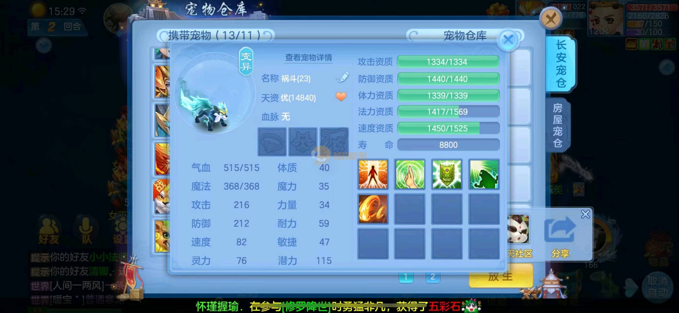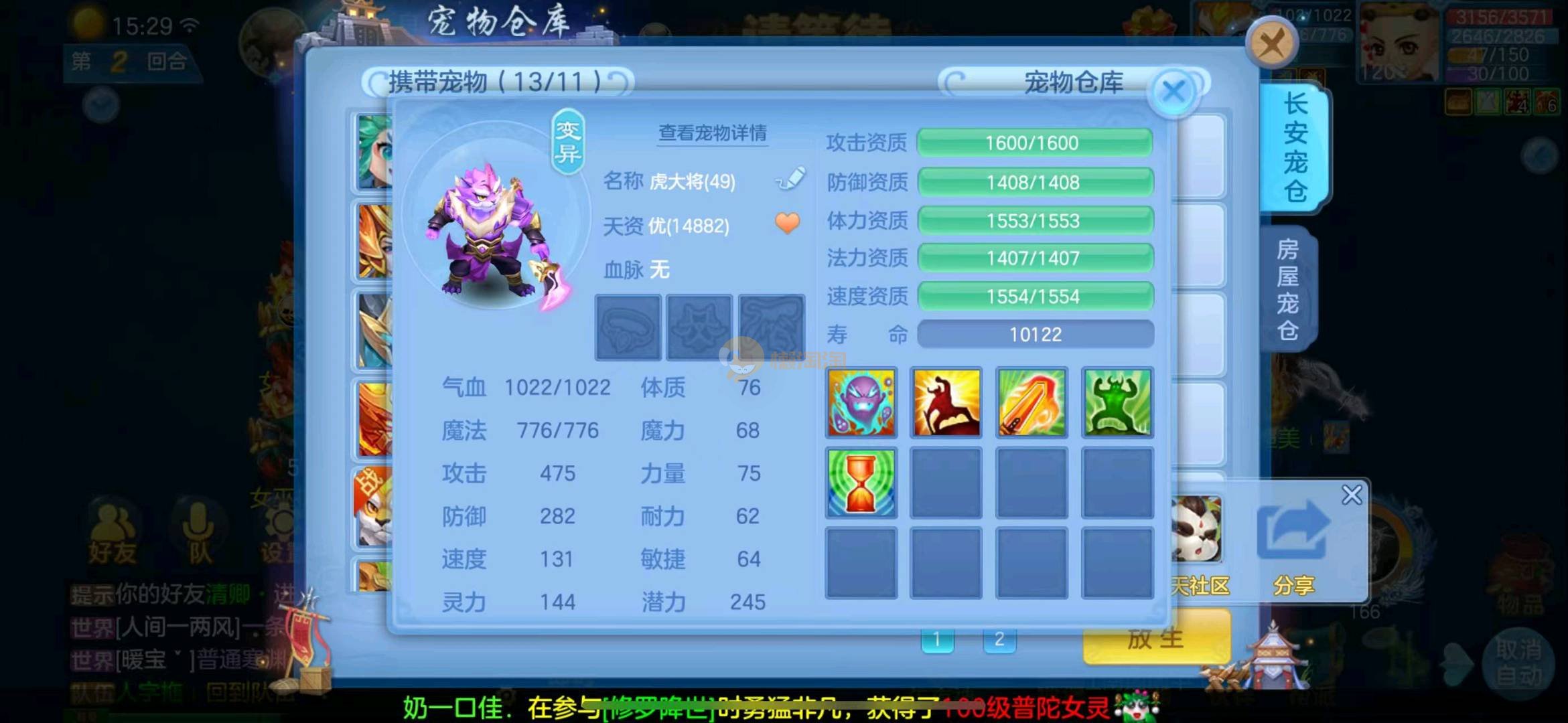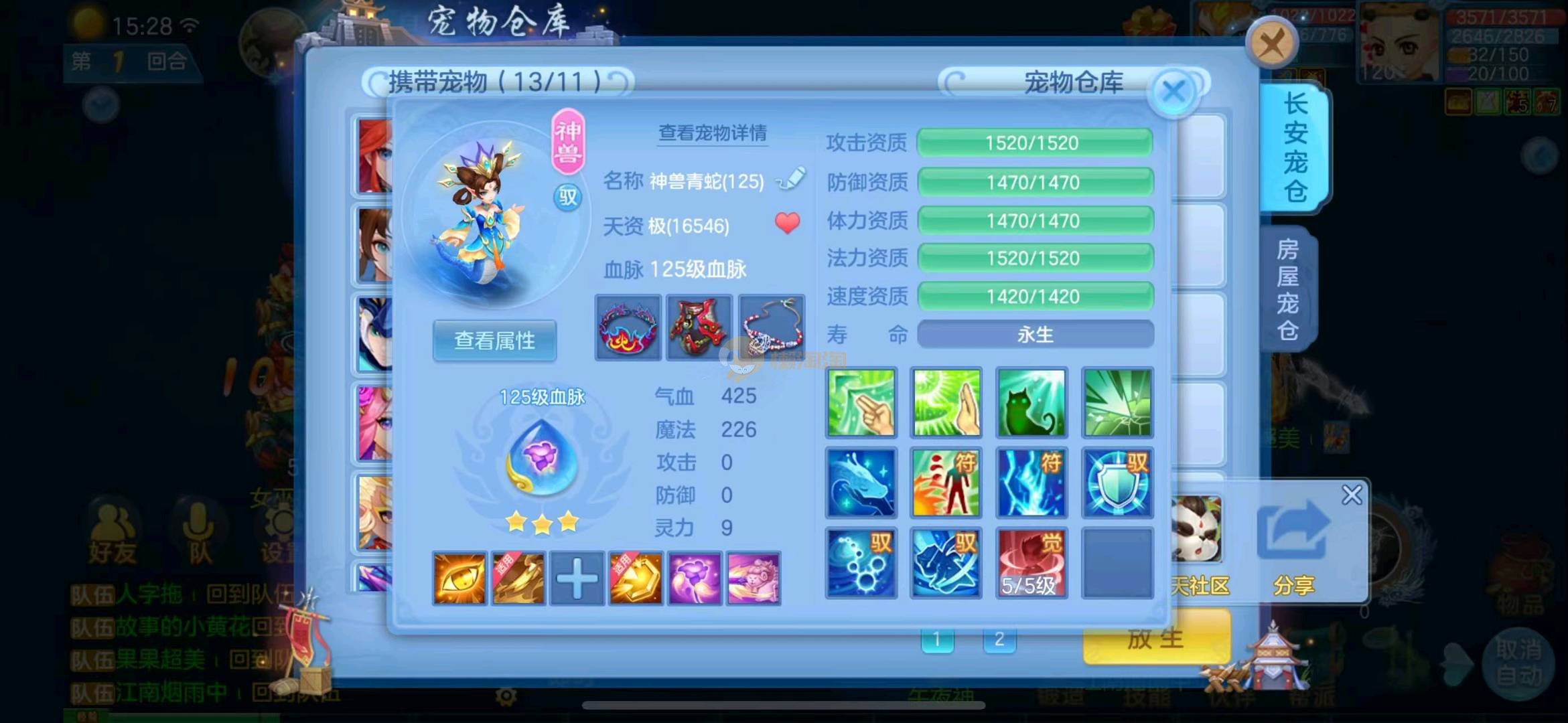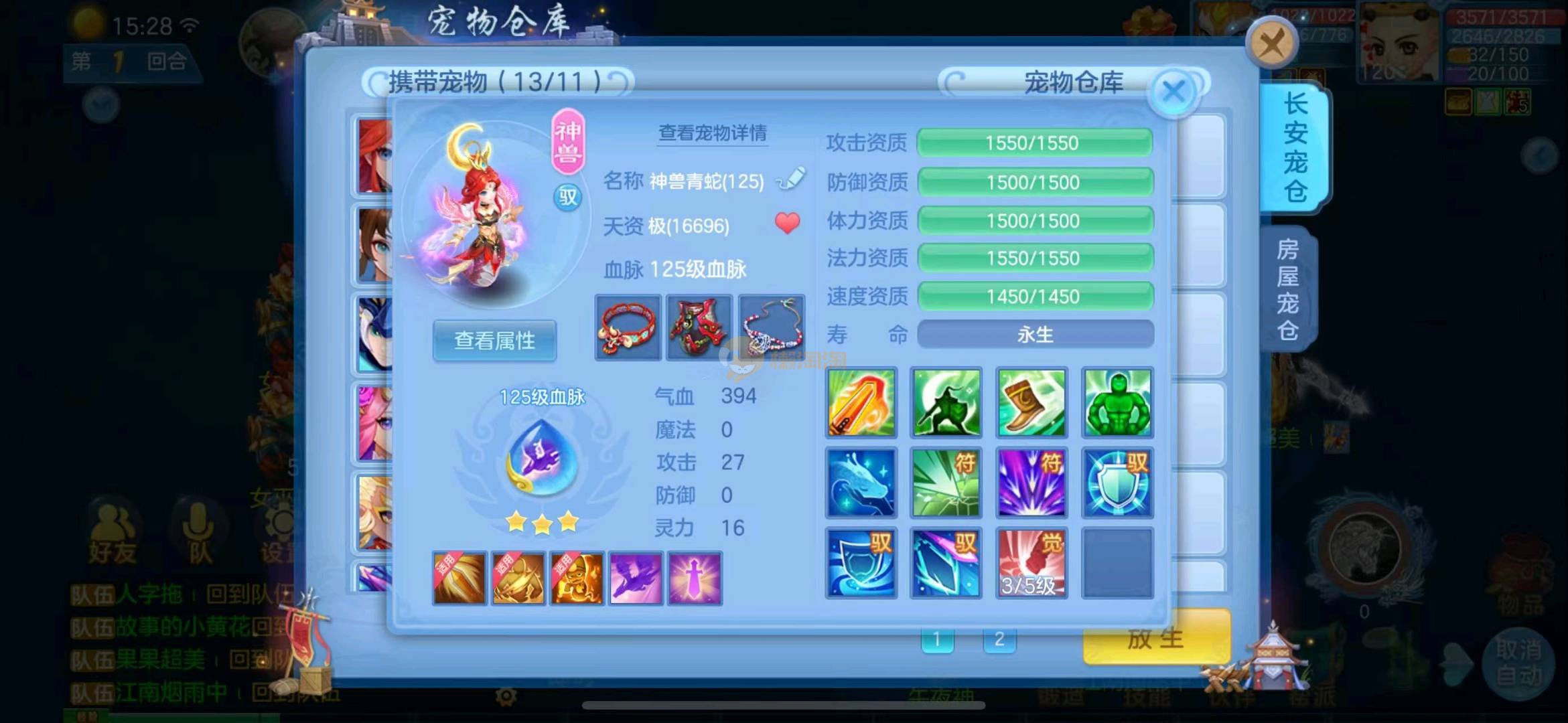首页> 神武手游> 定山海 120狮子 3神两蛇一玉龙一强化 满速童子 一皮肤多个极品宝宝 寒邻爆资质带皮肤 爆资质虎大将 血脉炎弓 孟婆 云罗 海马 碧波 高级坐骑 做狮已出 满仓库变身卡 13张通灵等等上手直接打架 一年换绑 有双重 绑定自己手机号