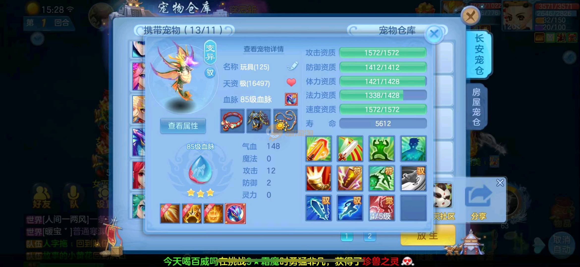 定山海 120狮子 3神两蛇一玉龙一强化 满速童子 一皮肤多个极品宝宝 寒邻爆资质带皮肤 爆资质虎大将 血脉炎弓 孟婆 云罗 海马 碧波 高级坐骑 做狮已出 满仓库变身卡 13张通灵等等上手直接打架 一年换绑 有双重 绑定自己手机号