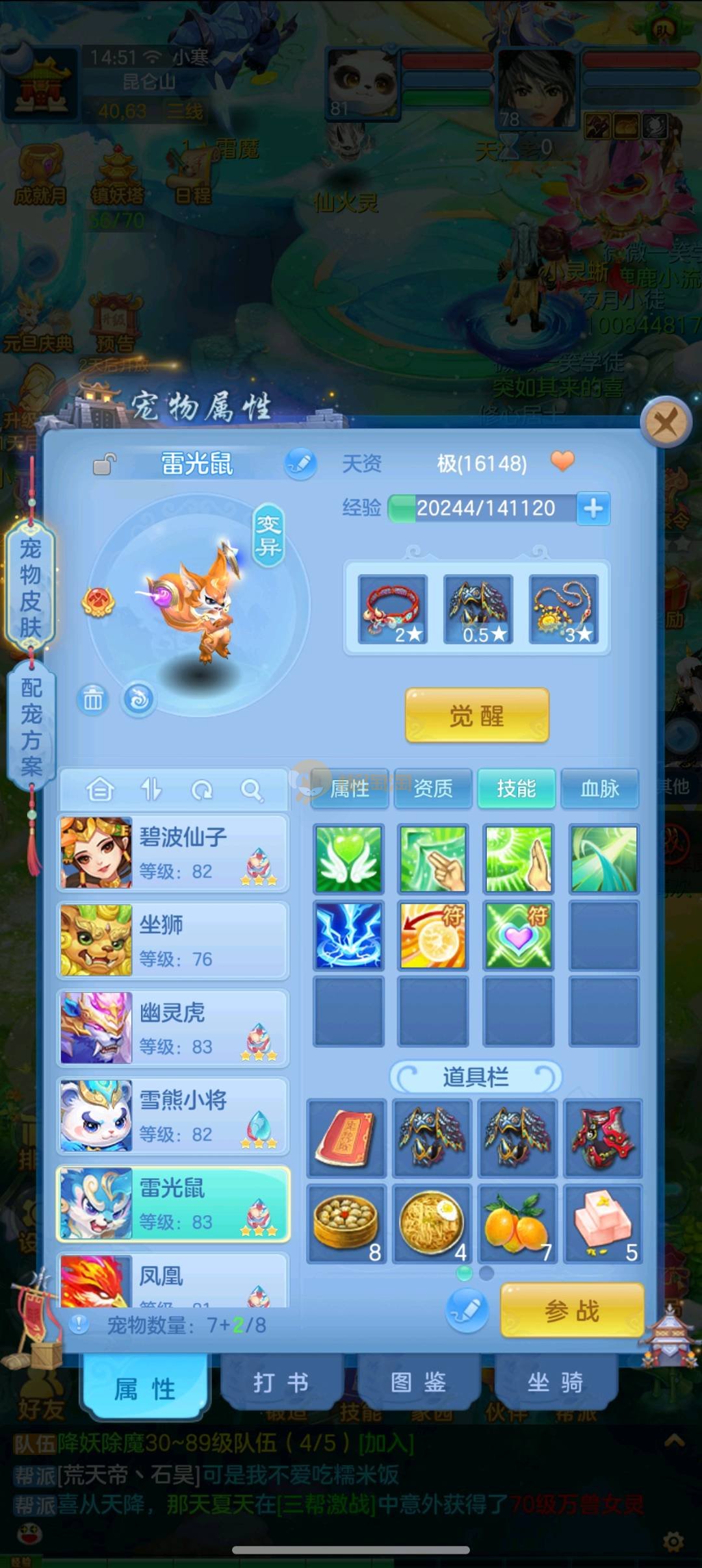 13混14段,有仙兽强化,神兽蛇,日常打架都可以