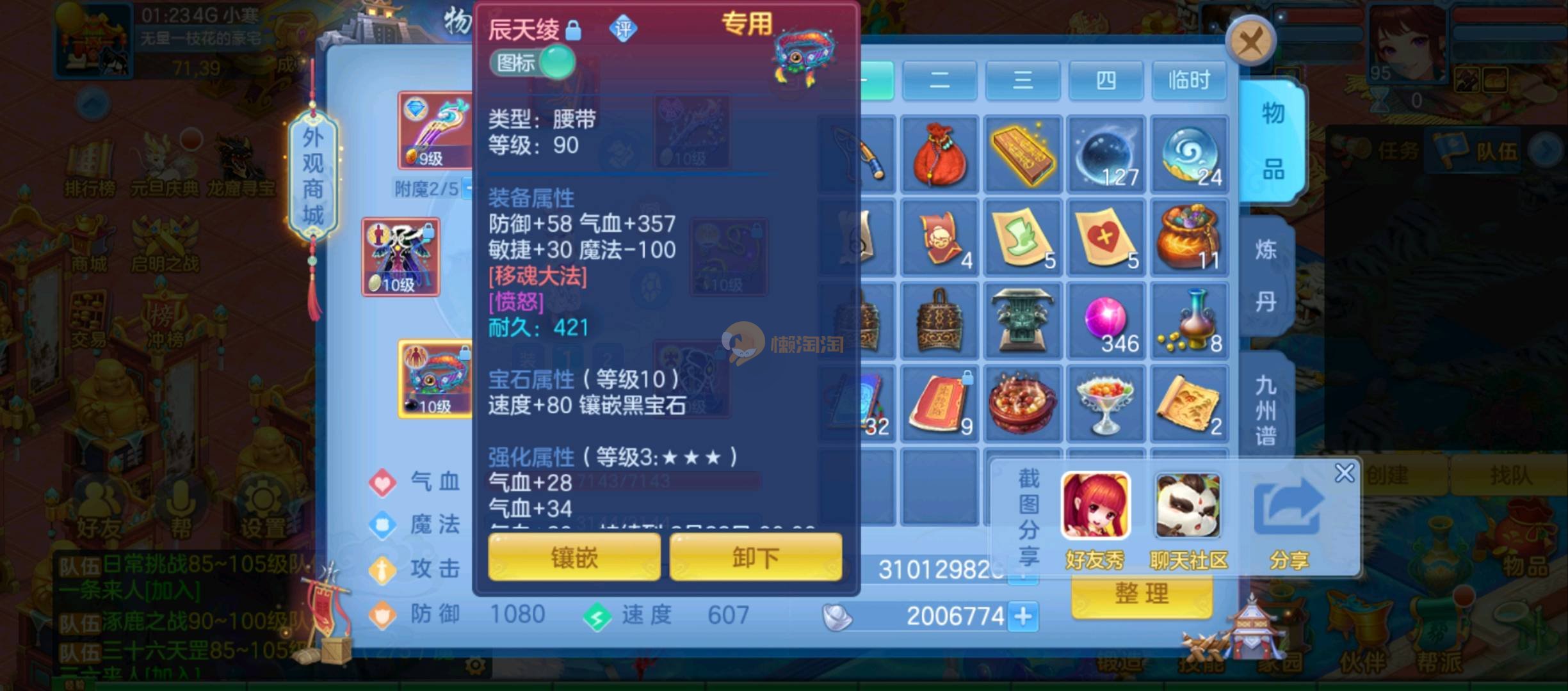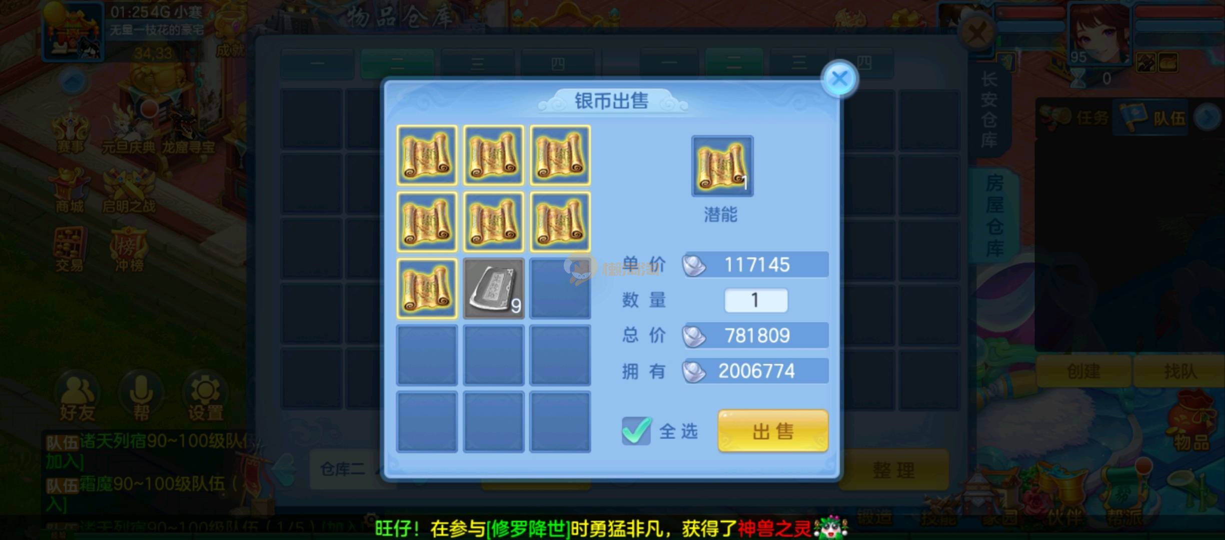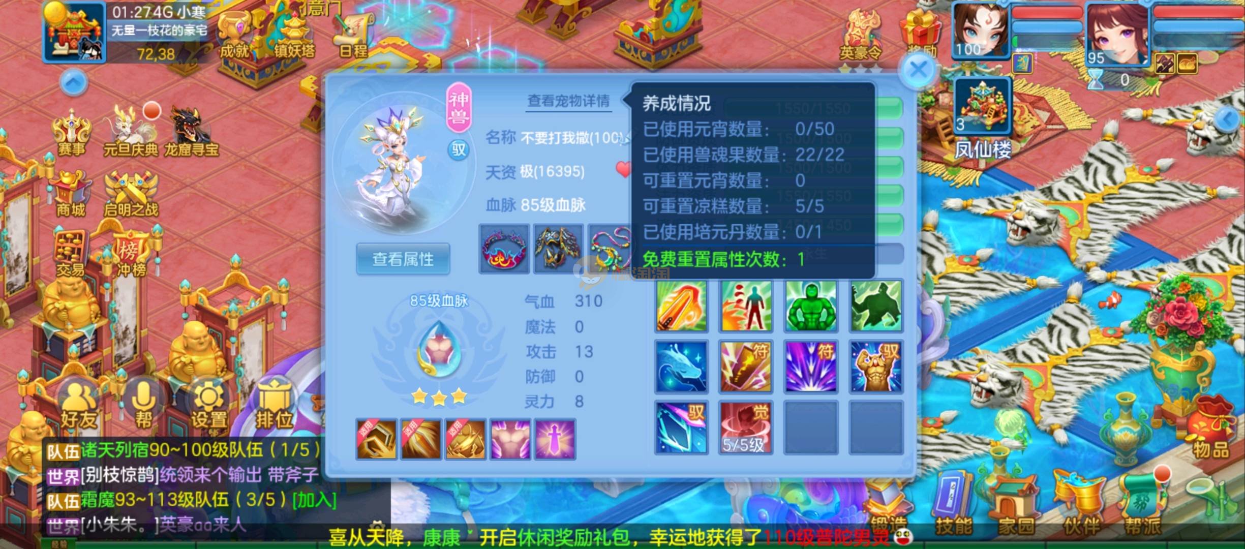 定山海,95女佛门,100男魔王奶粉,3内胆进阶青蛇,宝宝齐全,装备特技齐全,宝石10锻,日常挑战无压力,号上资源丰富,金币635,时装积分1000,铜币3亿多,30多神兽灵,200多万银子,百万高书,qq邮箱,7天可换绑手机。 帐号信息