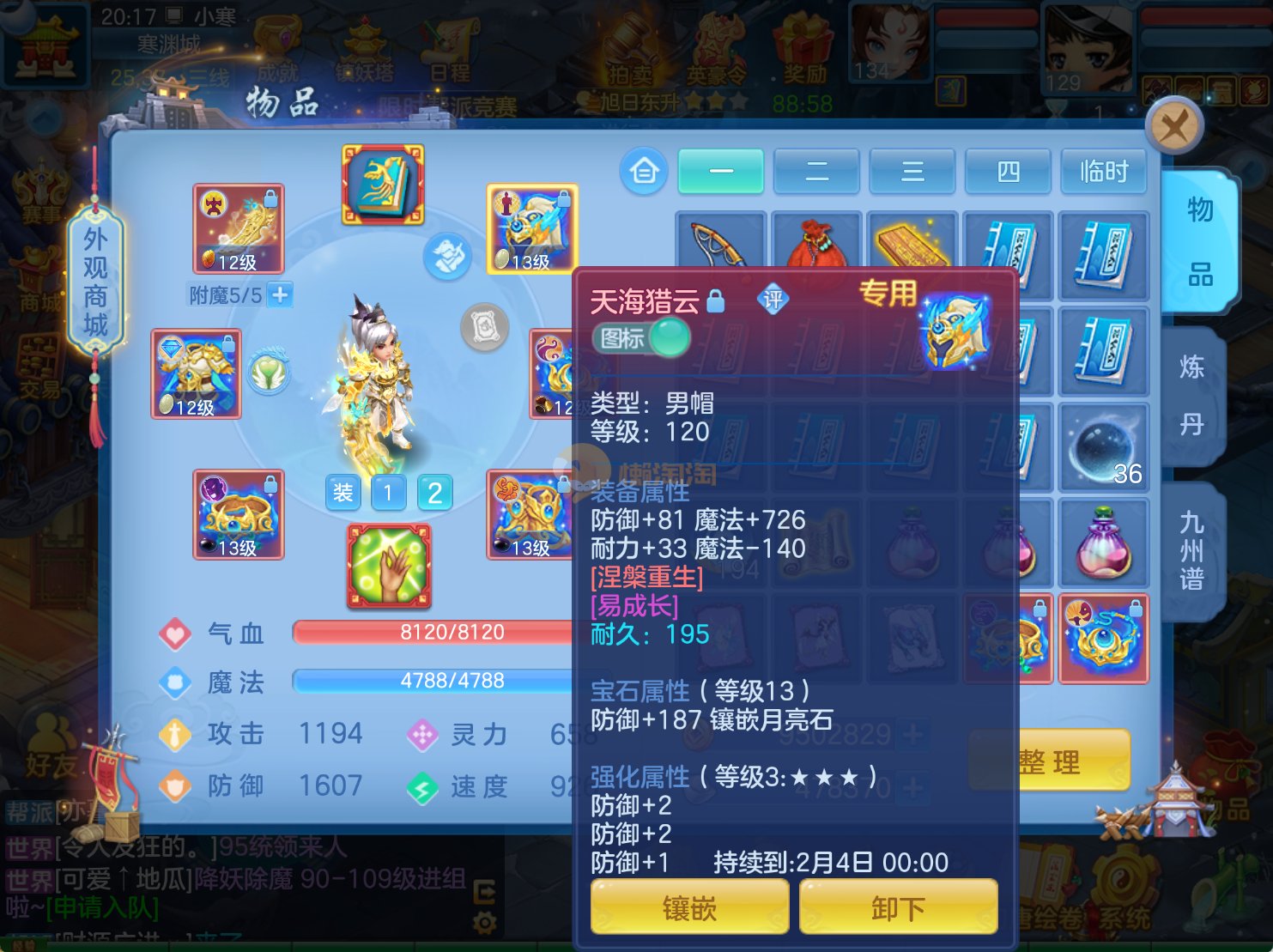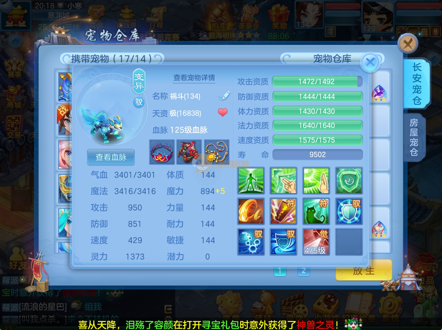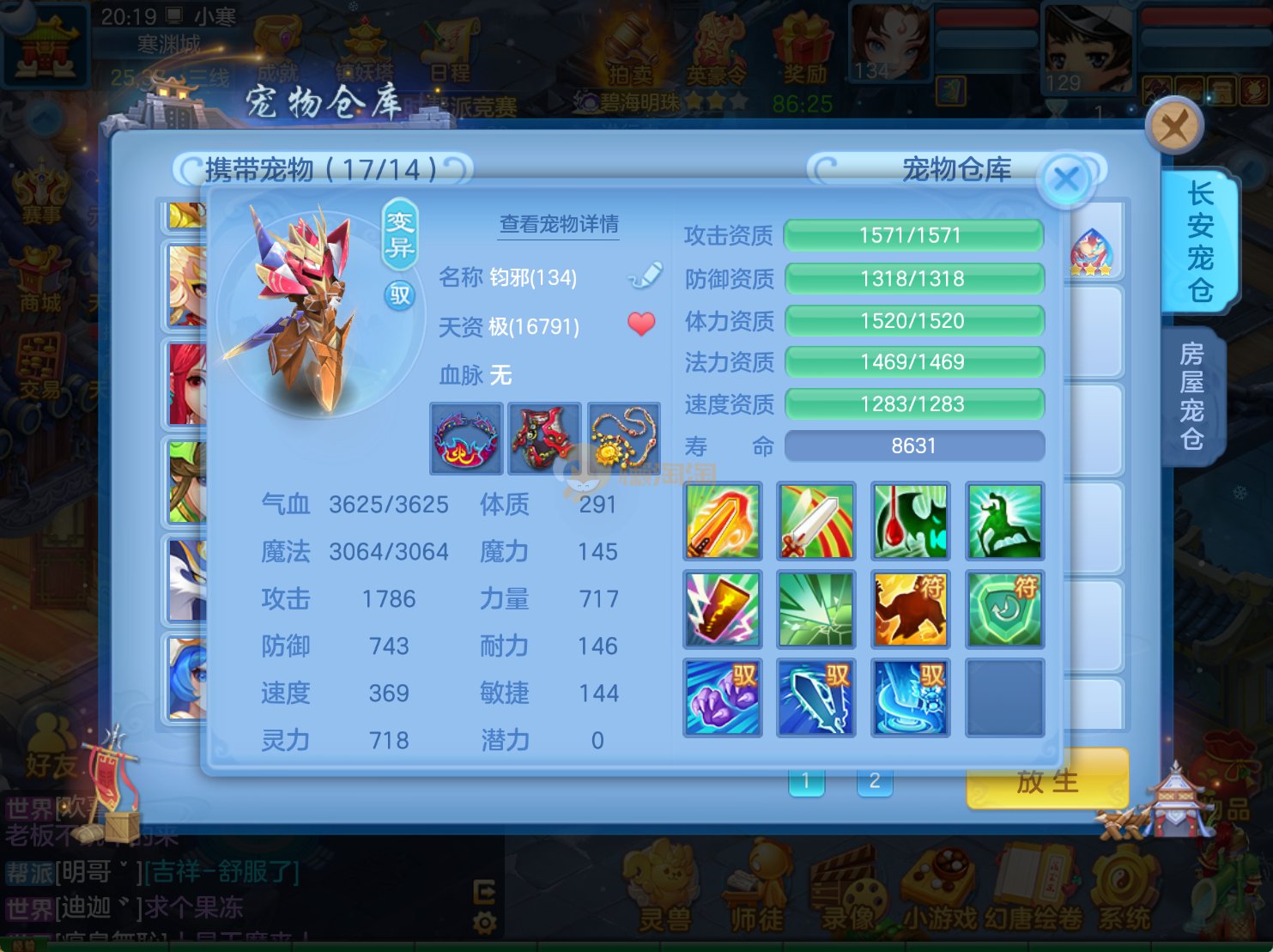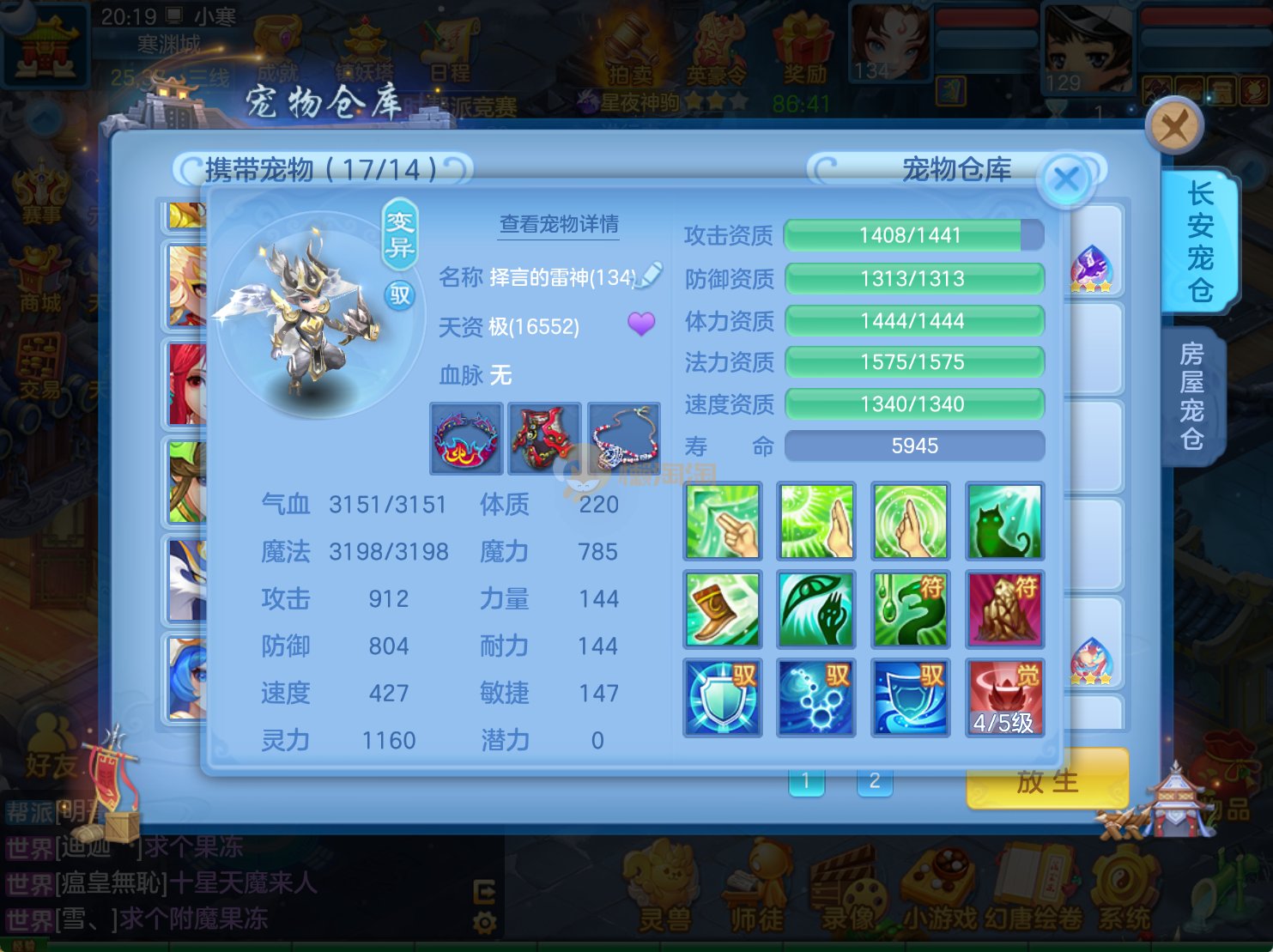 今年勇 140男魔王,三件14.4,不变卡灵力防御双1570+,变卡双1600+ 14个满兽魂宝宝 11专属血脉 5宠物皮肤 无双重,带庄园2980邮箱 1年换绑 验证码找懒懒
