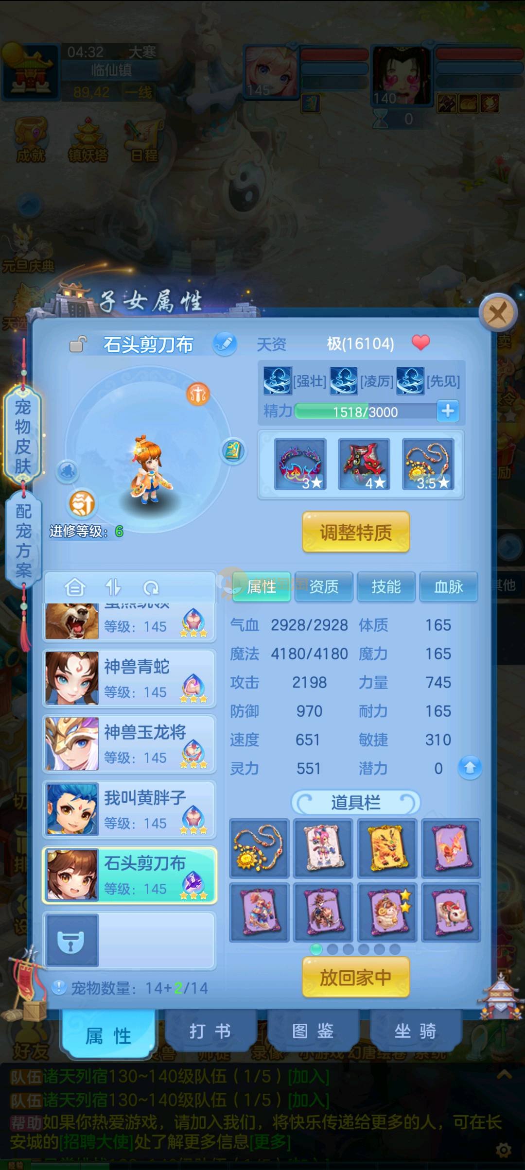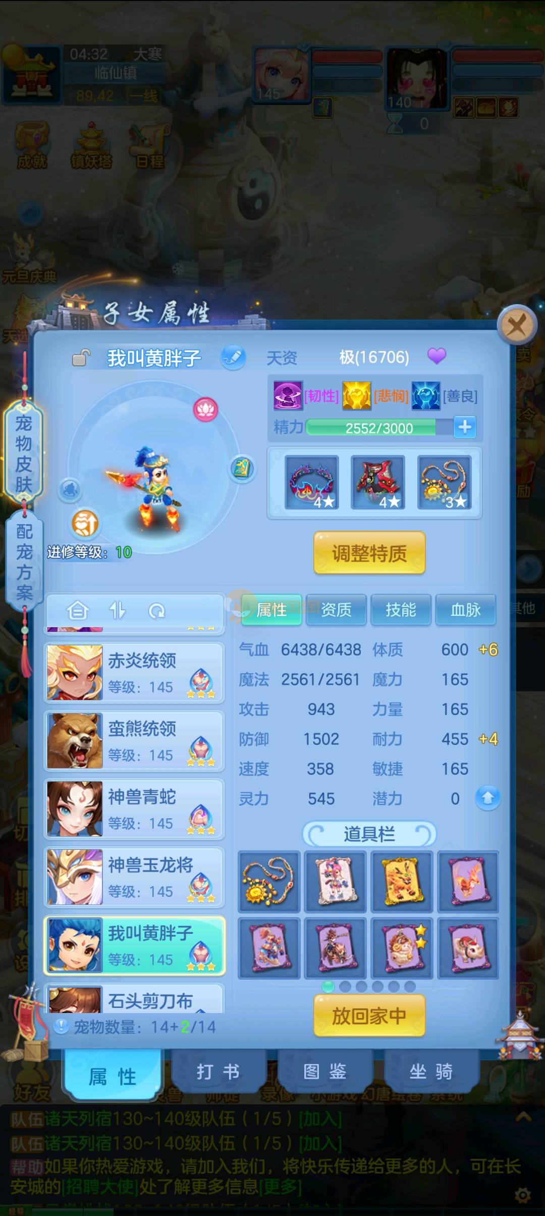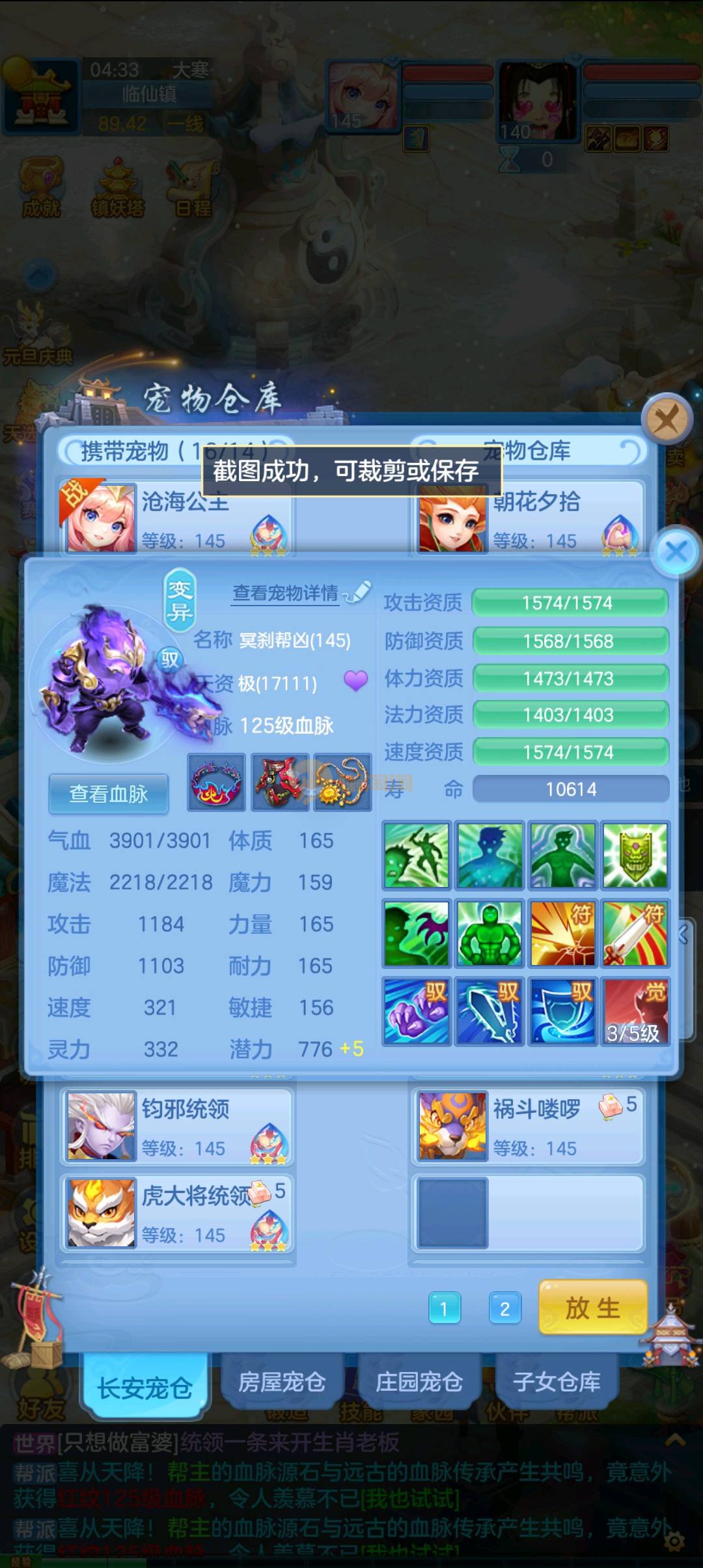 今年勇 140男魔王,三件14.4,不变卡灵力防御双1570+,变卡双1600+ 14个满兽魂宝宝 11专属血脉 5宠物皮肤 无双重,带庄园2980邮箱 1年换绑 验证码找懒懒