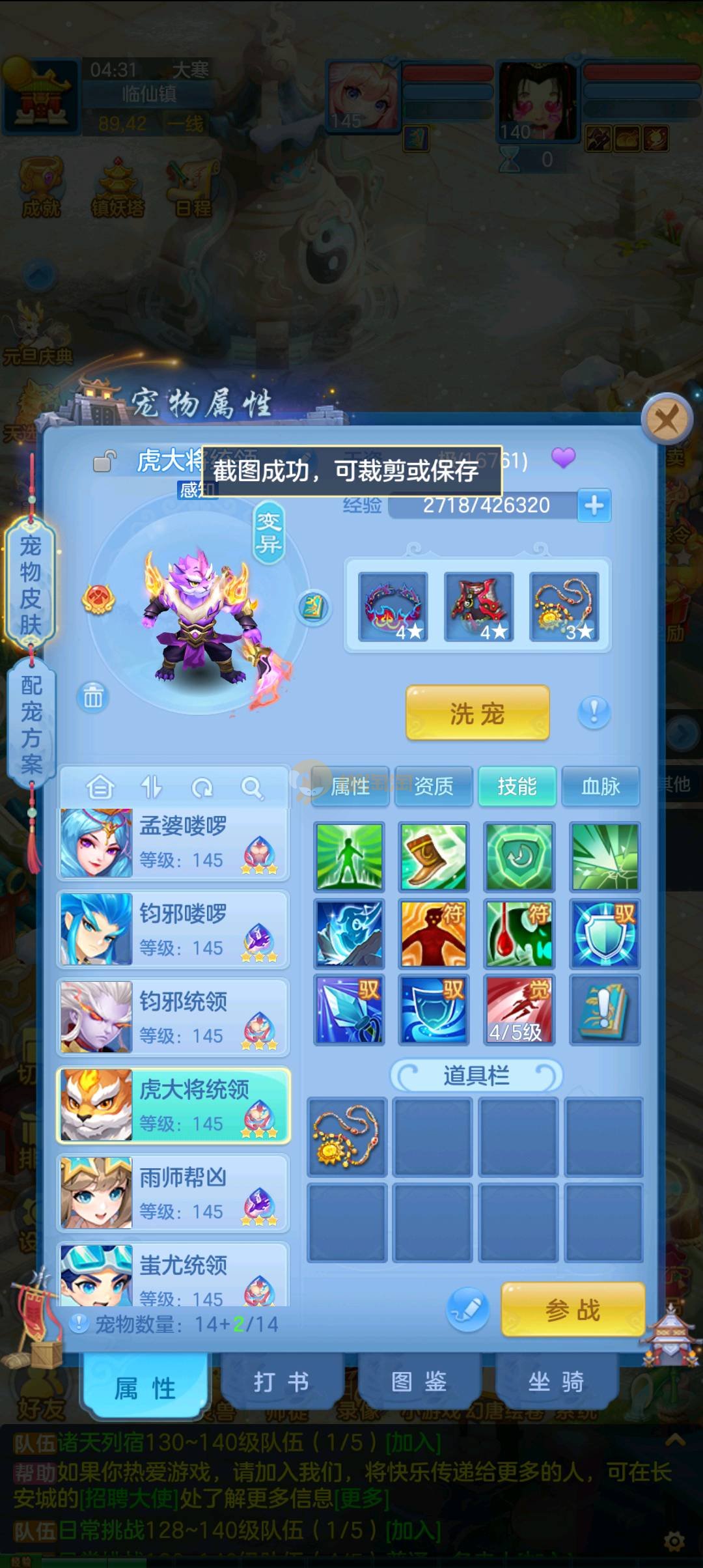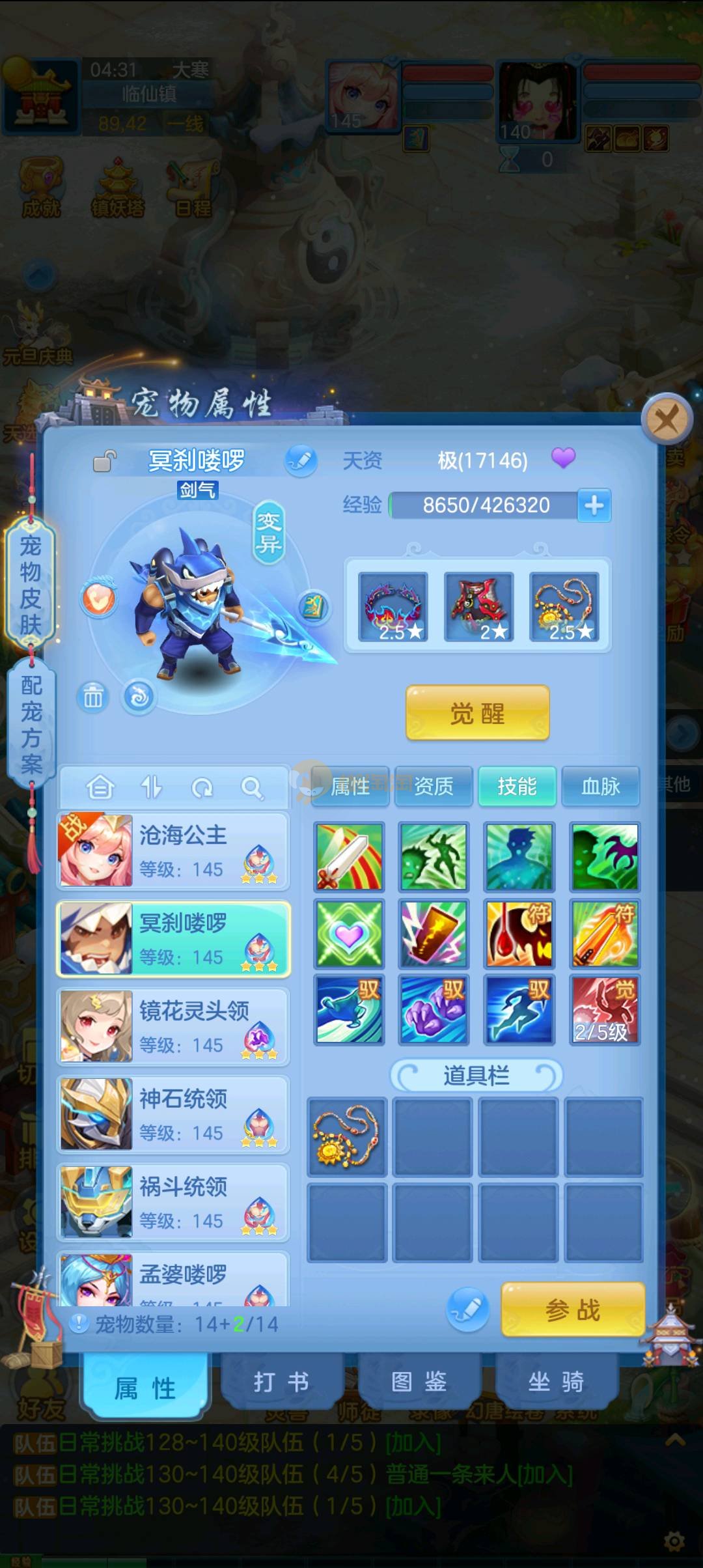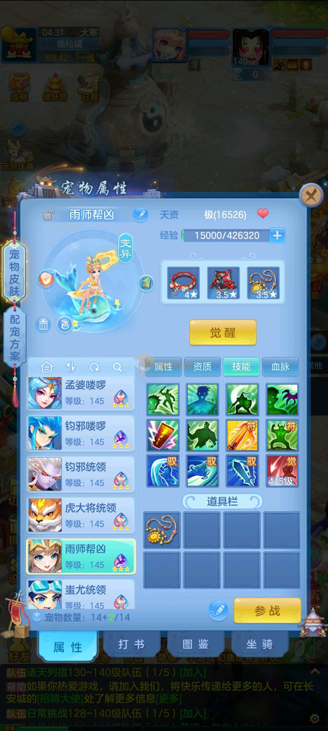 今年勇 140男魔王,三件14.4,不变卡灵力防御双1570+,变卡双1600+ 14个满兽魂宝宝 11专属血脉 5宠物皮肤 无双重,带庄园2980邮箱 1年换绑 验证码找懒懒