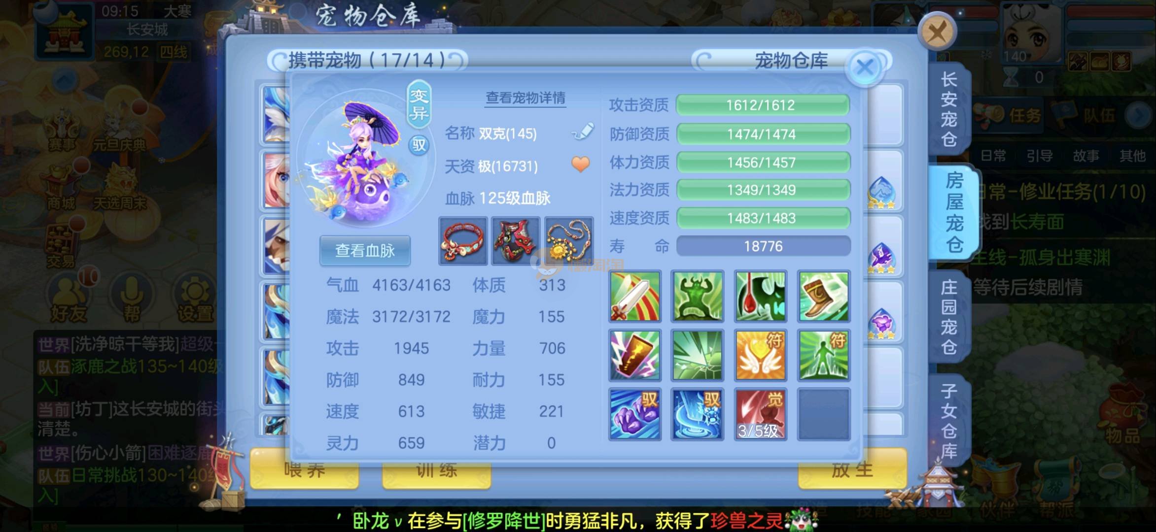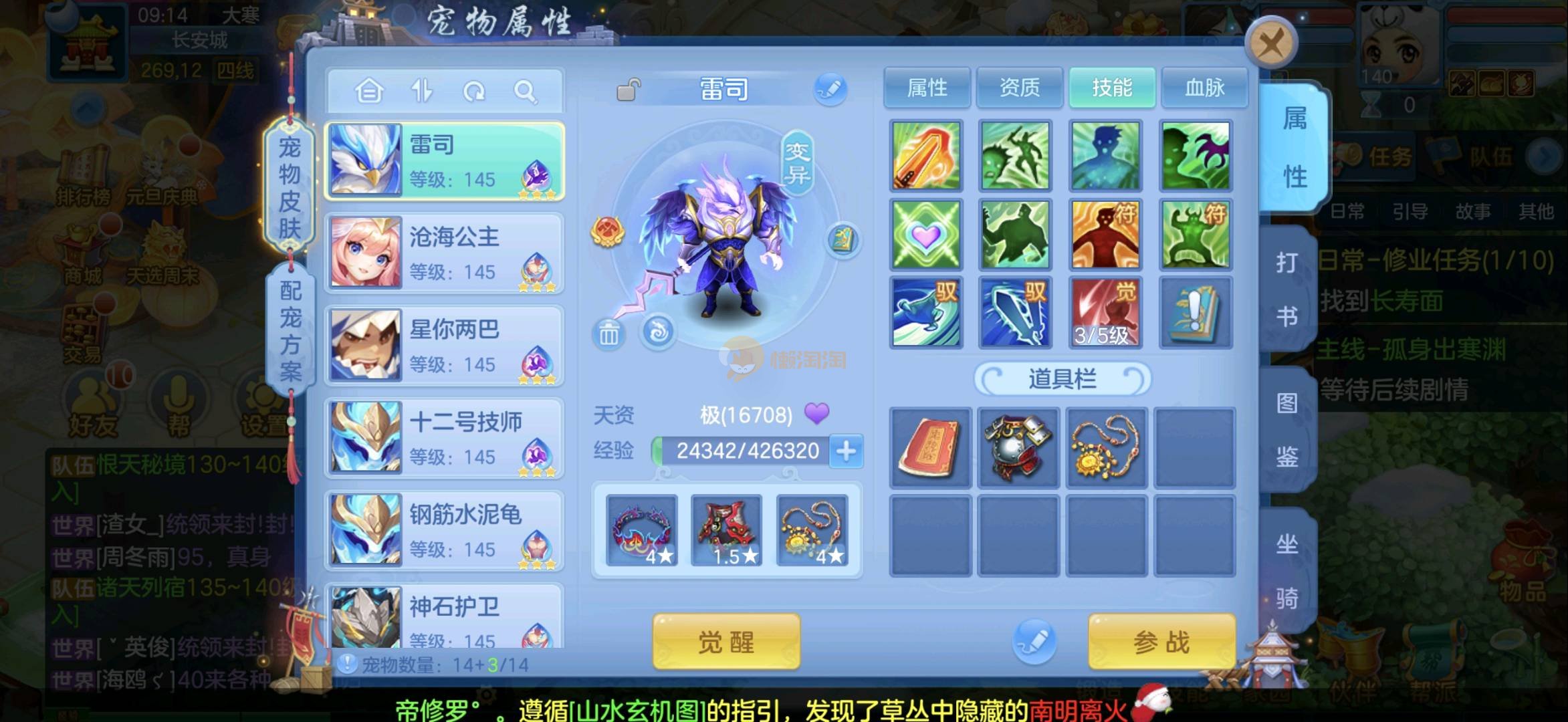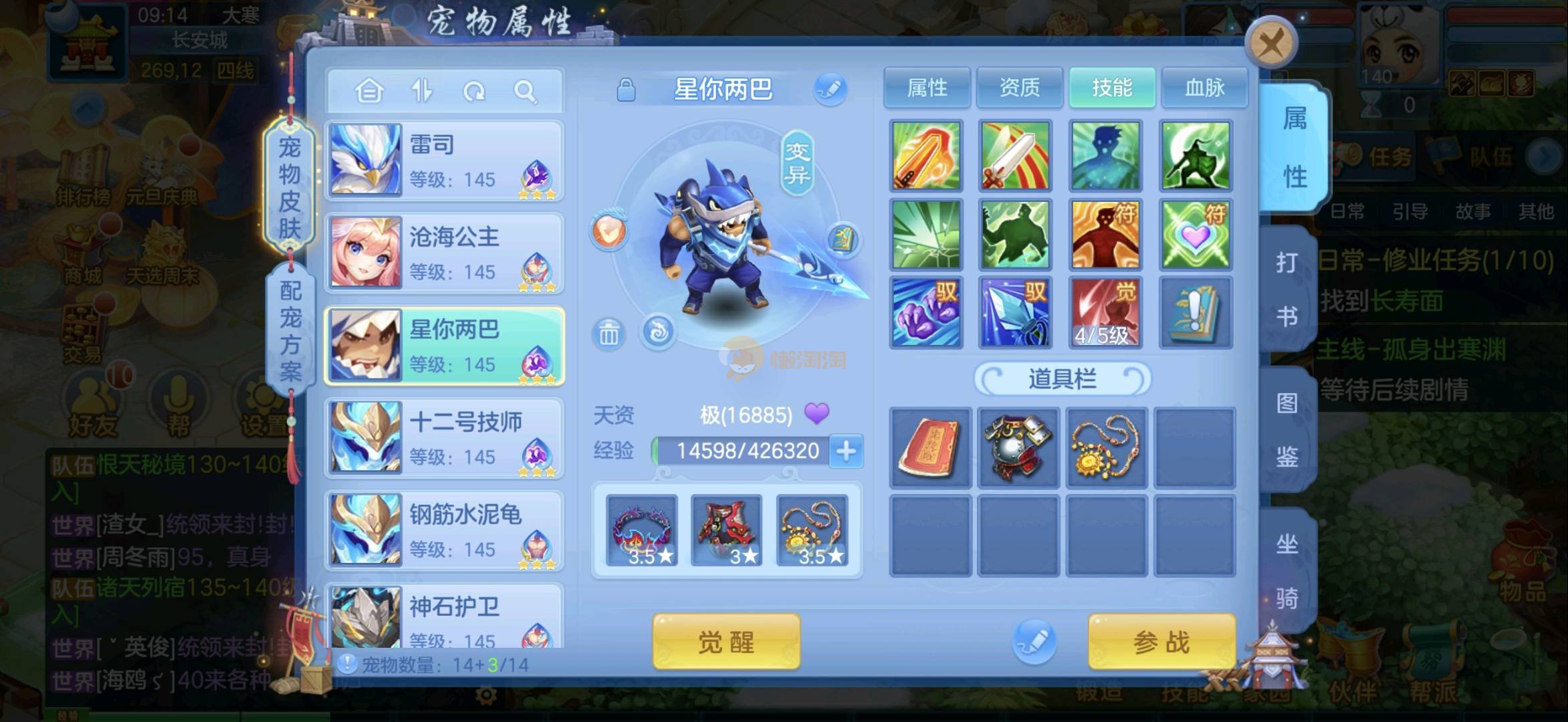 今年勇 140男魔王,三件14.4,不变卡灵力防御双1570+,变卡双1600+ 14个满兽魂宝宝 11专属血脉 5宠物皮肤 无双重,带庄园2980邮箱 1年换绑 验证码找懒懒