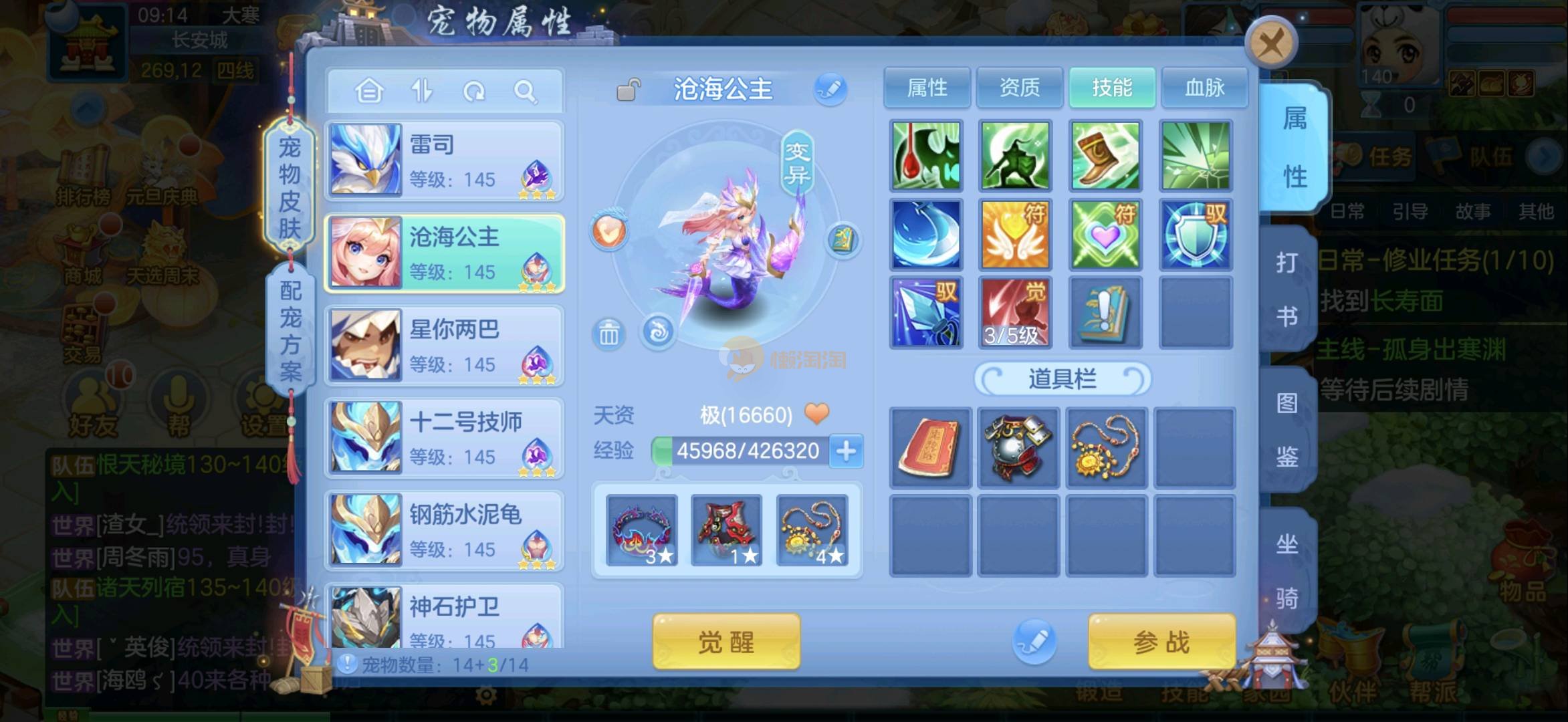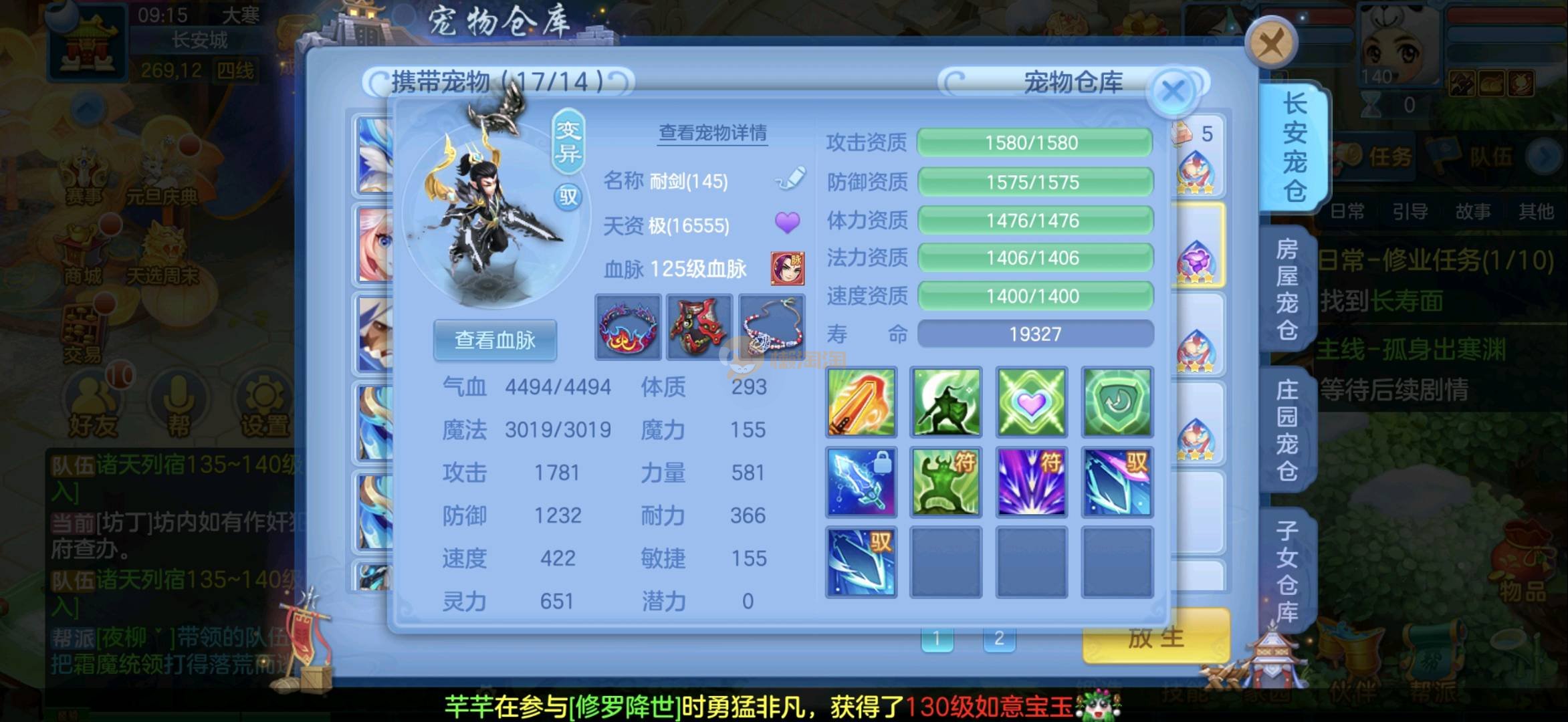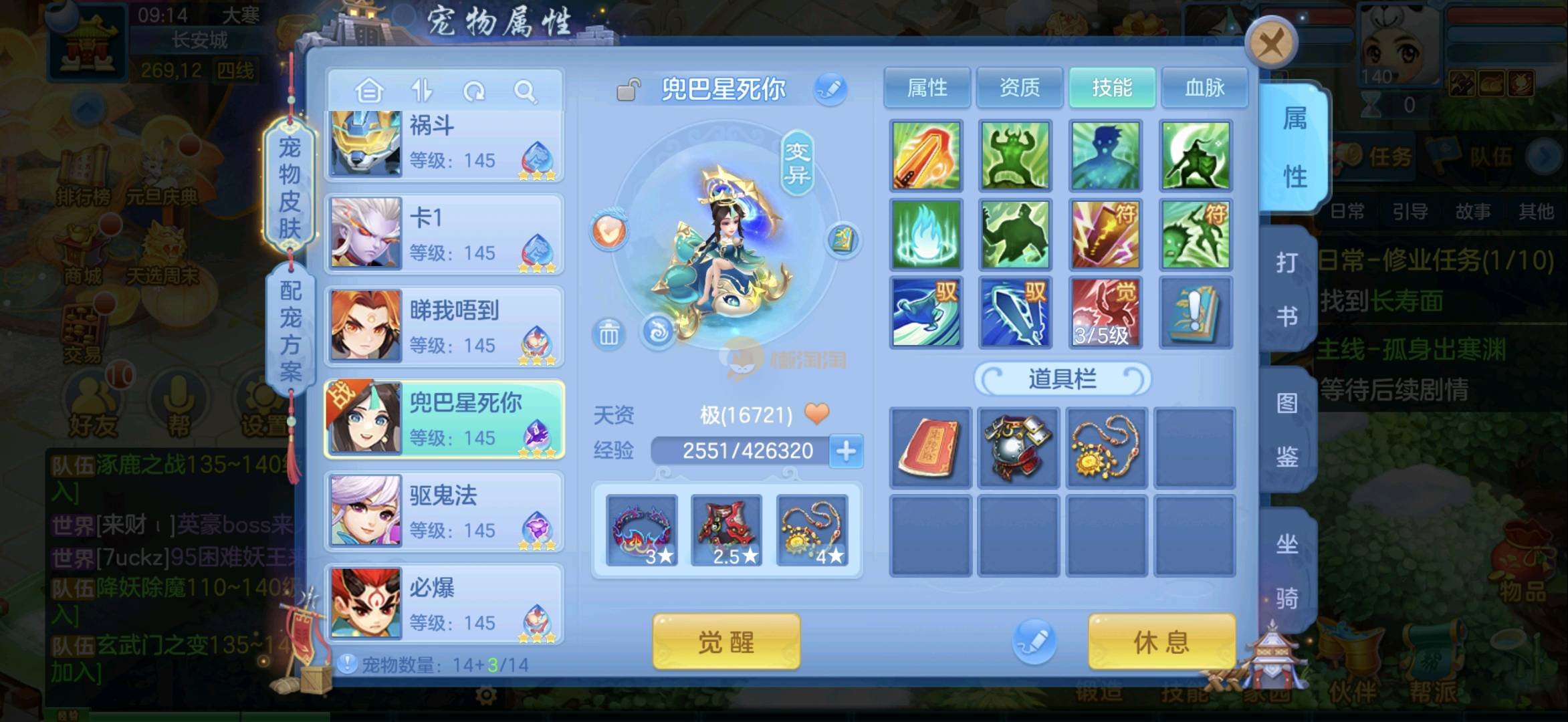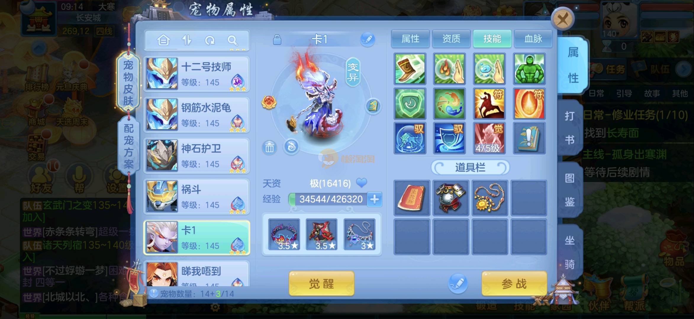 今年勇 140男魔王,三件14.4,不变卡灵力防御双1570+,变卡双1600+ 14个满兽魂宝宝 11专属血脉 5宠物皮肤 无双重,带庄园2980邮箱 1年换绑 验证码找懒懒