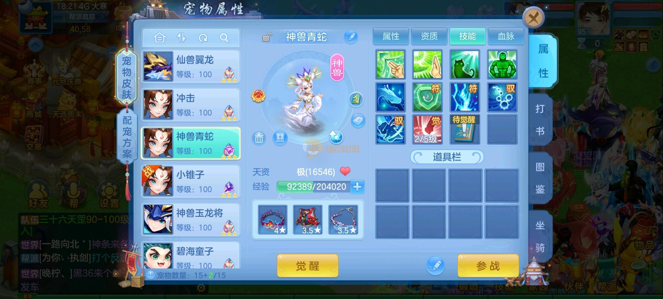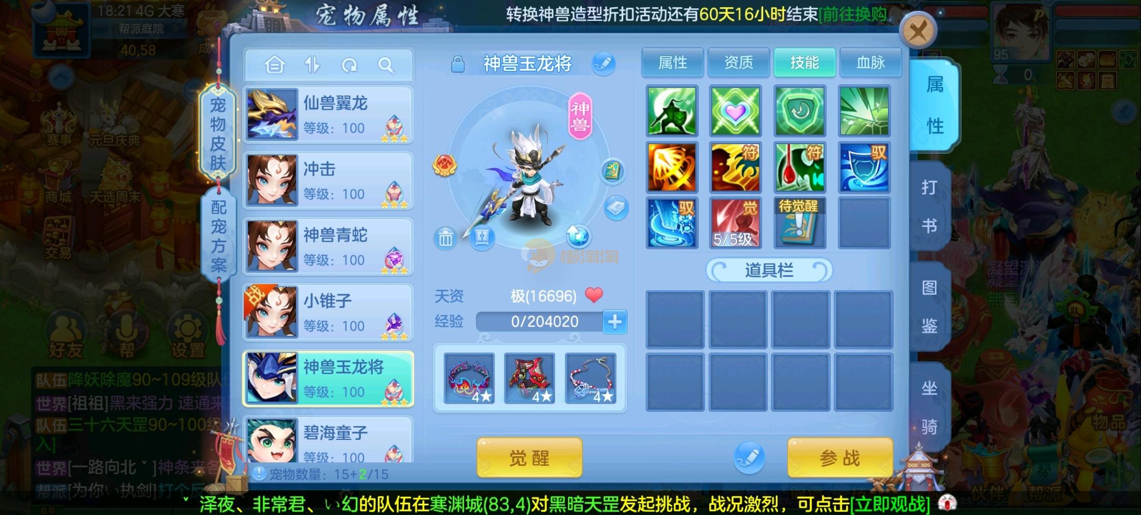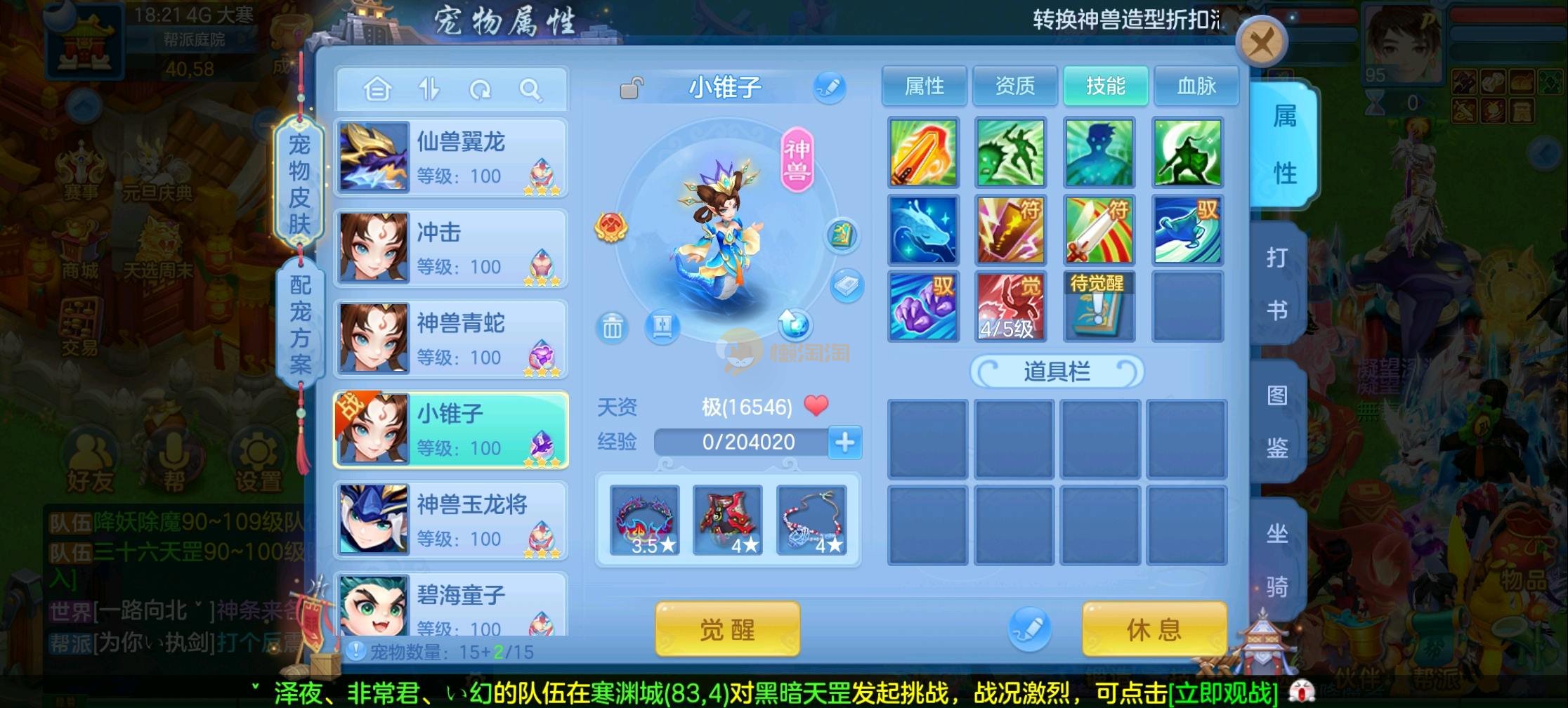 95状元,仙兽加仙皮加强化,3蛇,1玉龙,宝宝齐全各种皮肤,上手打架 带180万银子,