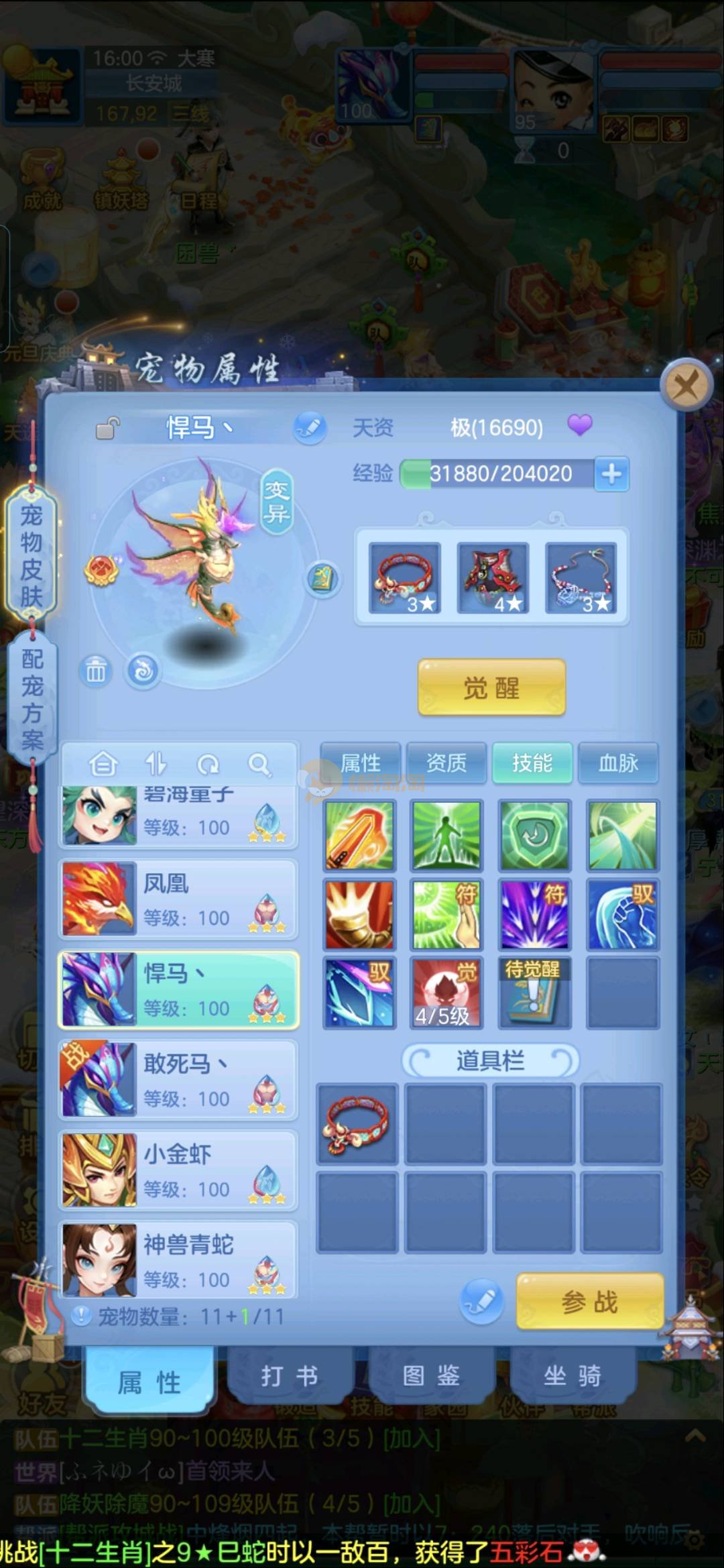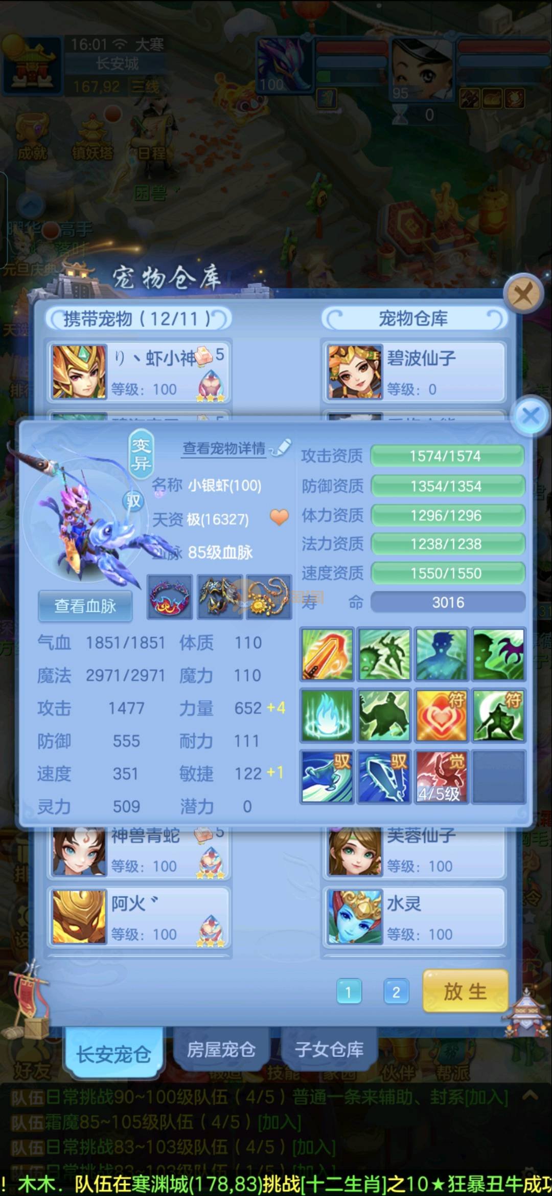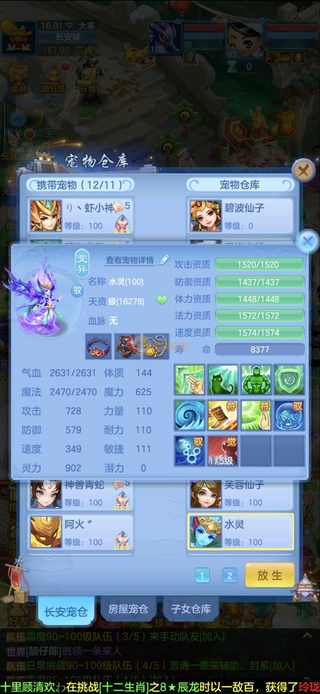 95佛门。没时间玩了,满技能宝宝多,有蛇。两个海马都有天赋