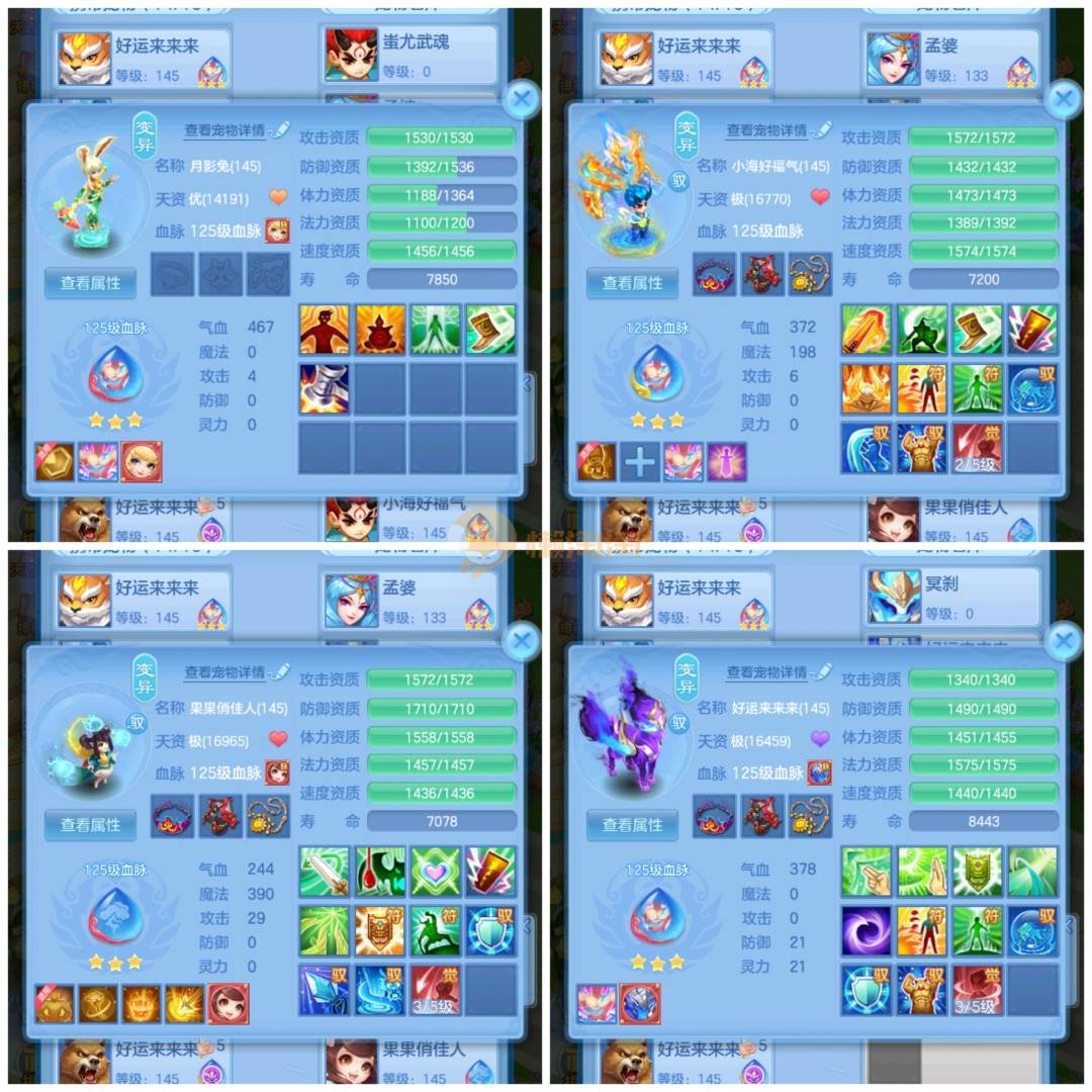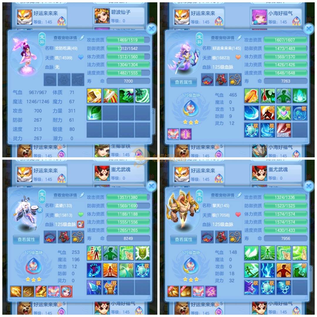 今年勇 140男魔王,三件14.4,不变卡灵力防御双1570+,变卡双1600+ 14个满兽魂宝宝 11专属血脉 5宠物皮肤 无双重,带庄园2980邮箱 1年换绑 验证码找懒懒