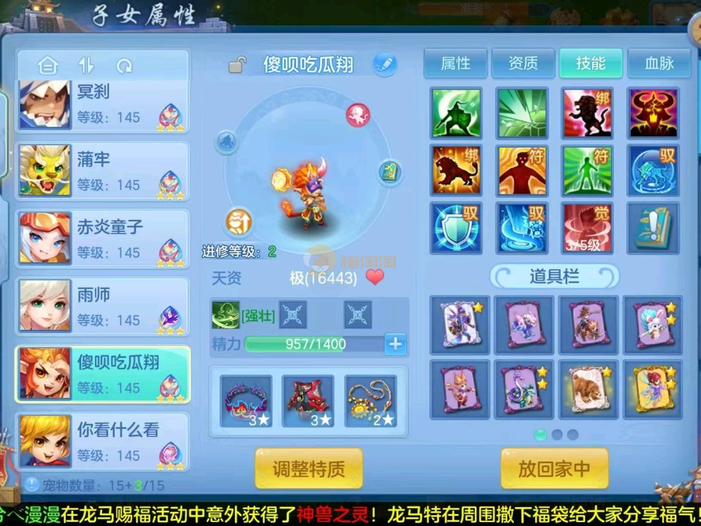 今年勇 140男魔王,三件14.4,不变卡灵力防御双1570+,变卡双1600+ 14个满兽魂宝宝 11专属血脉 5宠物皮肤 无双重,带庄园2980邮箱 1年换绑 验证码找懒懒