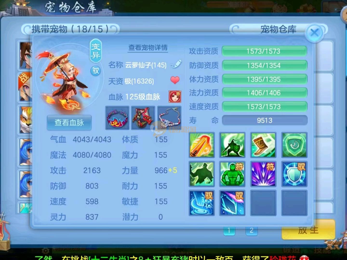 盛世长歌140男冥月,14段混13段半齐全物理、法师、辅助装备(冷静易腰带、易成长乱棍衣服),三仙兽(2仙皮,3强化),三神兽(2青蛇,1玉龙将强化),天赋云萝、公主、寒翎、镜花灵等pk宝宝齐全,上手高端pk,三染高级坐骑,自带庄园,2980邮箱,1年换绑,自己手机号