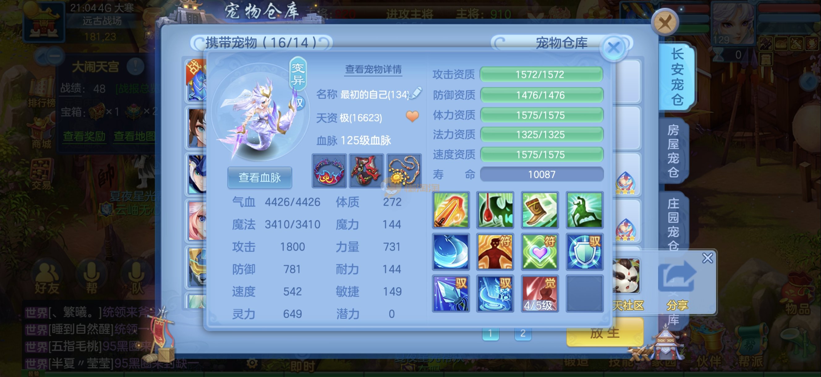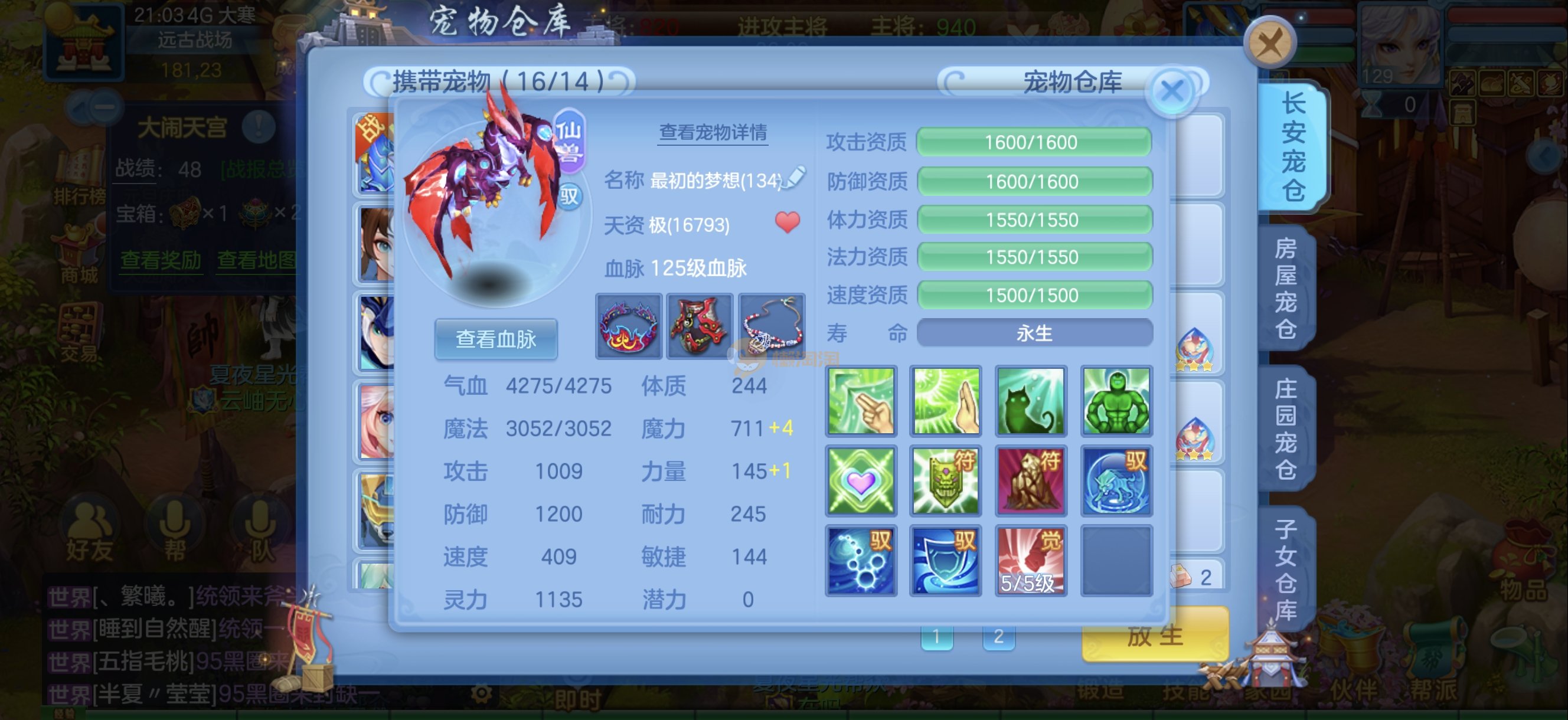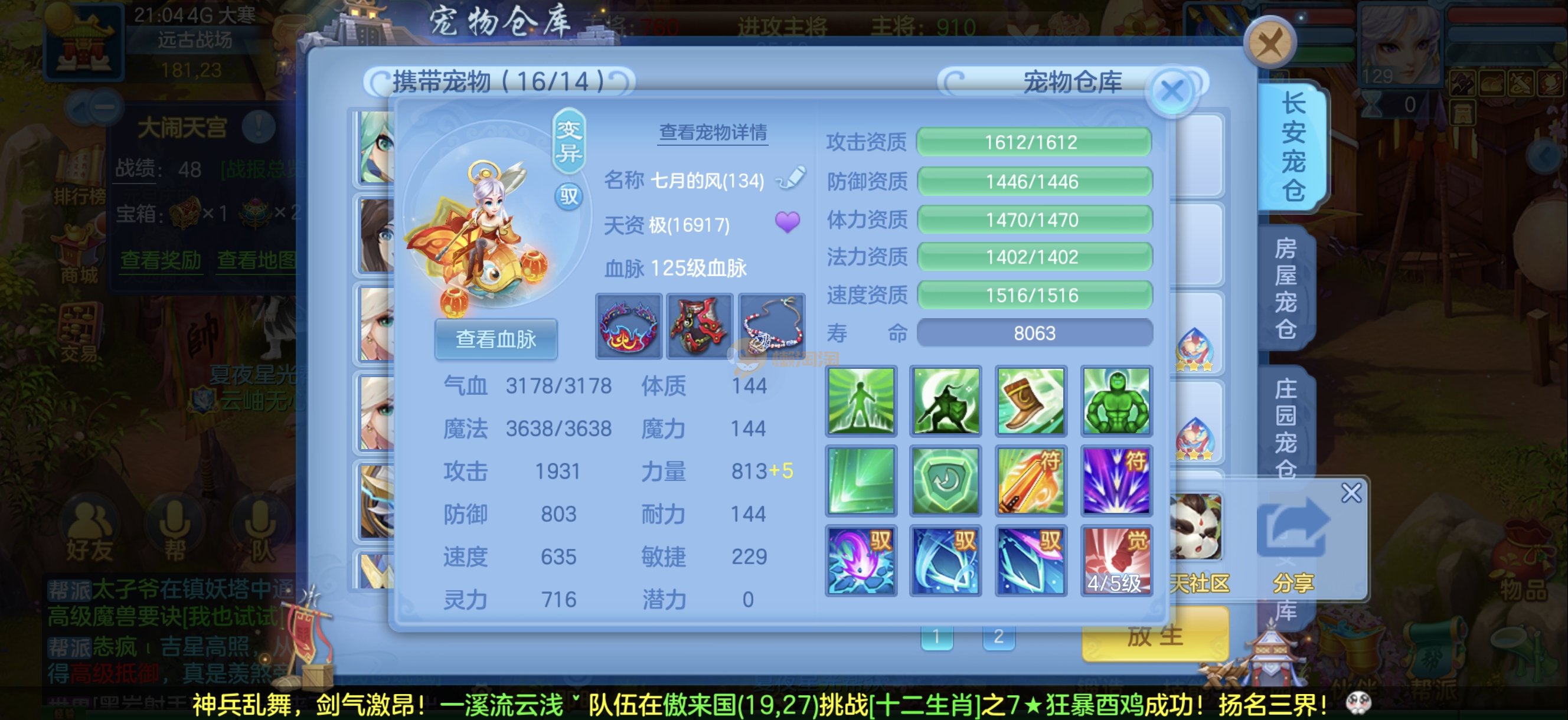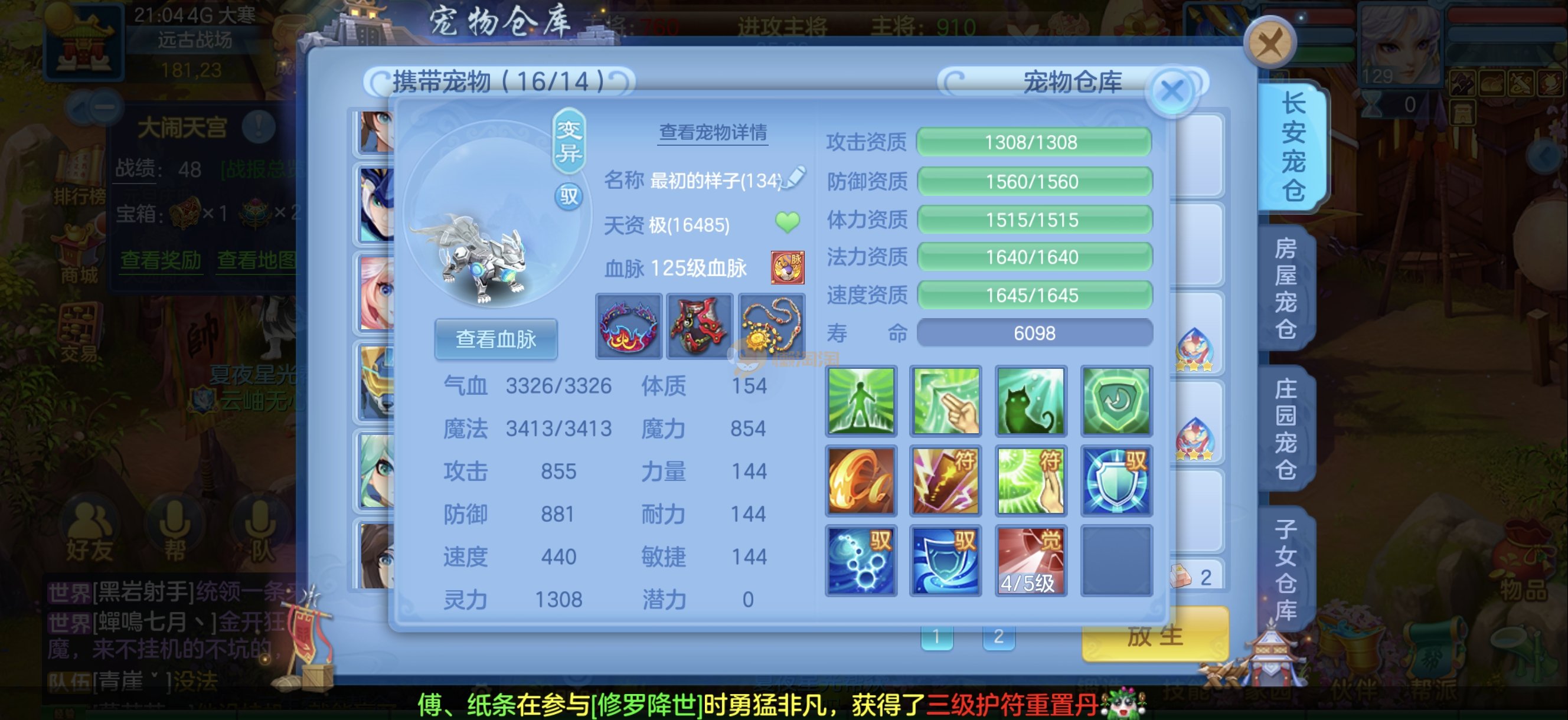 今年勇 140男魔王,三件14.4,不变卡灵力防御双1570+,变卡双1600+ 14个满兽魂宝宝 11专属血脉 5宠物皮肤 无双重,带庄园2980邮箱 1年换绑 验证码找懒懒