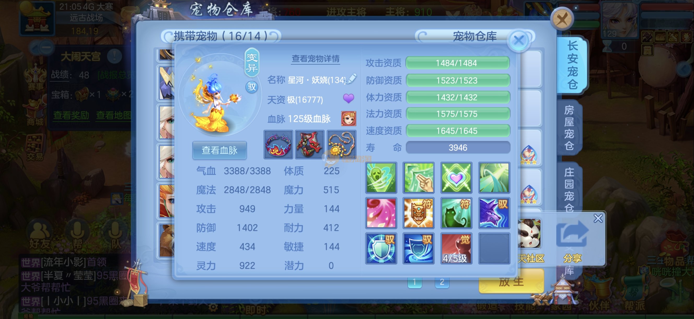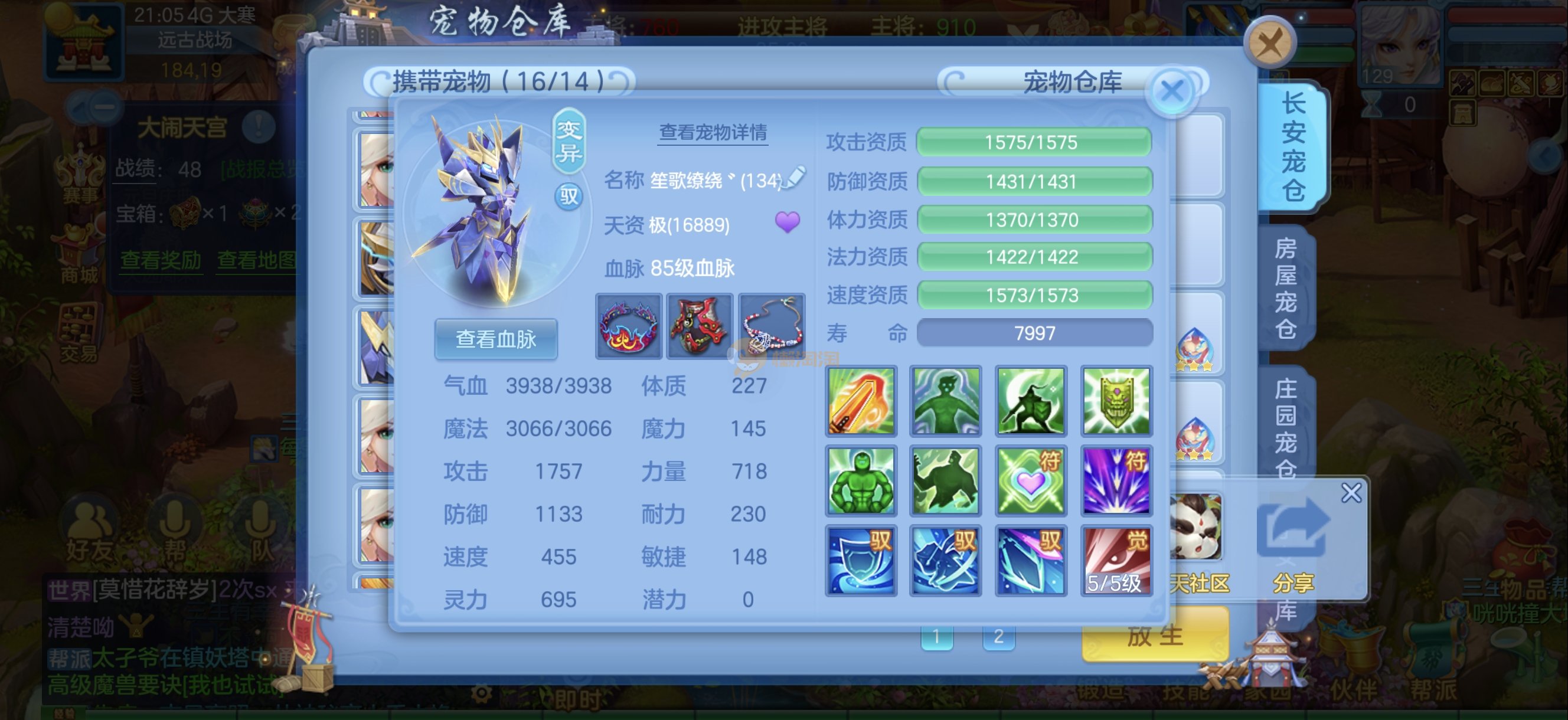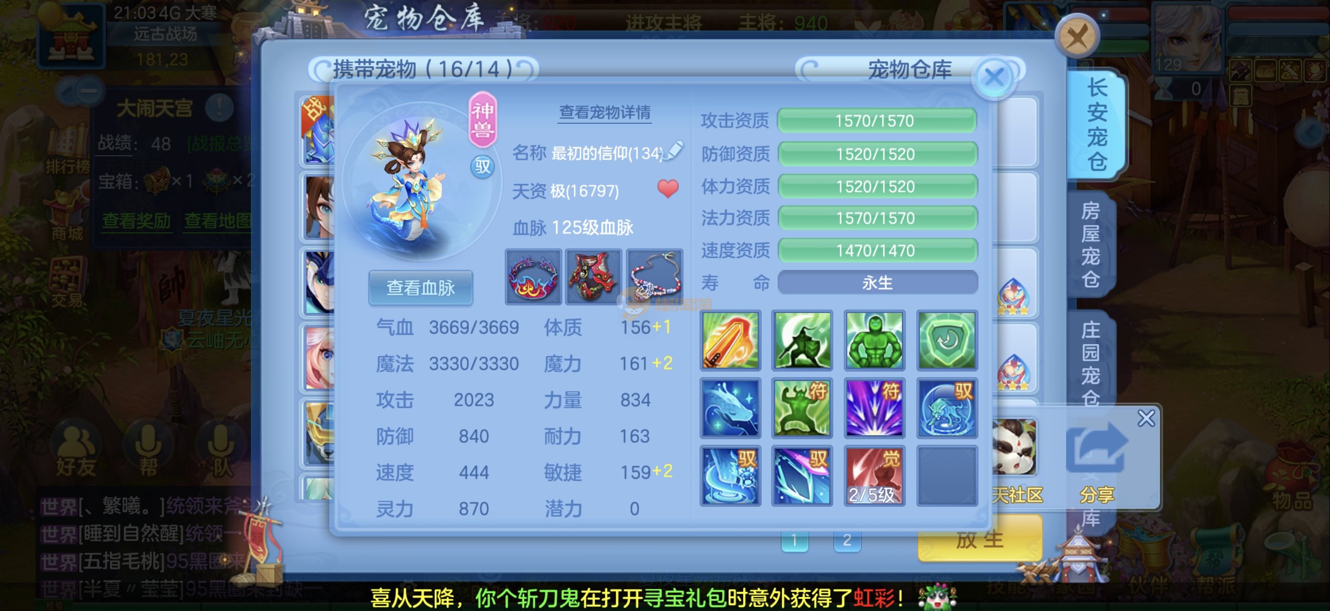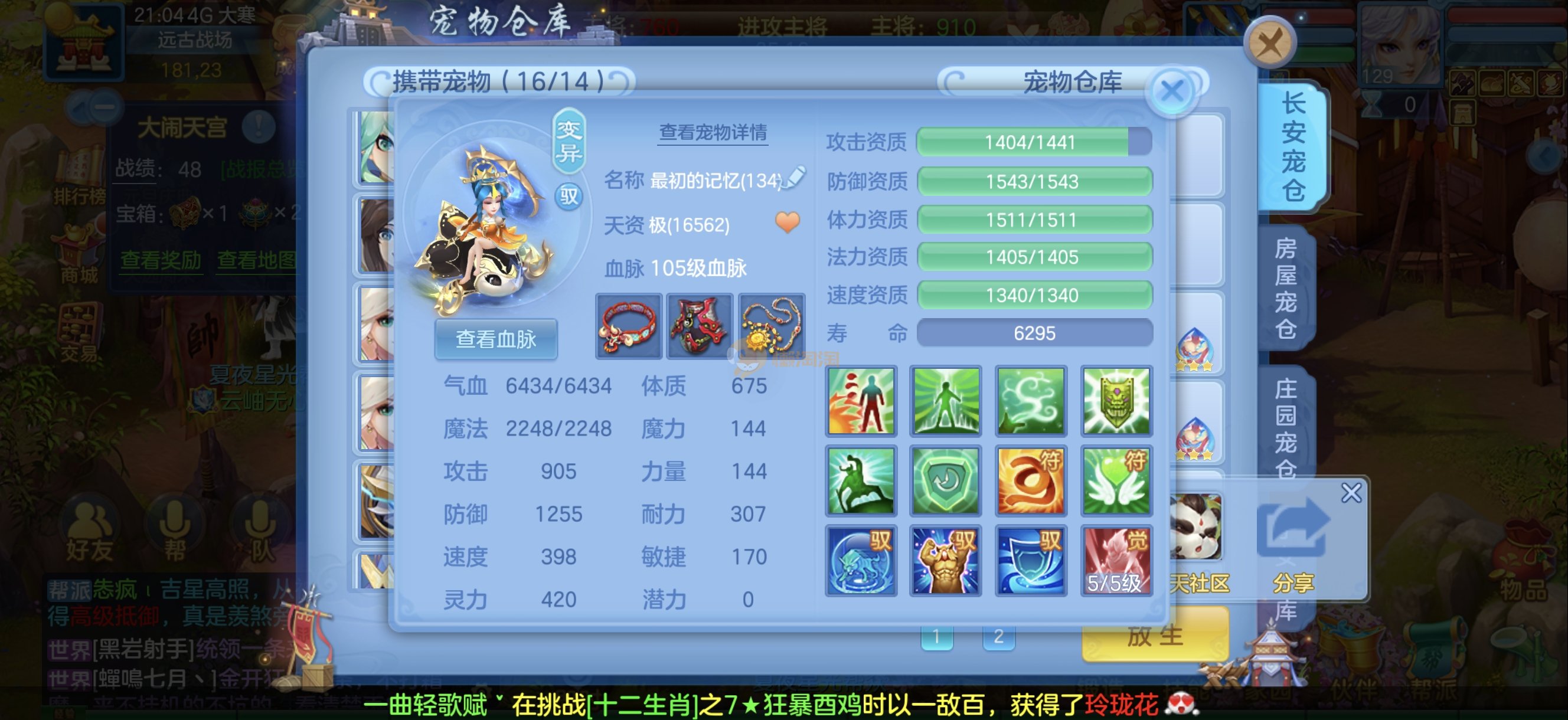 今年勇 140男魔王,三件14.4,不变卡灵力防御双1570+,变卡双1600+ 14个满兽魂宝宝 11专属血脉 5宠物皮肤 无双重,带庄园2980邮箱 1年换绑 验证码找懒懒