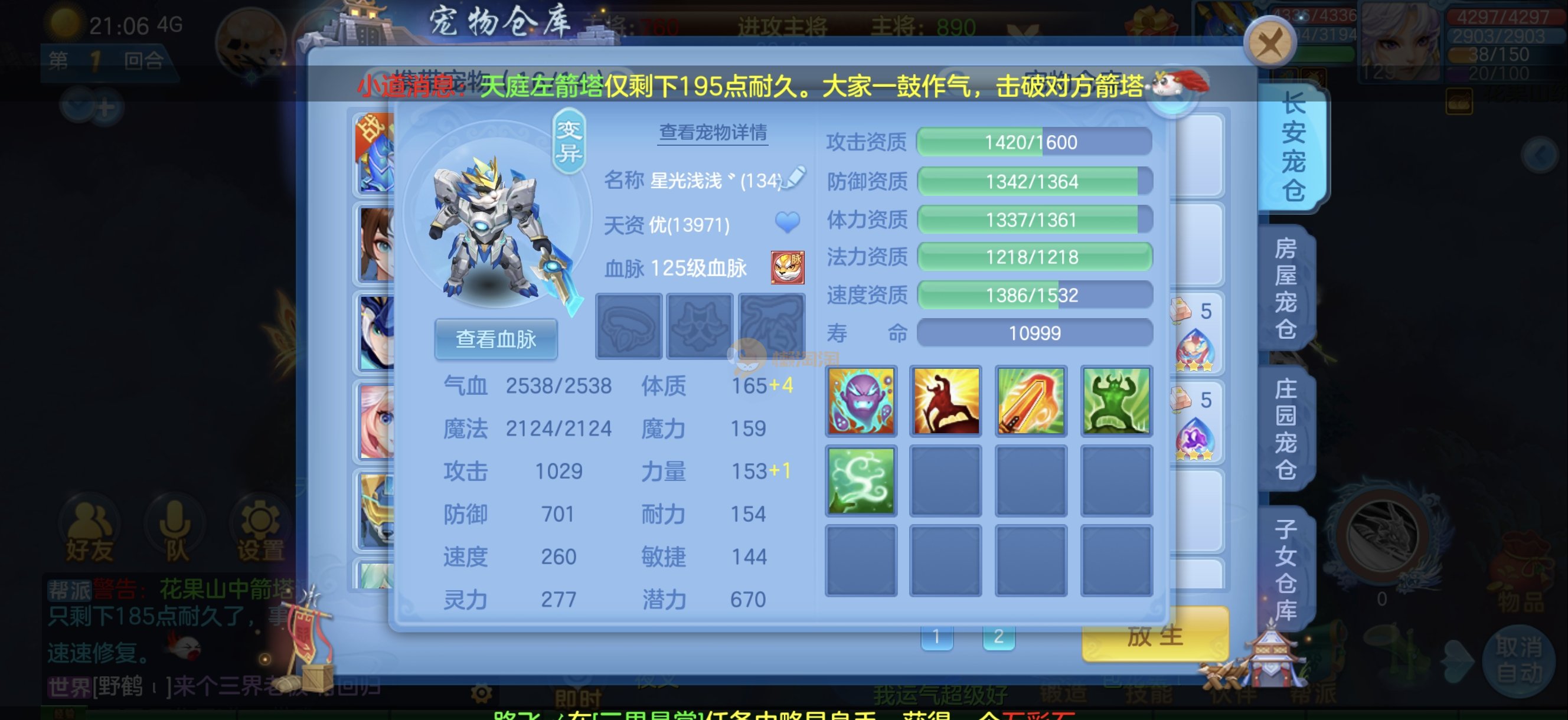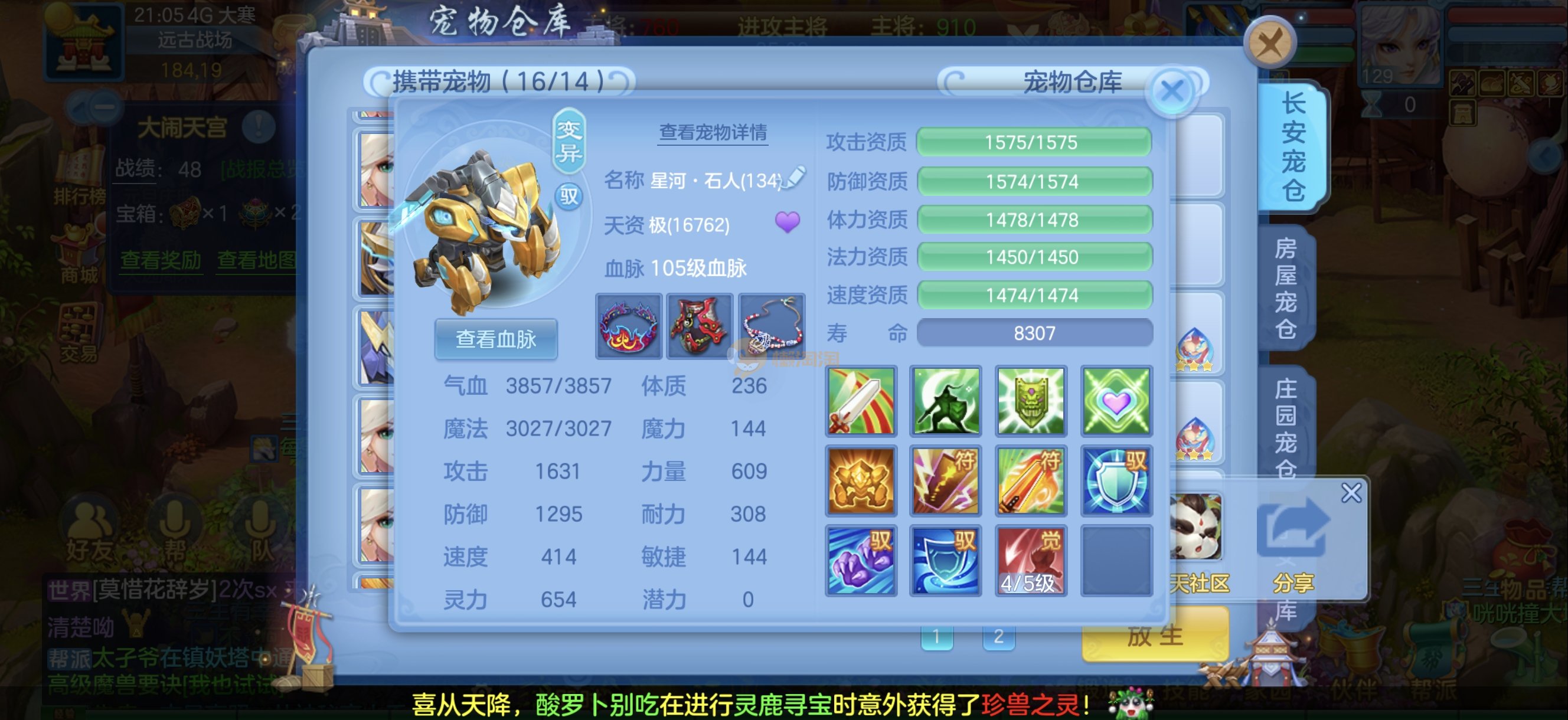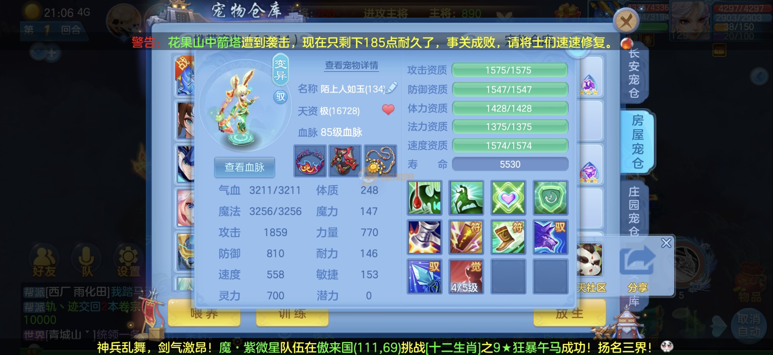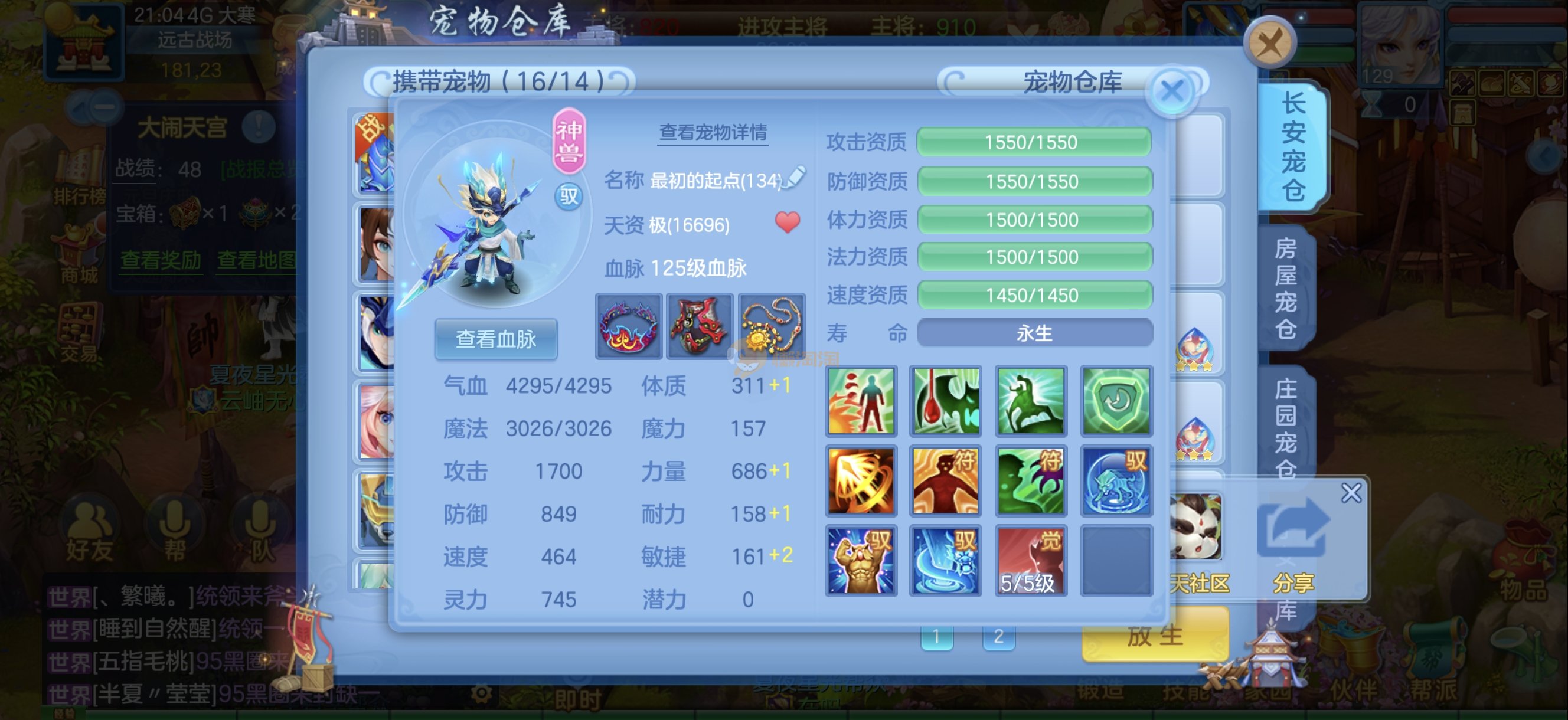 今年勇 140男魔王,三件14.4,不变卡灵力防御双1570+,变卡双1600+ 14个满兽魂宝宝 11专属血脉 5宠物皮肤 无双重,带庄园2980邮箱 1年换绑 验证码找懒懒