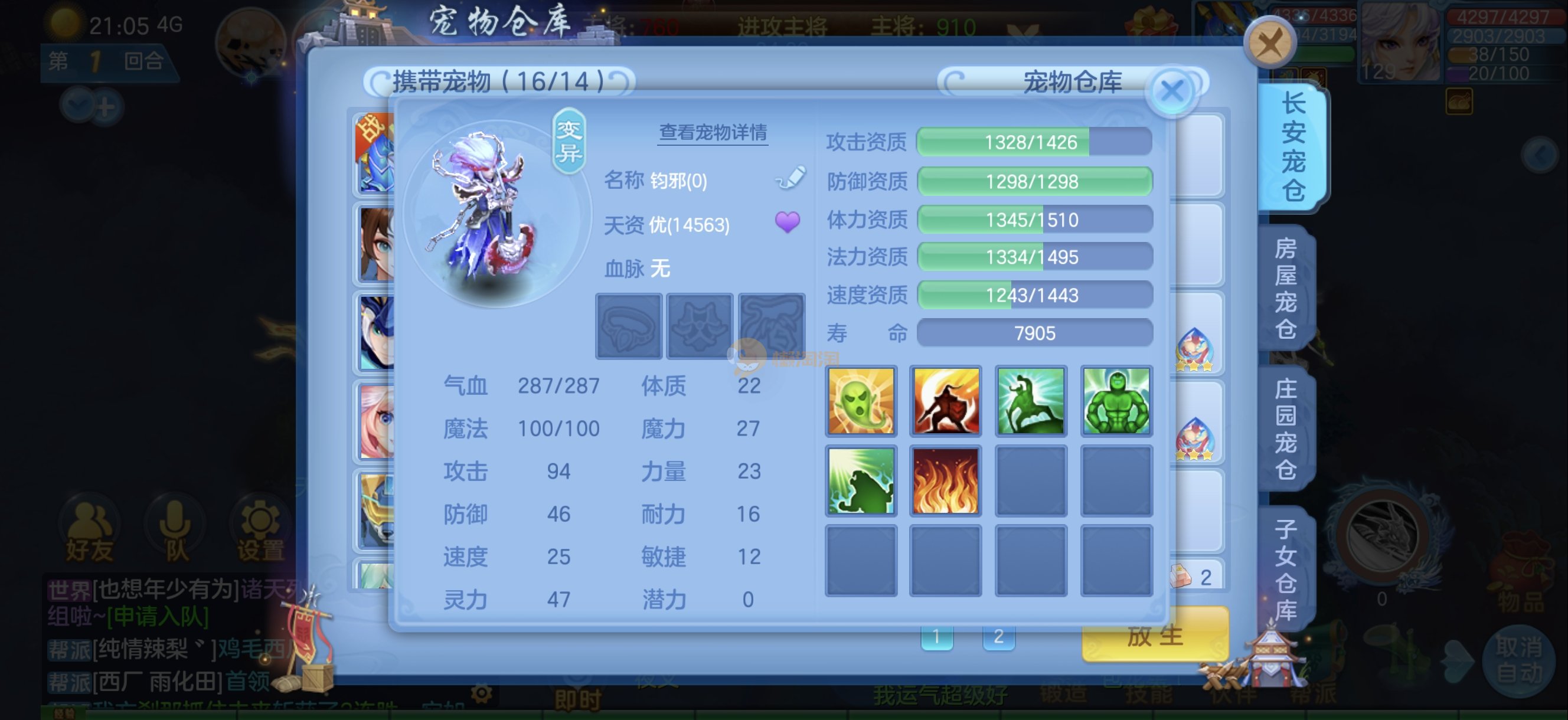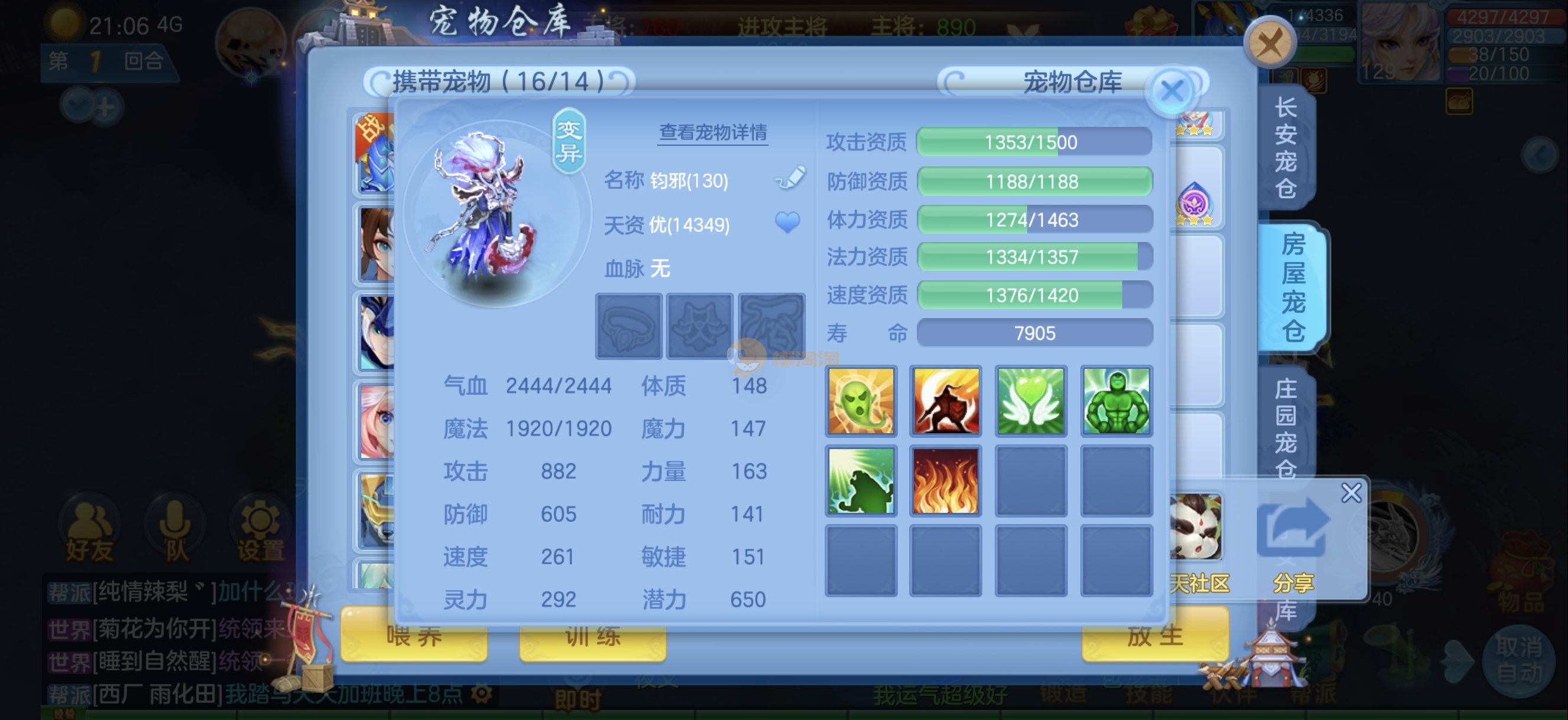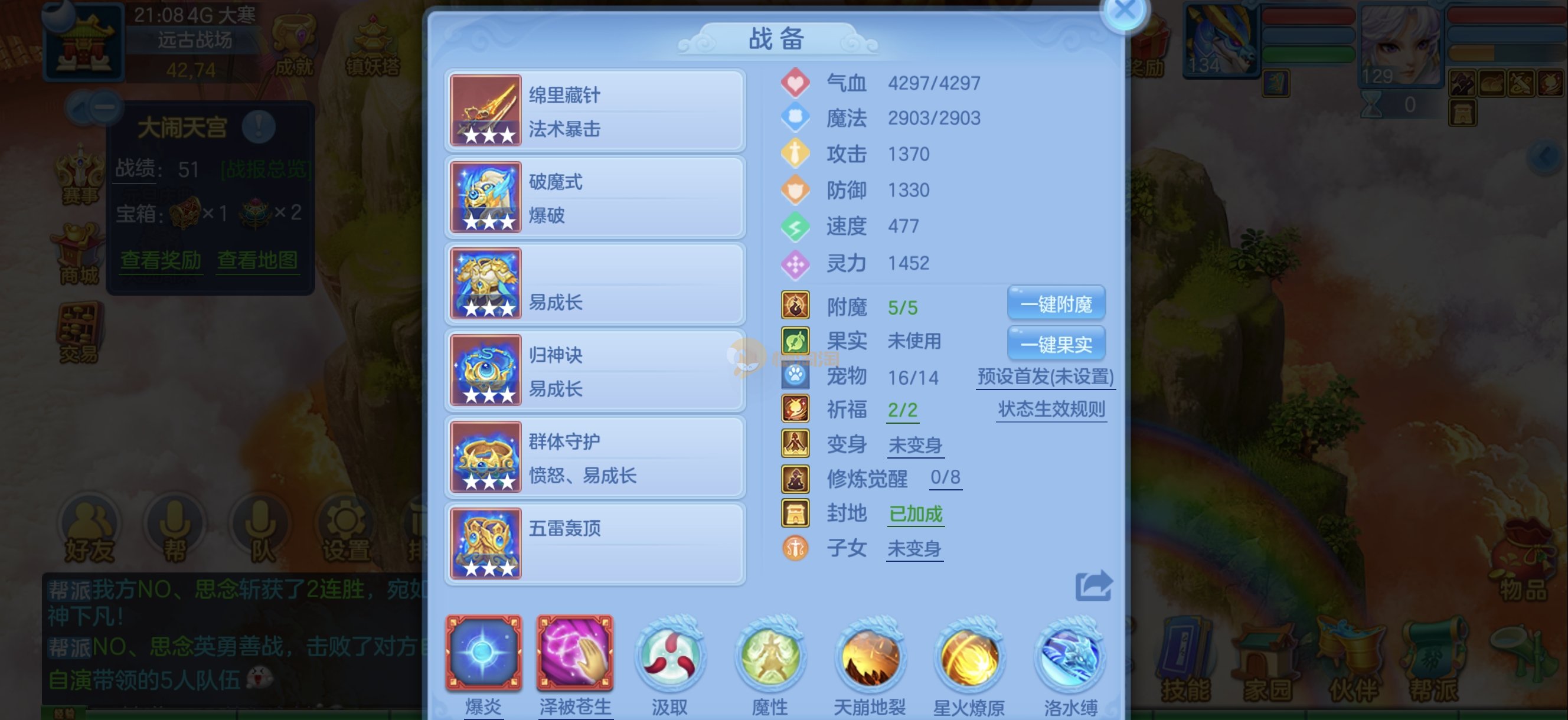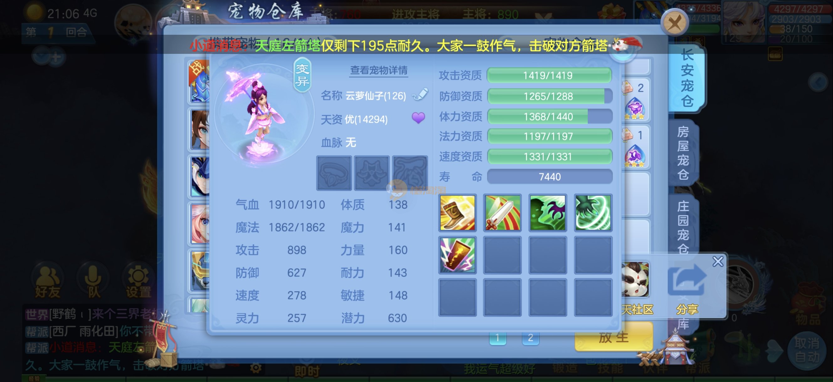 今年勇 140男魔王,三件14.4,不变卡灵力防御双1570+,变卡双1600+ 14个满兽魂宝宝 11专属血脉 5宠物皮肤 无双重,带庄园2980邮箱 1年换绑 验证码找懒懒
