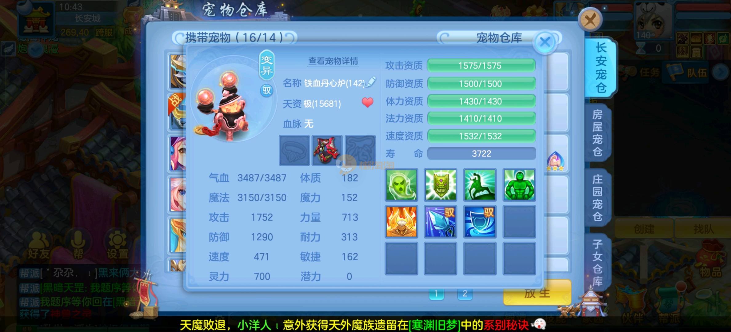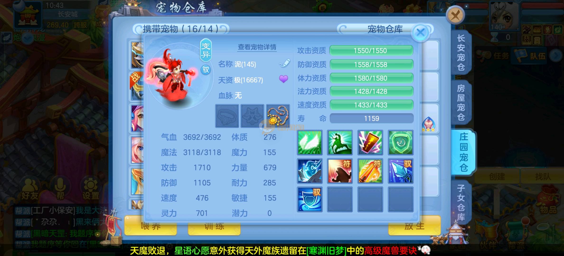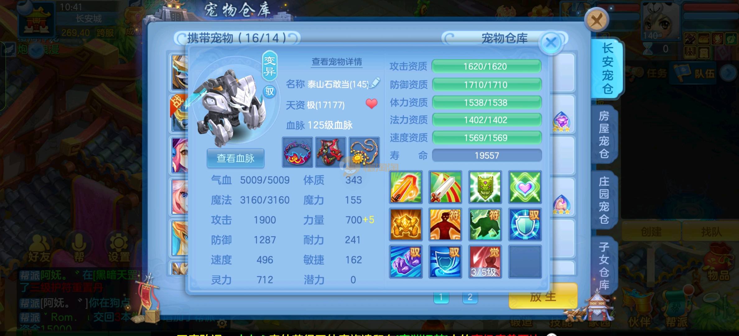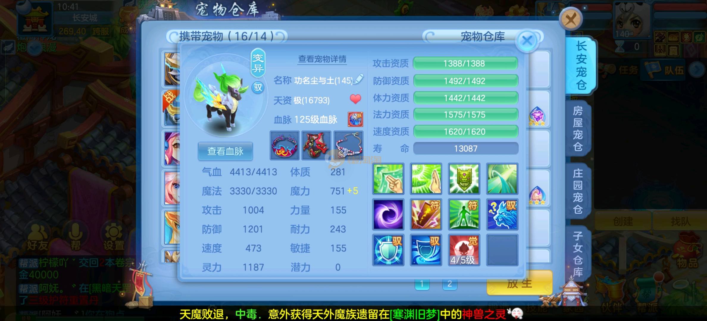 今年勇 140男魔王,三件14.4,不变卡灵力防御双1570+,变卡双1600+ 14个满兽魂宝宝 11专属血脉 5宠物皮肤 无双重,带庄园2980邮箱 1年换绑 验证码找懒懒
