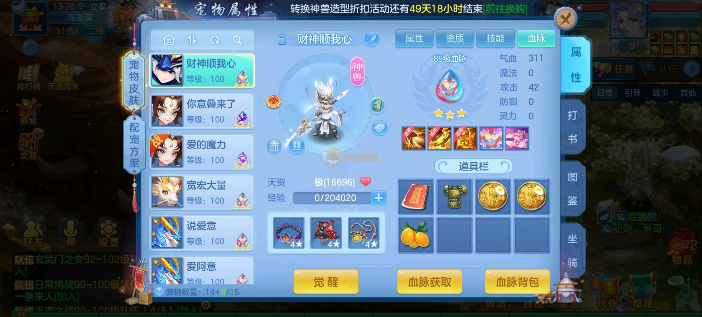 今年勇 140男魔王,三件14.4,不变卡灵力防御双1570+,变卡双1600+ 14个满兽魂宝宝 11专属血脉 5宠物皮肤 无双重,带庄园2980邮箱 1年换绑 验证码找懒懒