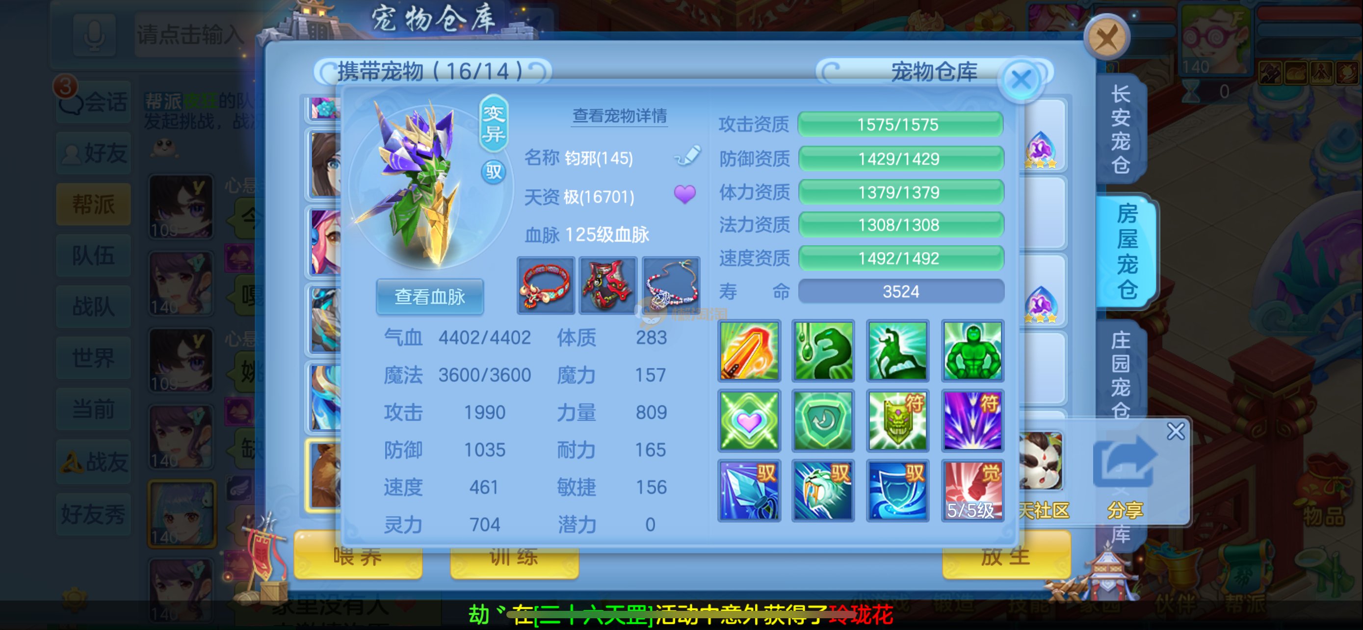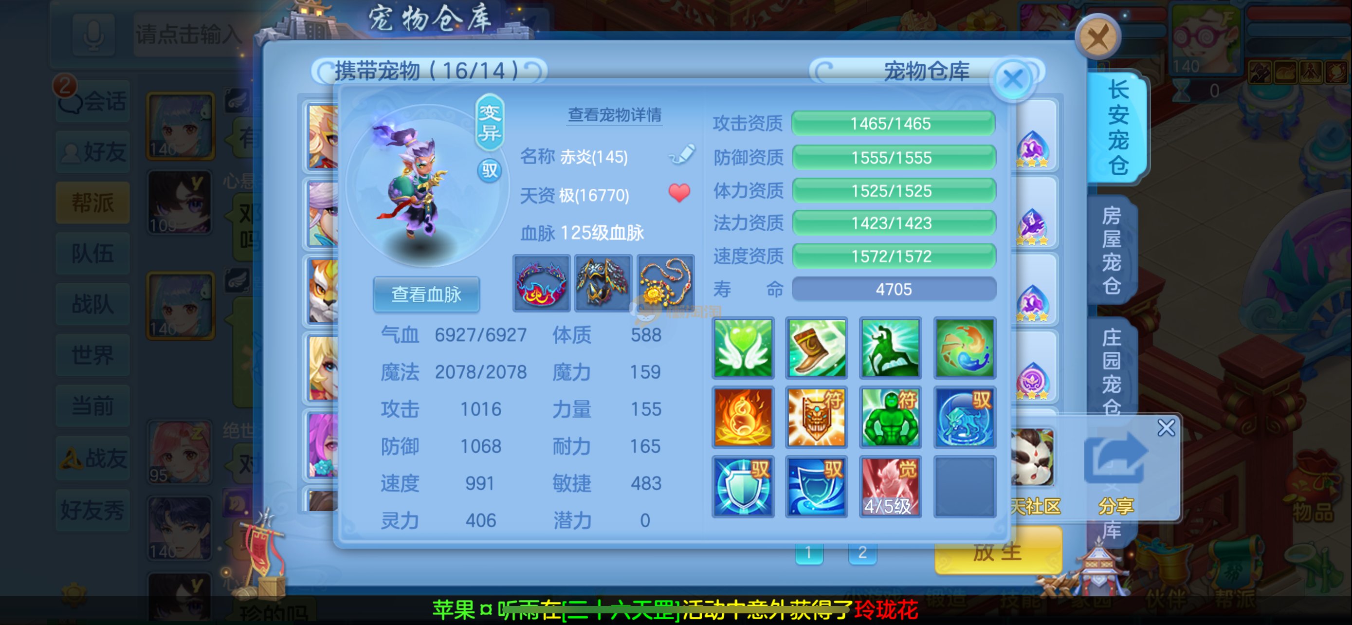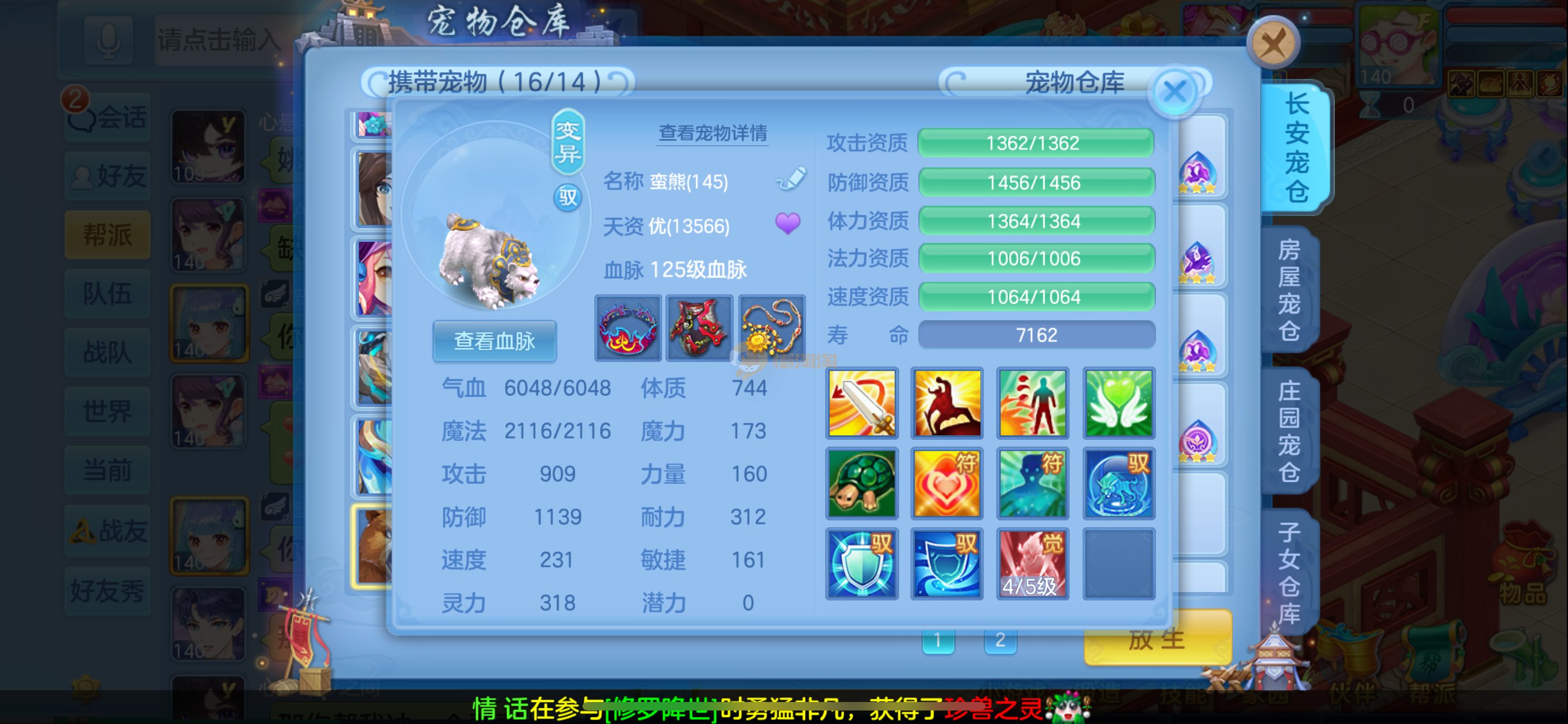 今年勇 140男魔王,三件14.4,不变卡灵力防御双1570+,变卡双1600+ 14个满兽魂宝宝 11专属血脉 5宠物皮肤 无双重,带庄园2980邮箱 1年换绑 验证码找懒懒