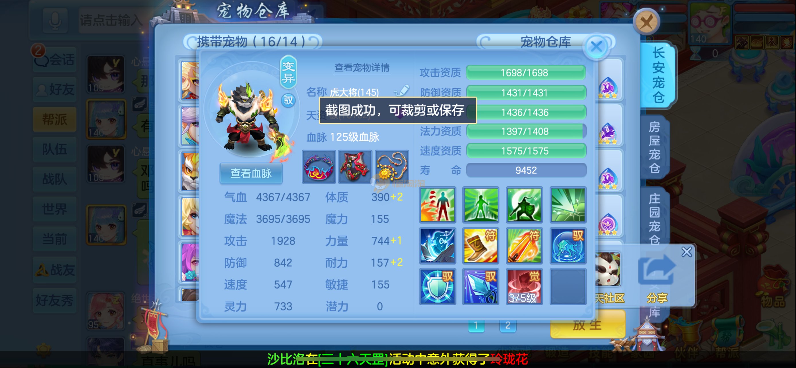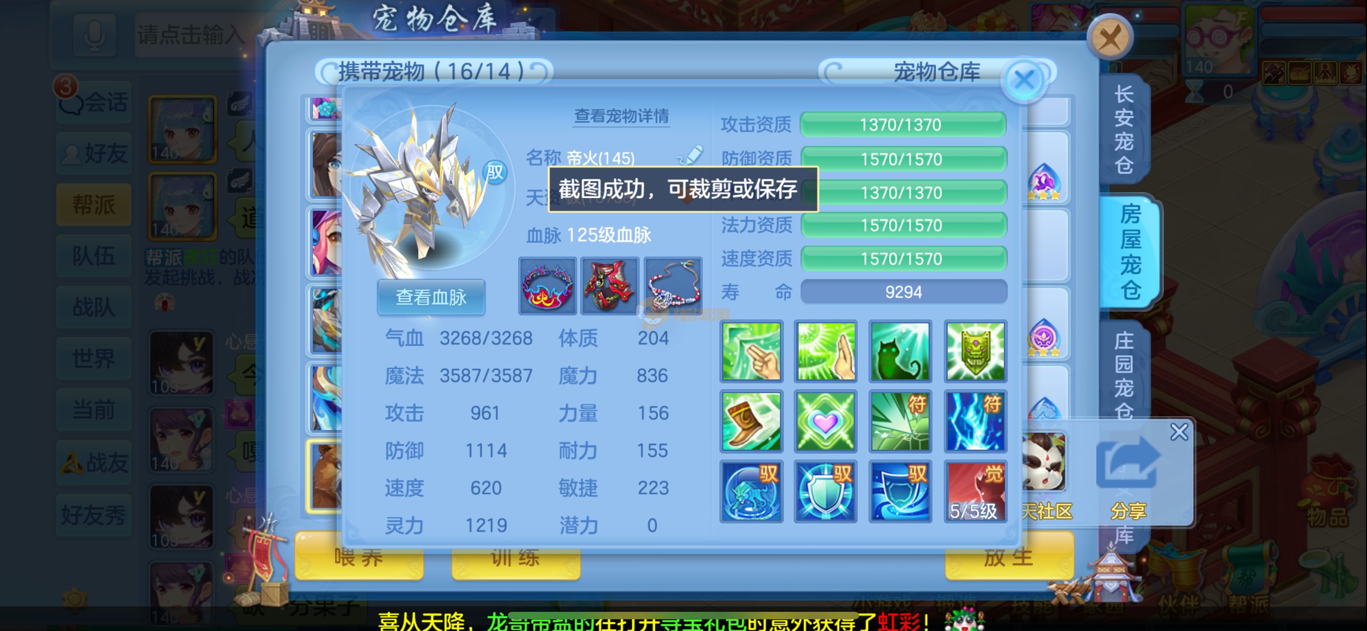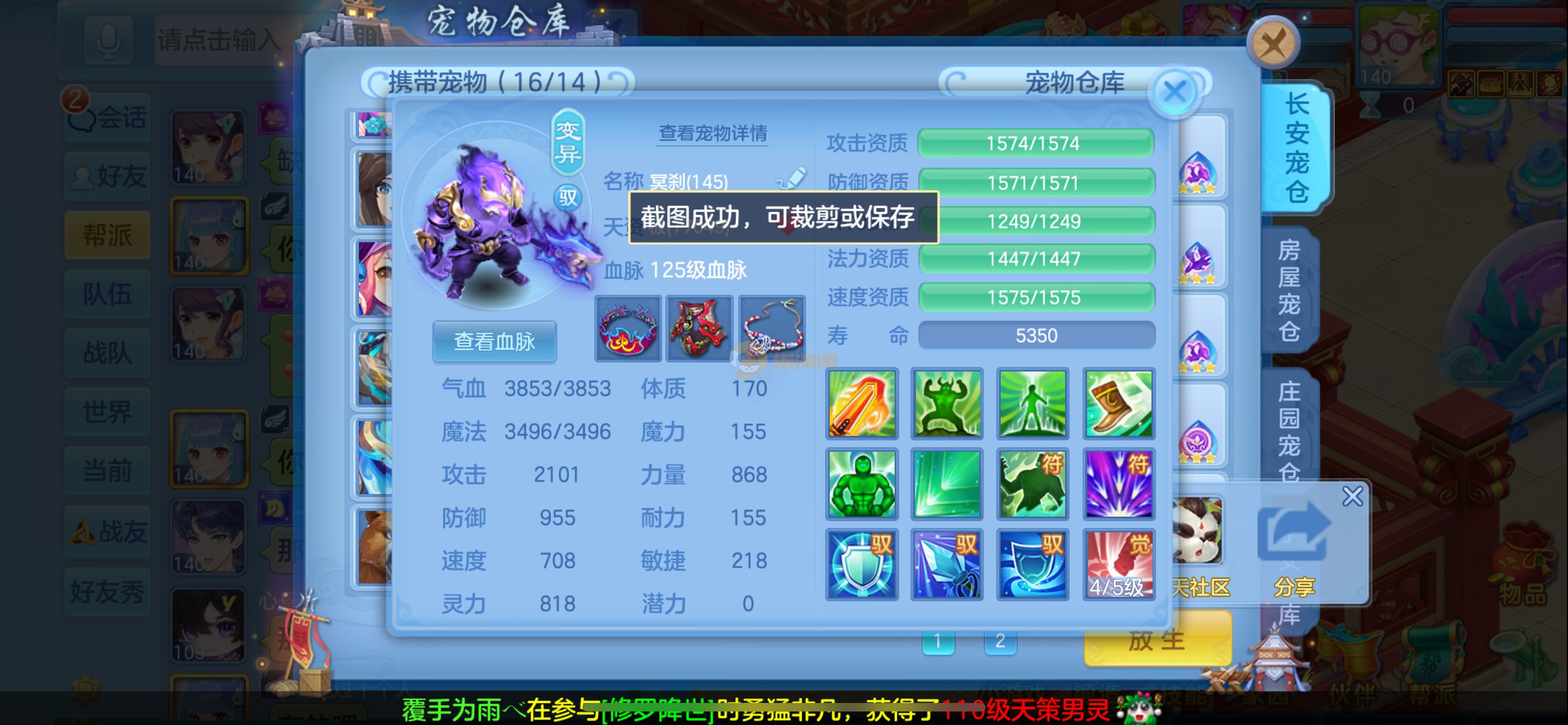 今年勇 140男魔王,三件14.4,不变卡灵力防御双1570+,变卡双1600+ 14个满兽魂宝宝 11专属血脉 5宠物皮肤 无双重,带庄园2980邮箱 1年换绑 验证码找懒懒