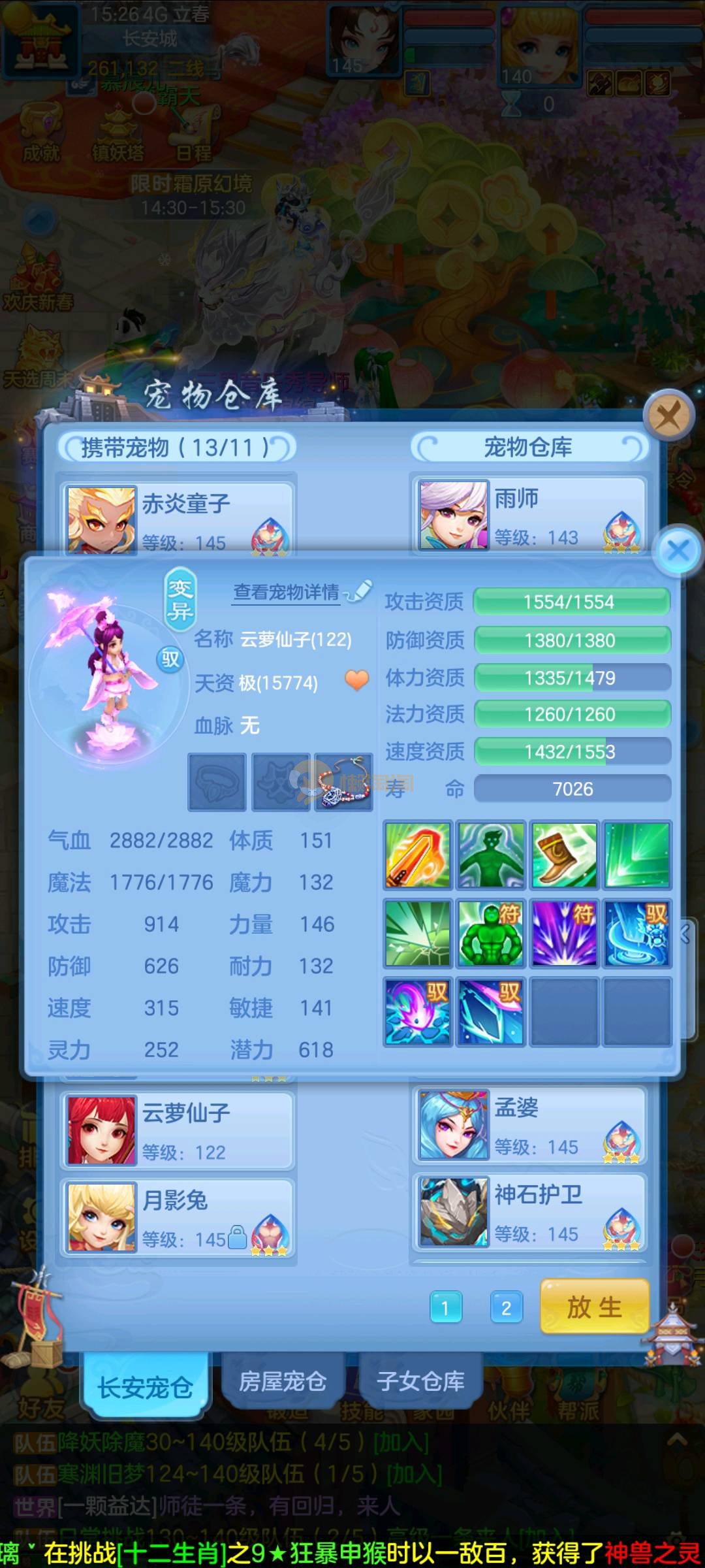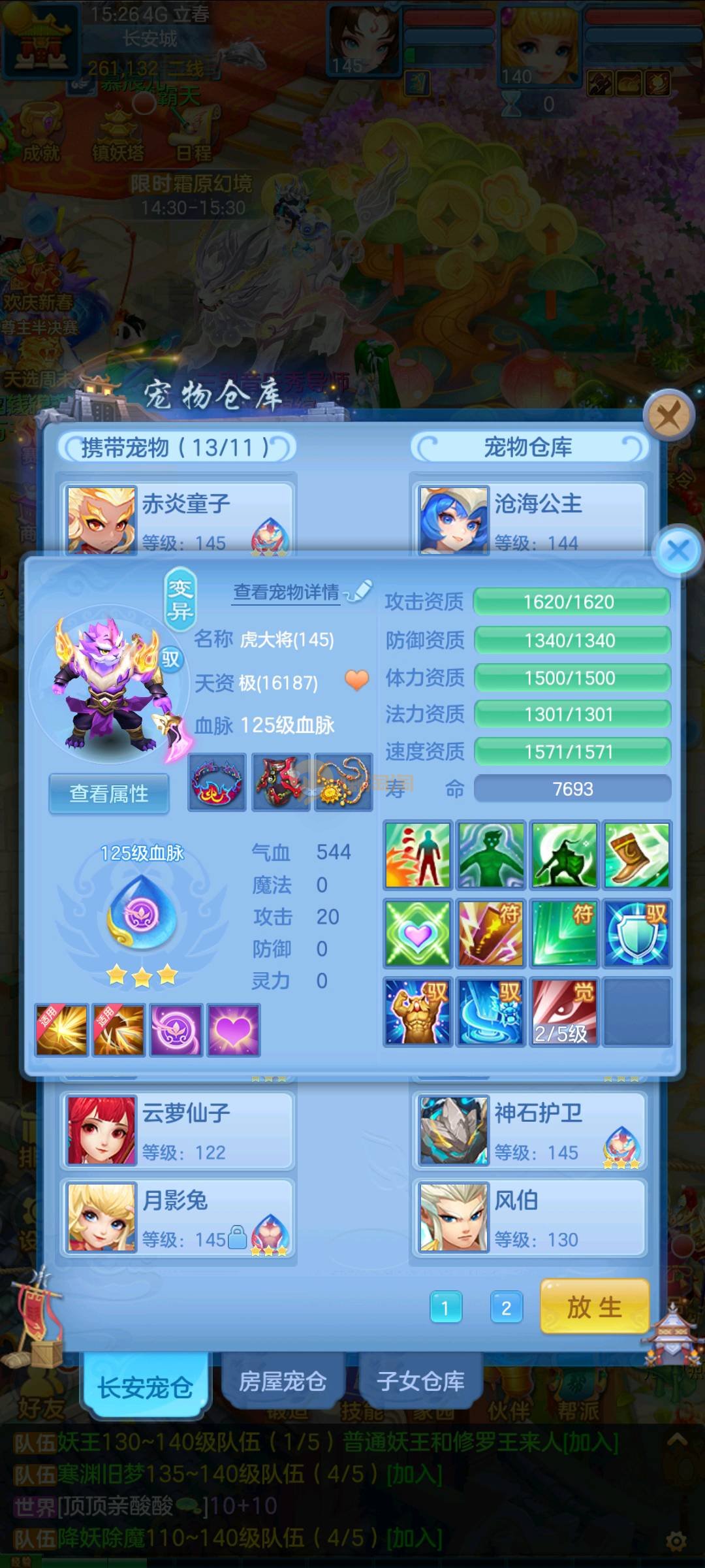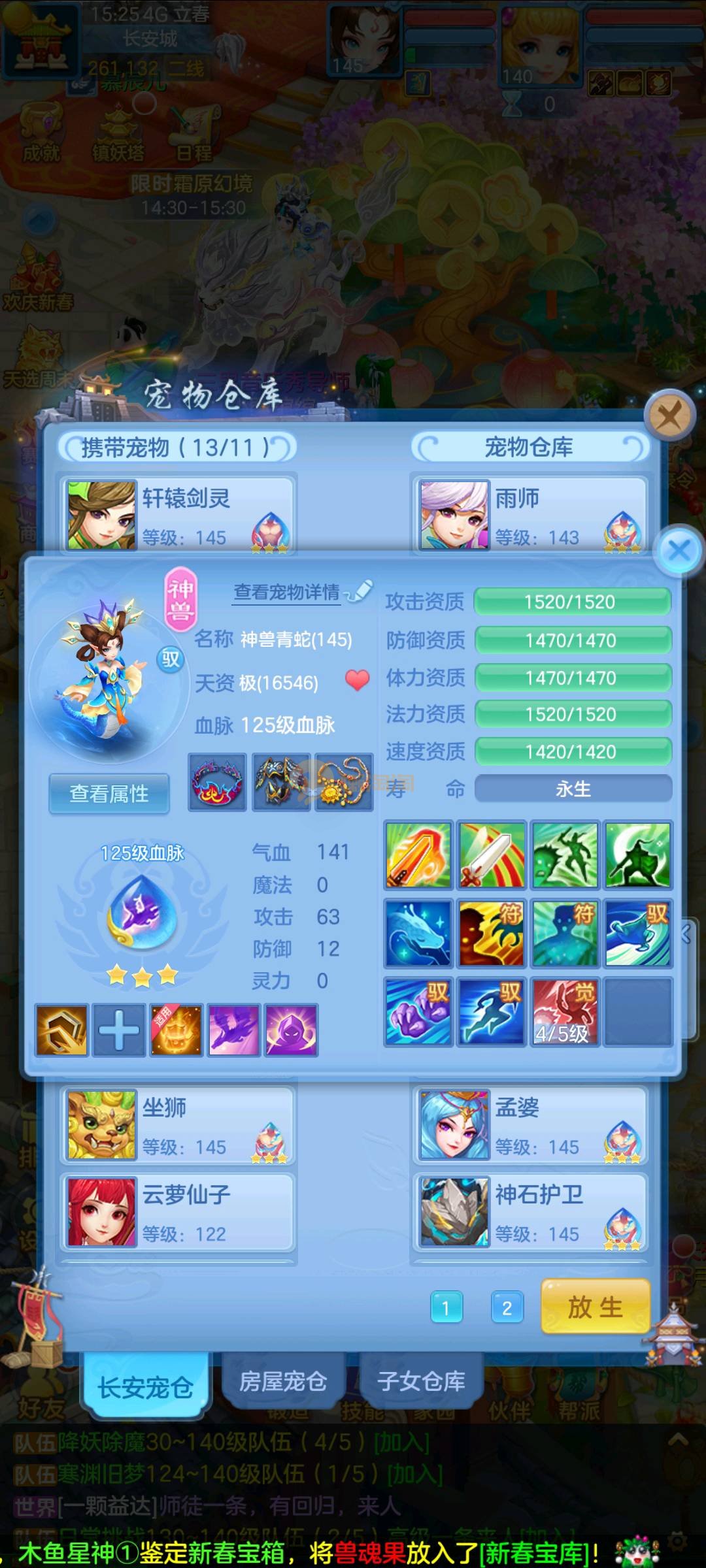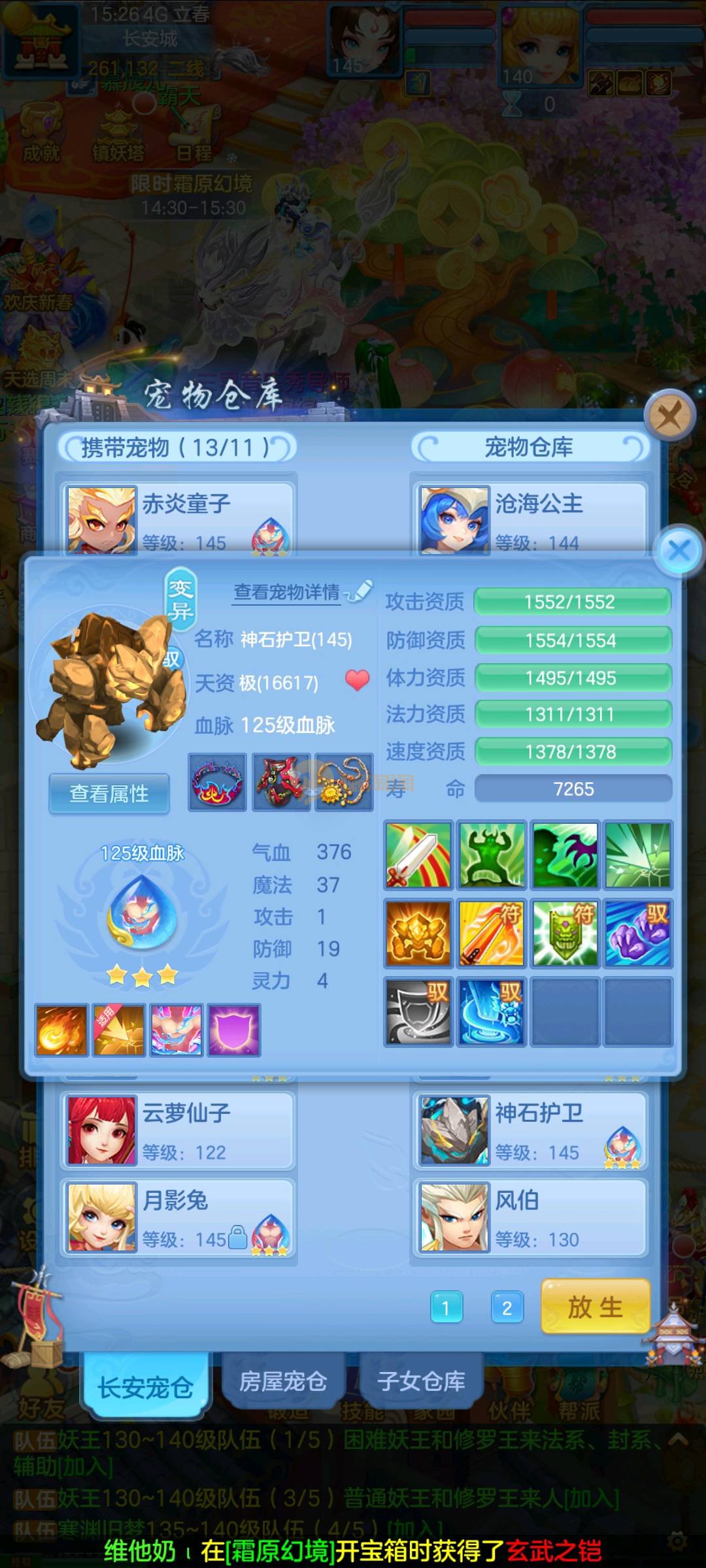 今年勇 140男魔王,三件14.4,不变卡灵力防御双1570+,变卡双1600+ 14个满兽魂宝宝 11专属血脉 5宠物皮肤 无双重,带庄园2980邮箱 1年换绑 验证码找懒懒
