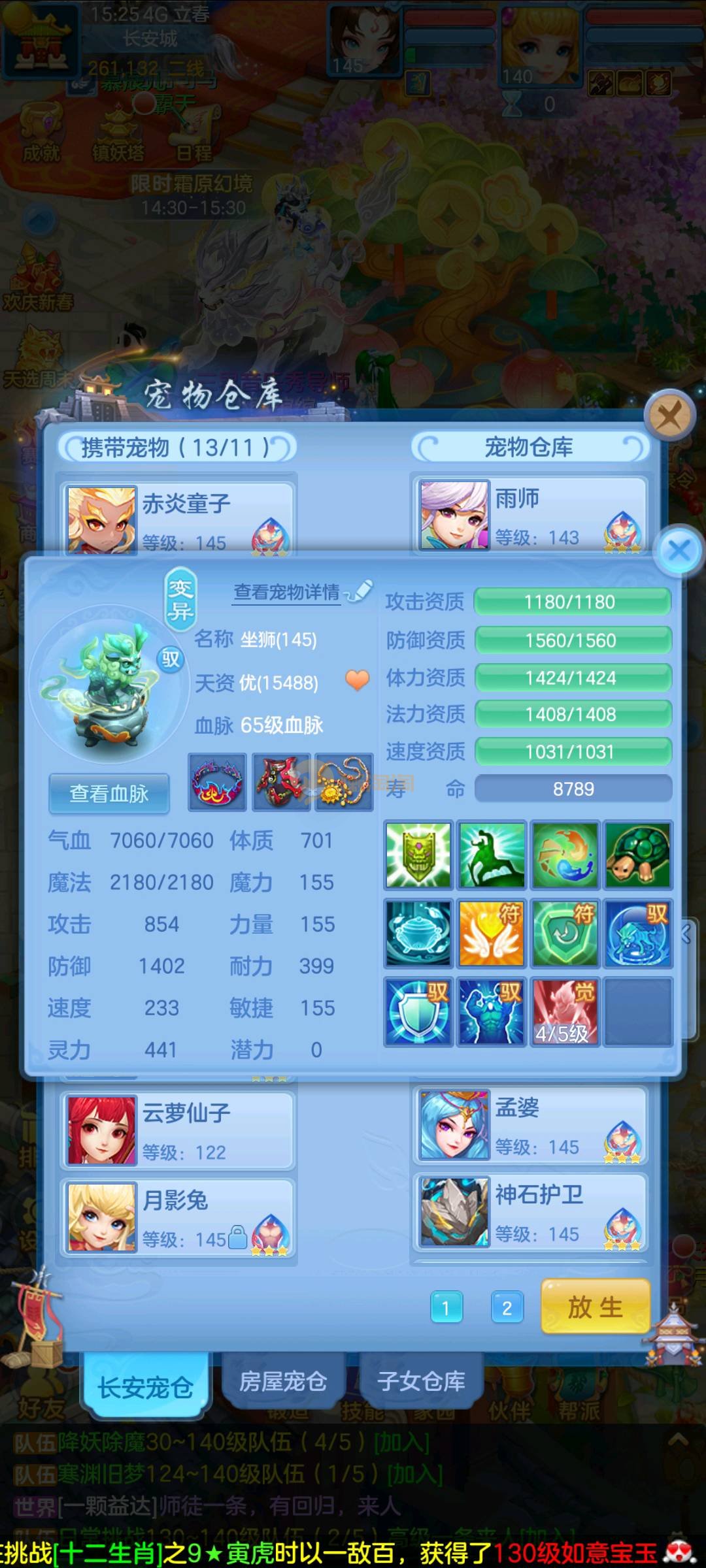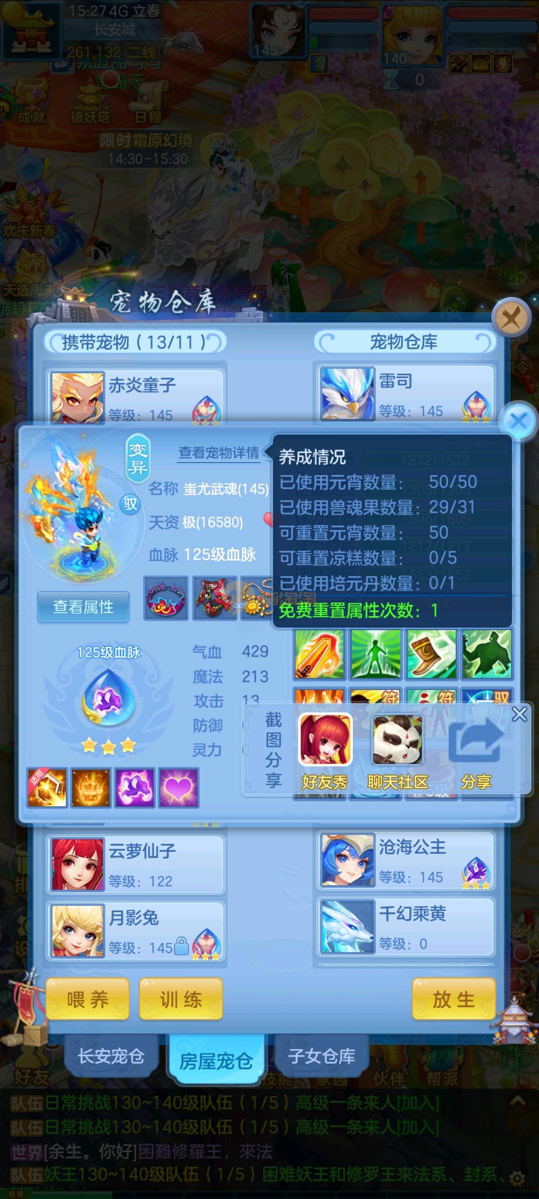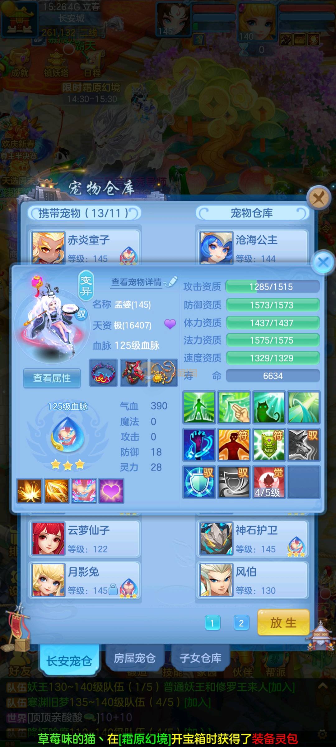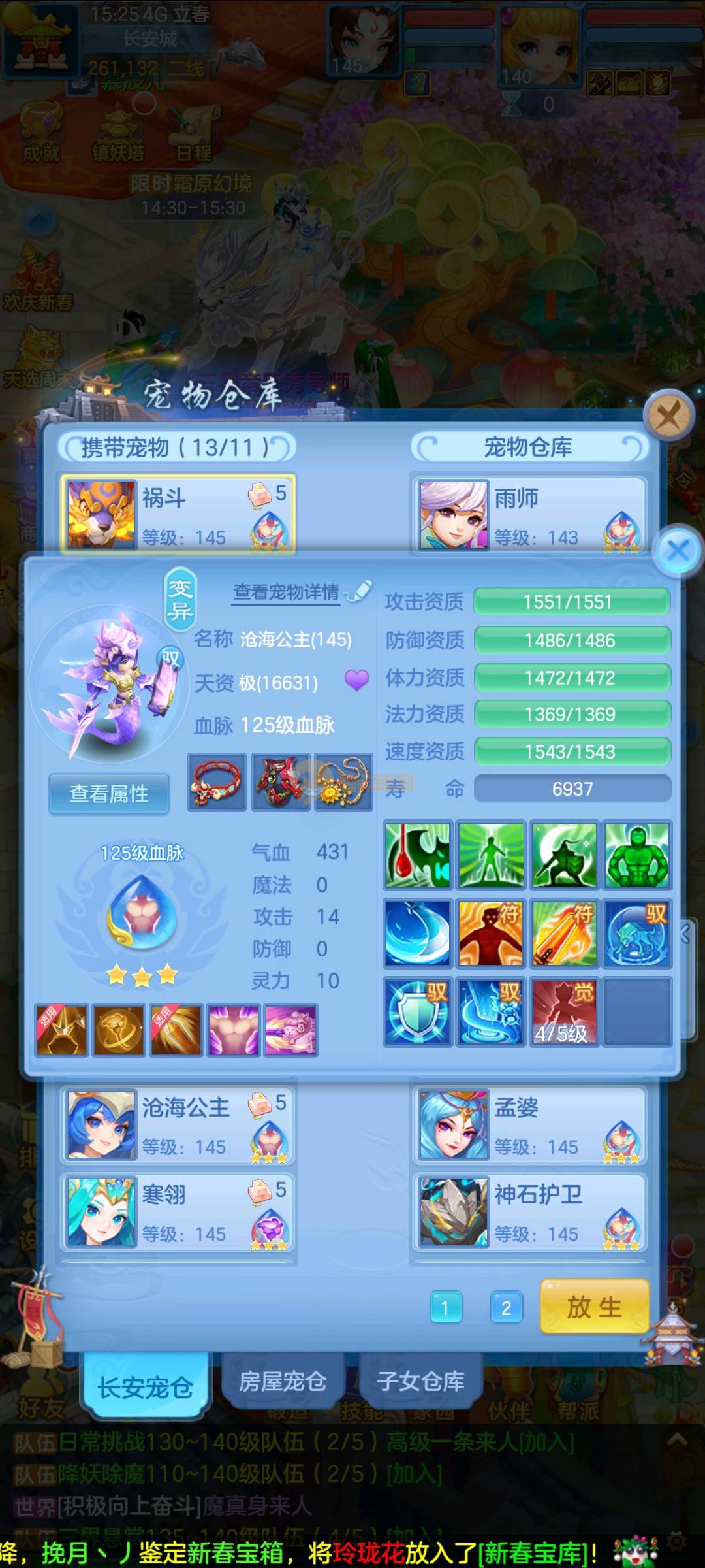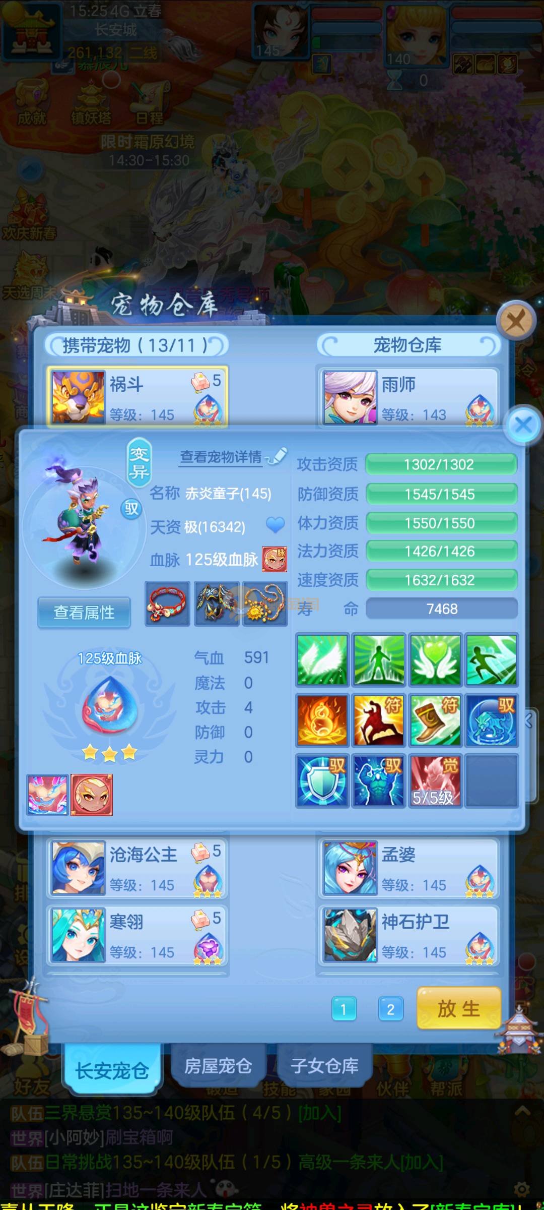 今年勇 140男魔王,三件14.4,不变卡灵力防御双1570+,变卡双1600+ 14个满兽魂宝宝 11专属血脉 5宠物皮肤 无双重,带庄园2980邮箱 1年换绑 验证码找懒懒