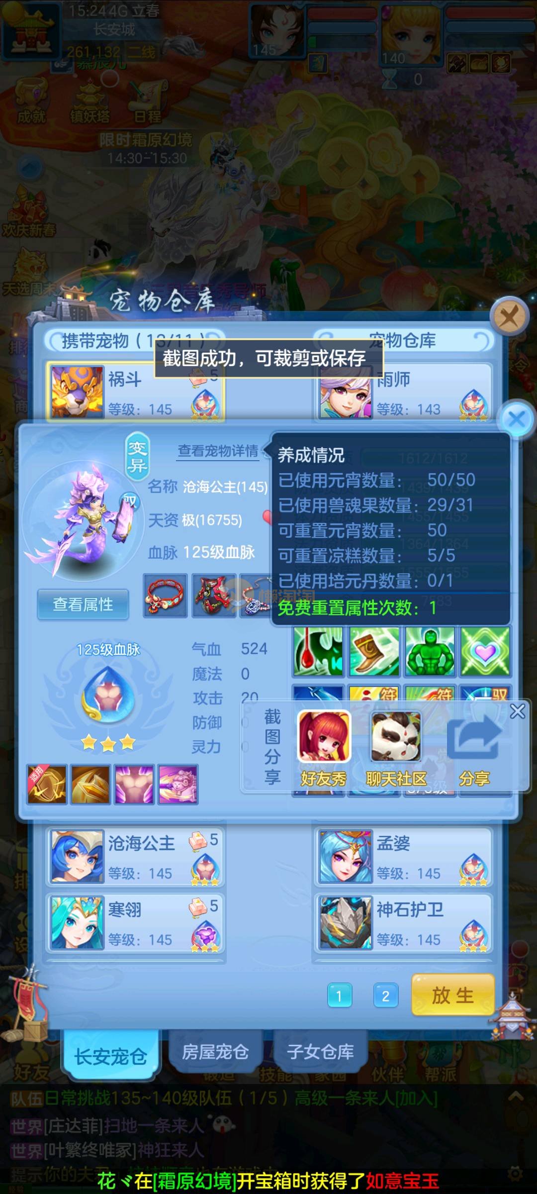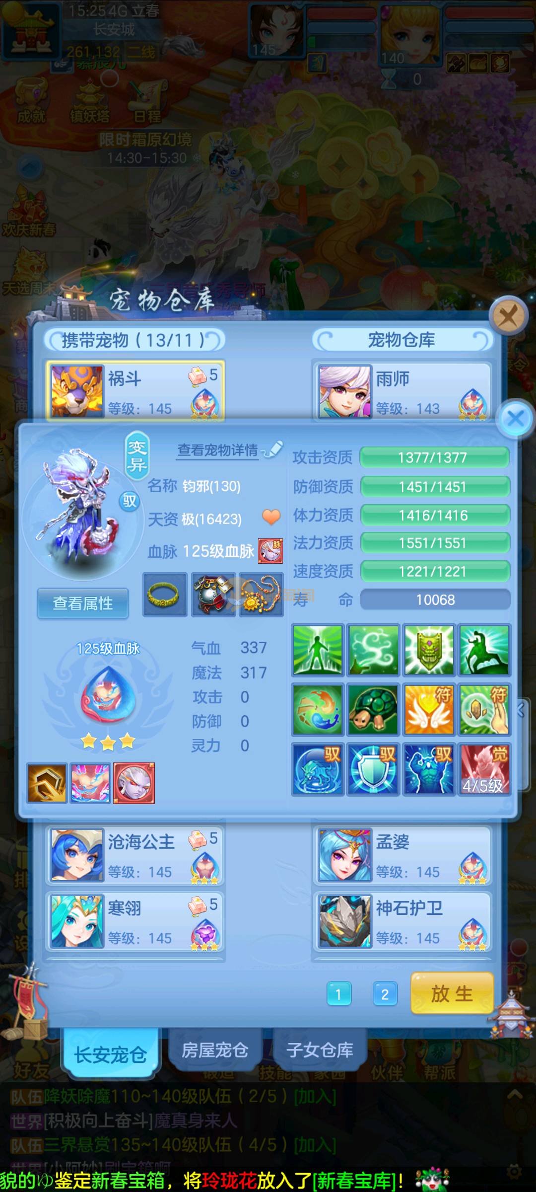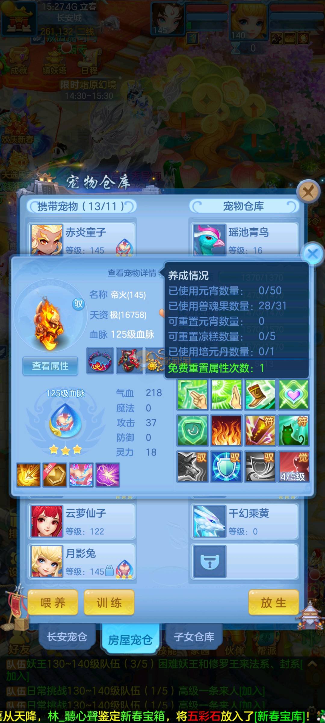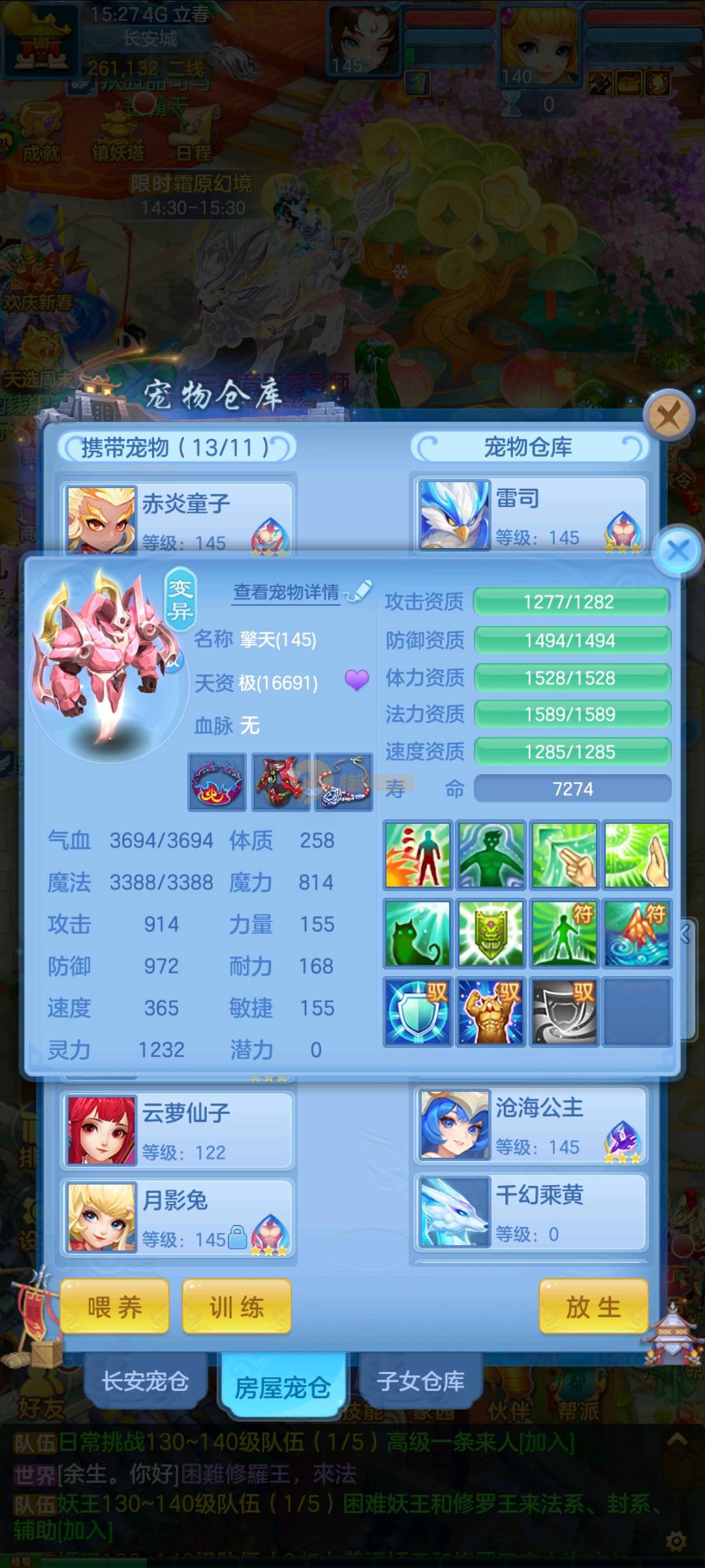 今年勇 140男魔王,三件14.4,不变卡灵力防御双1570+,变卡双1600+ 14个满兽魂宝宝 11专属血脉 5宠物皮肤 无双重,带庄园2980邮箱 1年换绑 验证码找懒懒
