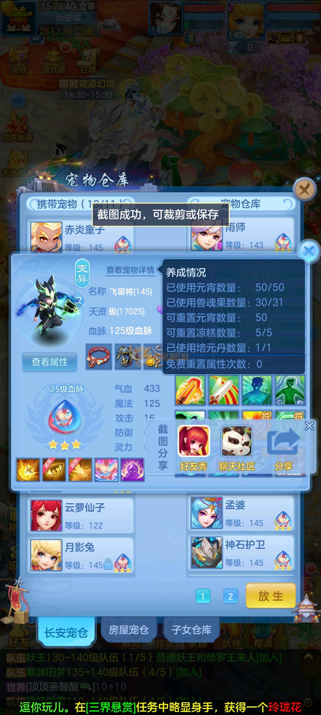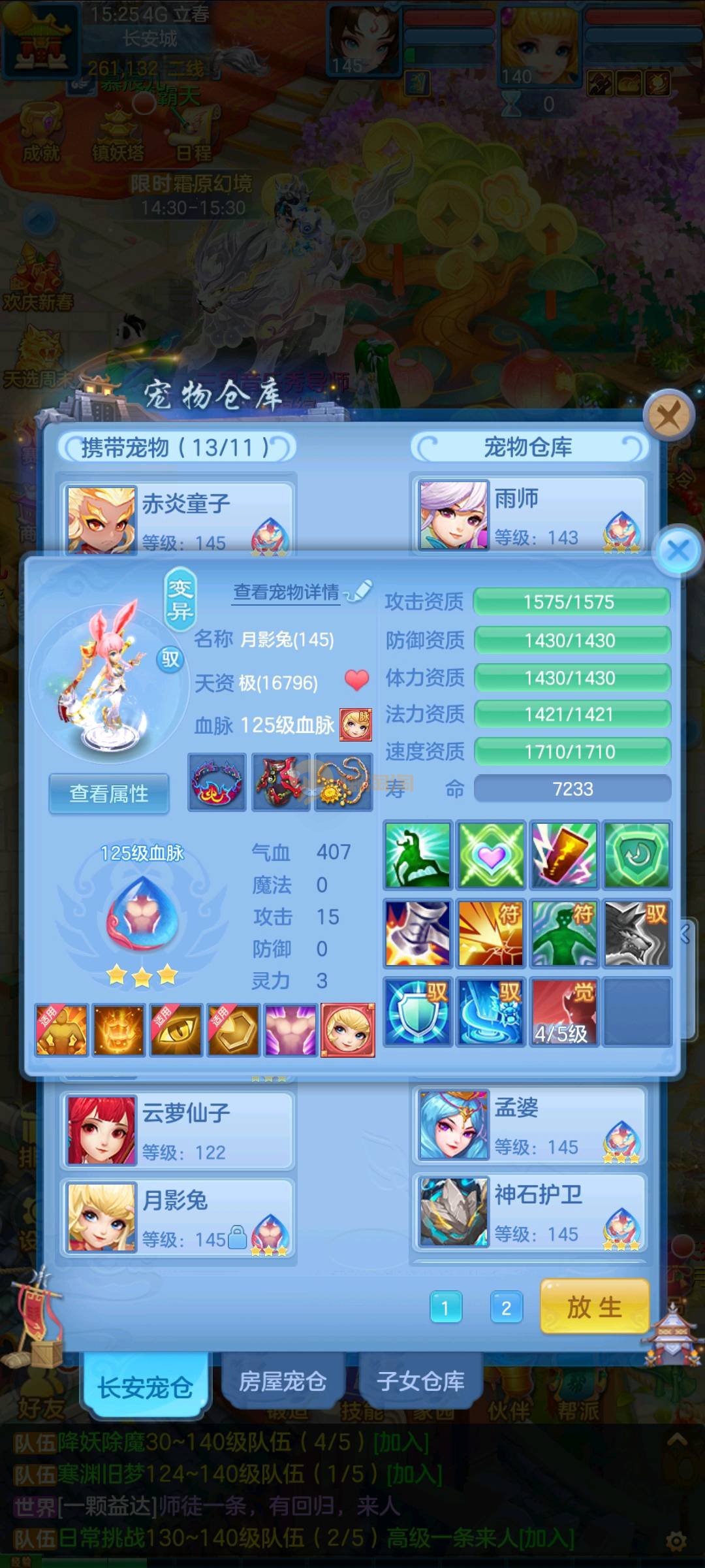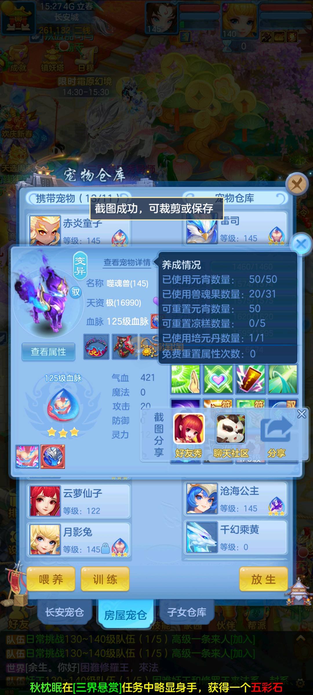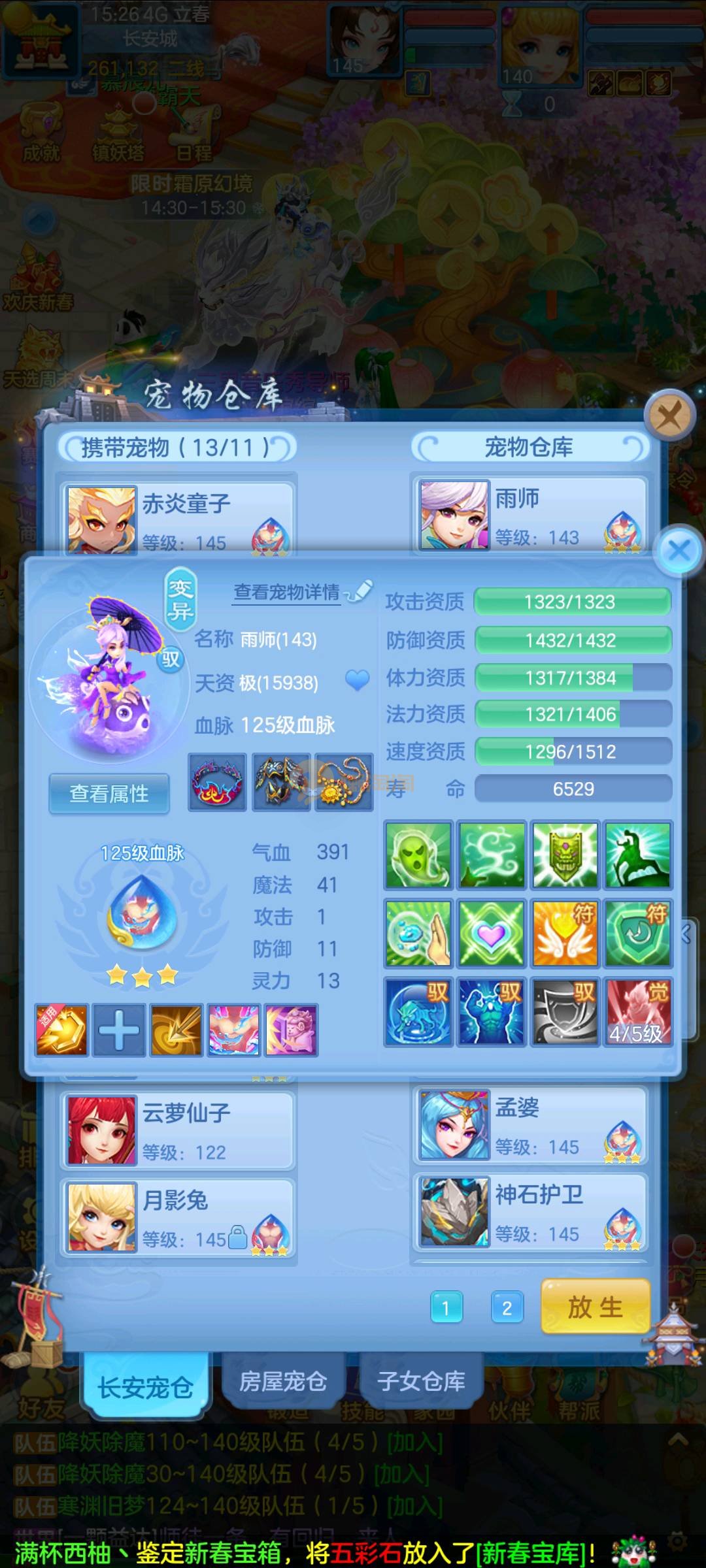 今年勇 140男魔王,三件14.4,不变卡灵力防御双1570+,变卡双1600+ 14个满兽魂宝宝 11专属血脉 5宠物皮肤 无双重,带庄园2980邮箱 1年换绑 验证码找懒懒