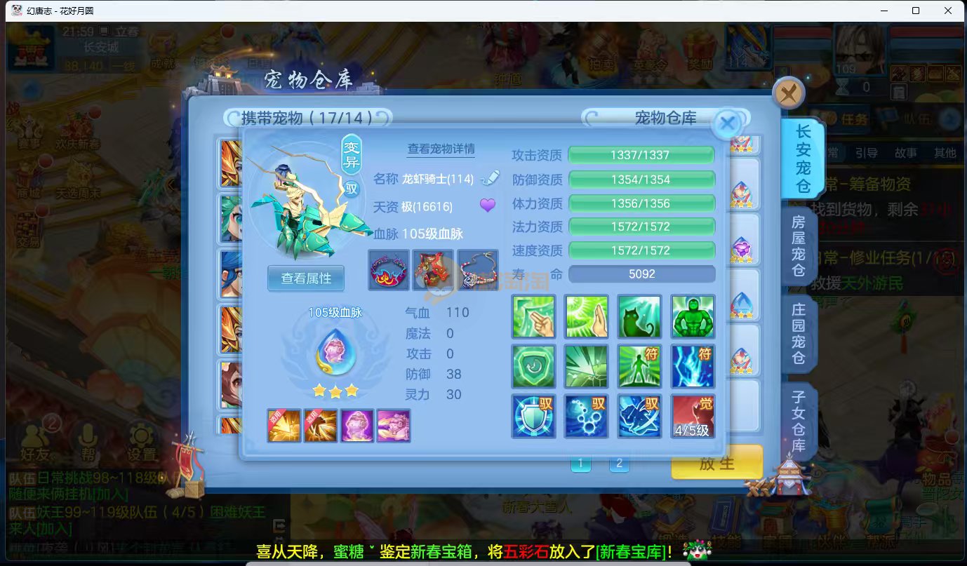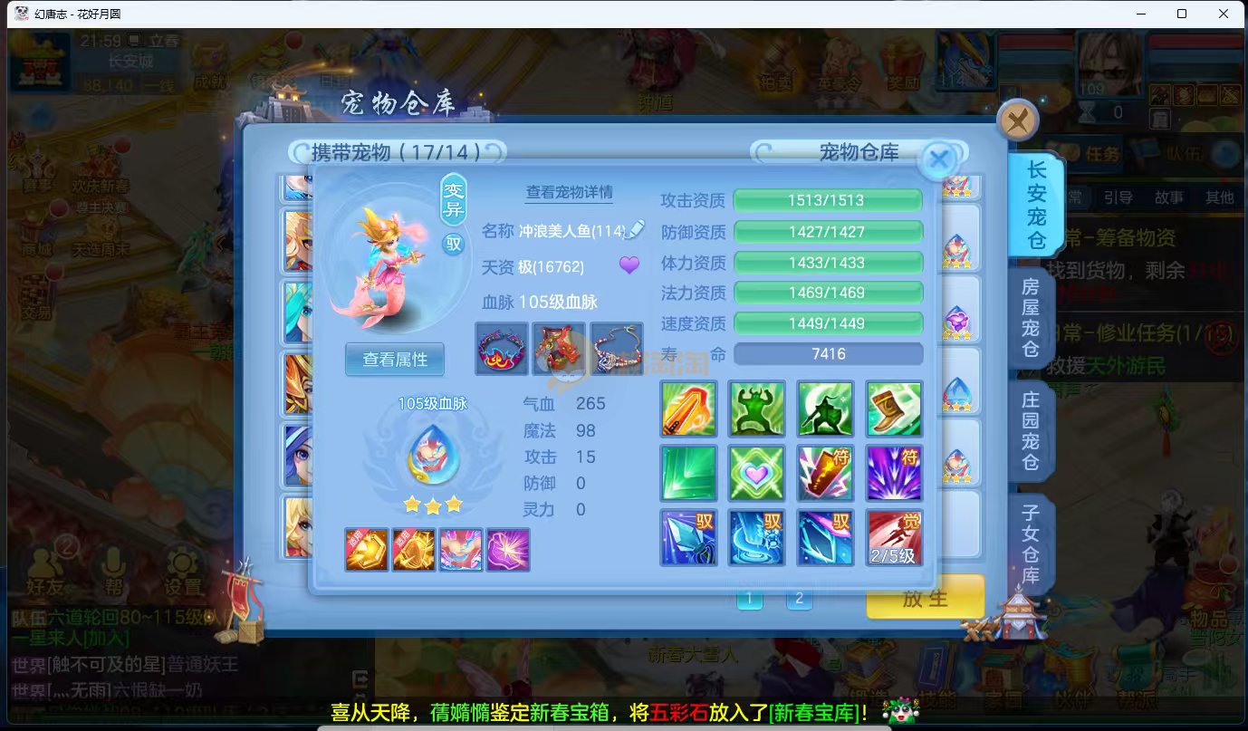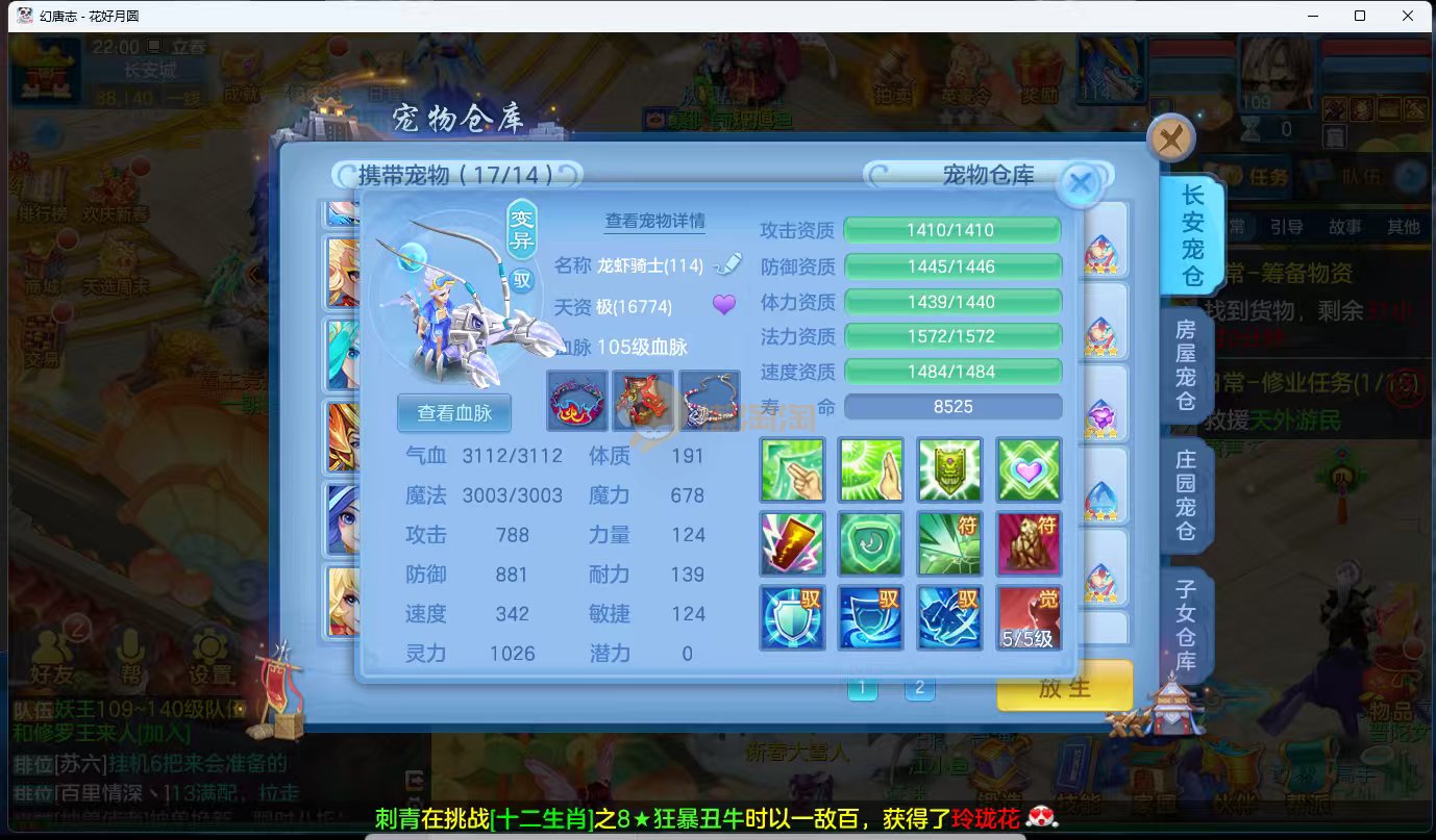 今年勇 140男魔王,三件14.4,不变卡灵力防御双1570+,变卡双1600+ 14个满兽魂宝宝 11专属血脉 5宠物皮肤 无双重,带庄园2980邮箱 1年换绑 验证码找懒懒