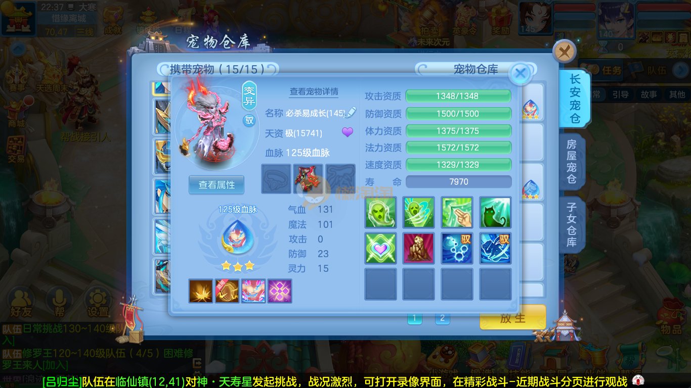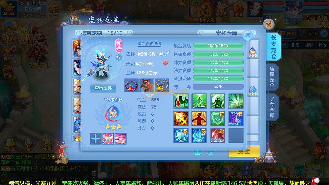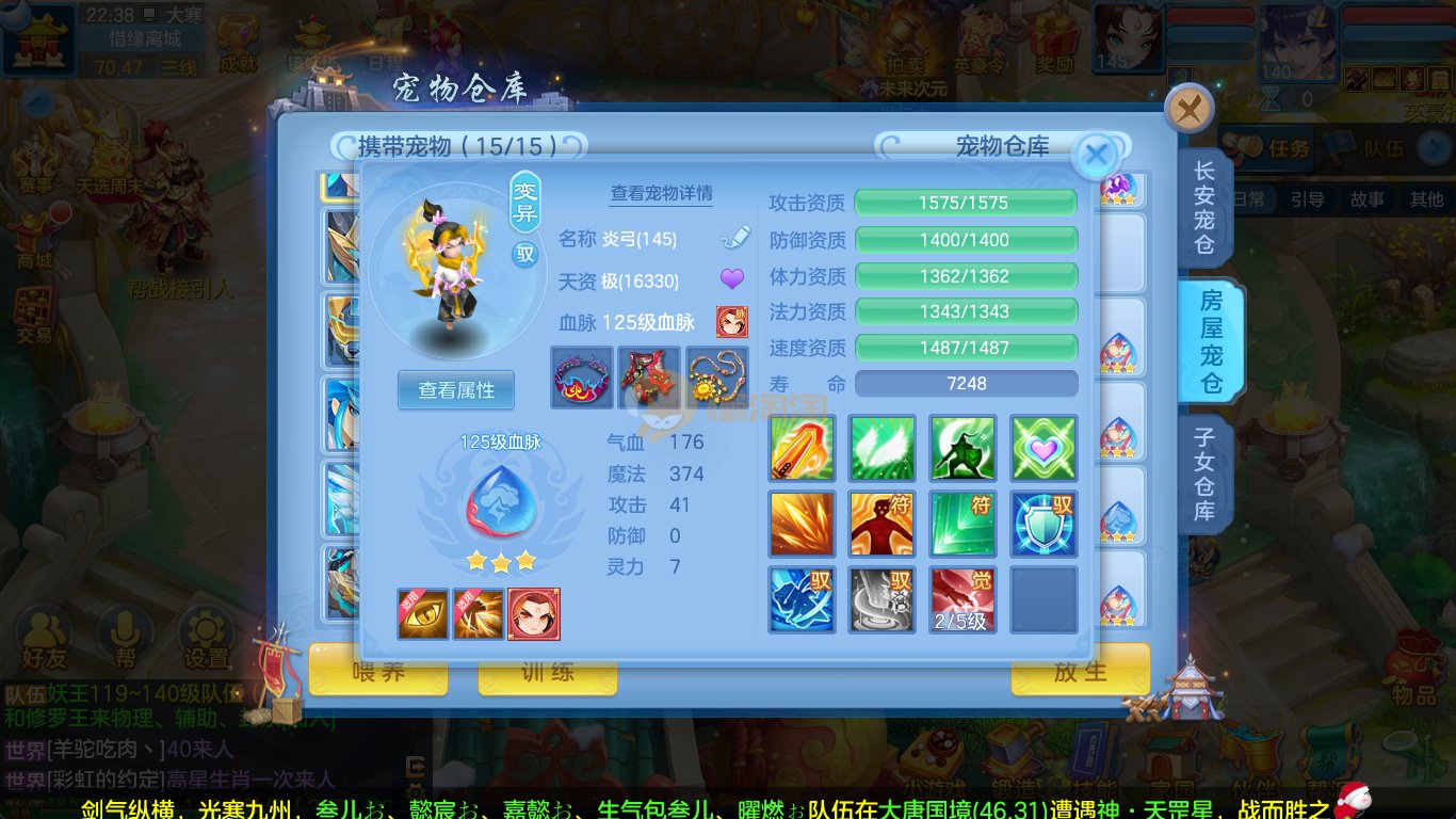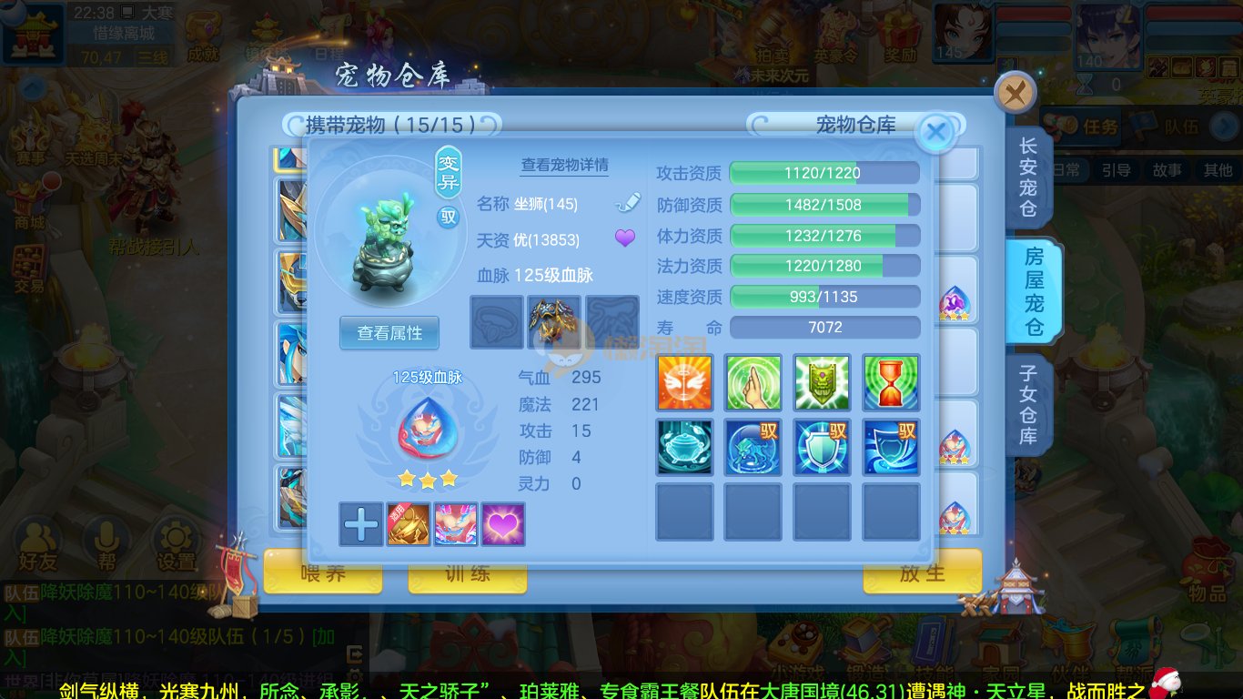 强化仙一龙两蛇一马。特技齐全,宝宝皮肤全,10个满兽魂,辅助特技妙手。13段混12,还有145万银,1884金,坐骑衣橱全,单身海景房,资源满满