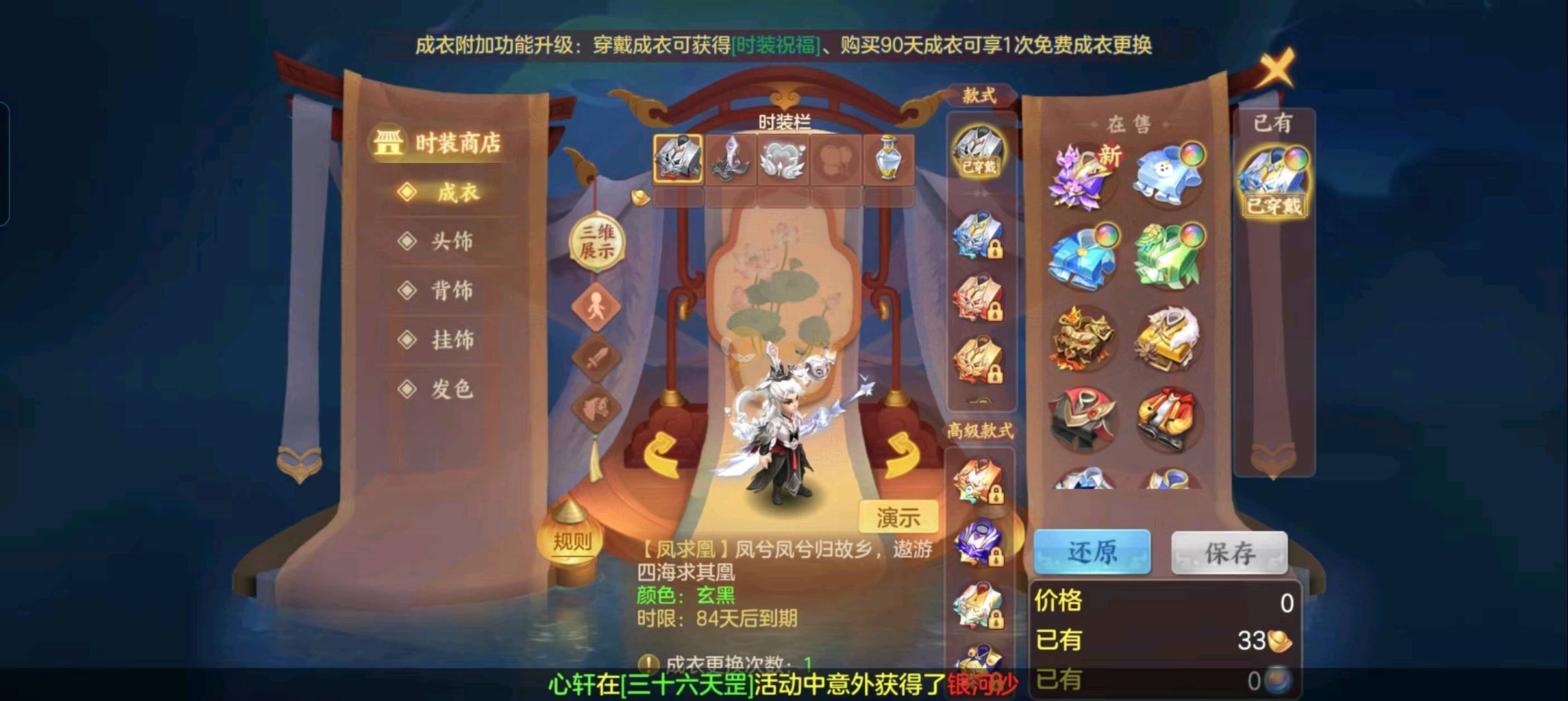 140男方寸 三神带几百万银子 资源很多 时装刚买 到手直接玩