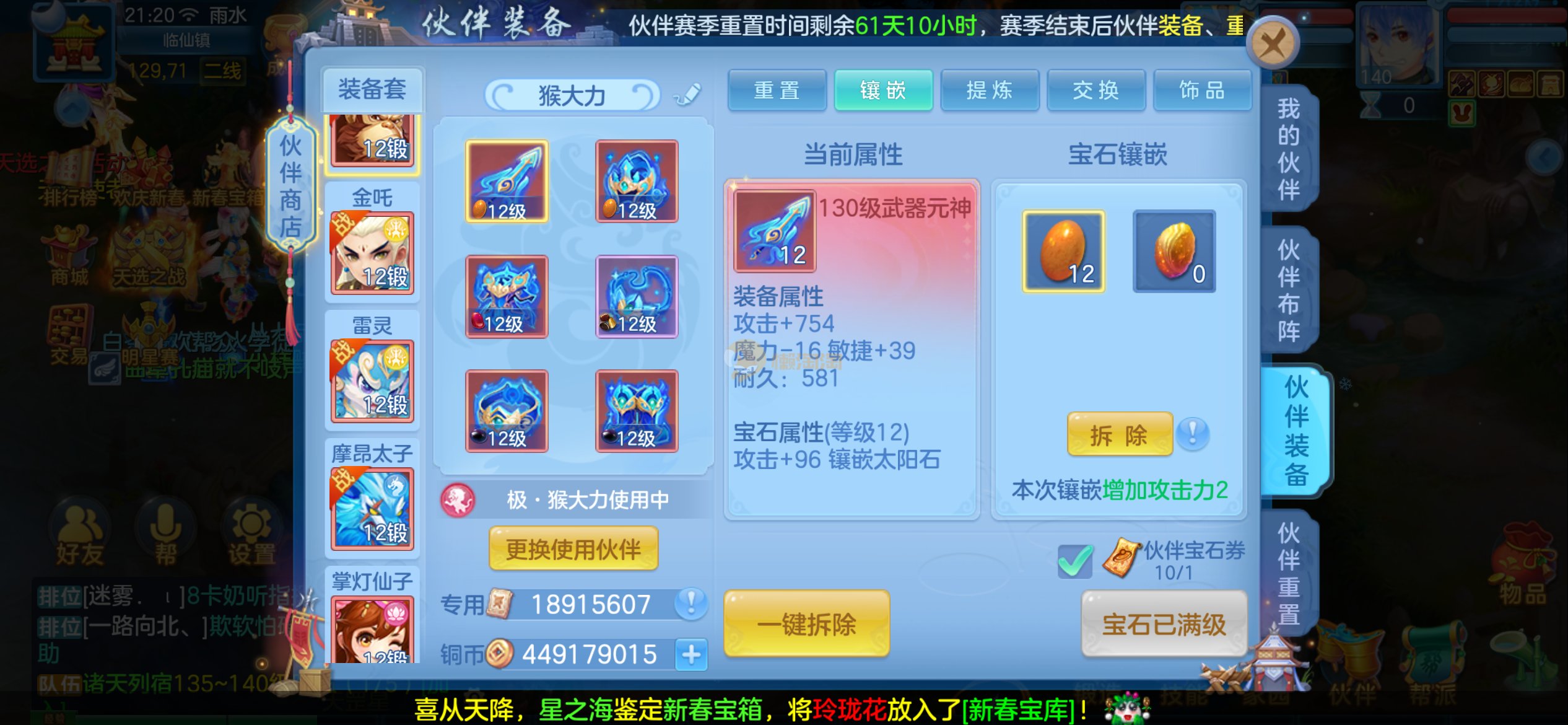 今年勇1仙强化4神强化,顶级封/奶、血脉、觉醒拉满