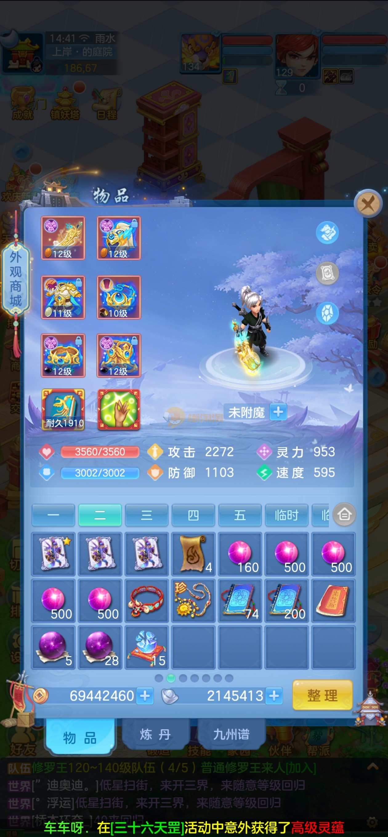 109狮子12混11一内丹蛇双坐骑有泼天日常无压力可打架仓库44个内丹碎片20几个神兽灵可小刀合适秒交易