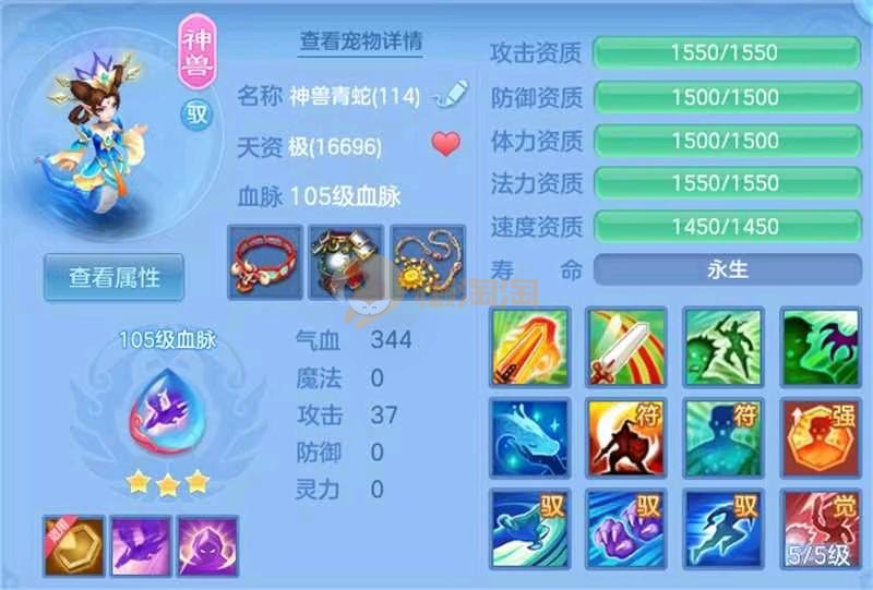 强化仙一龙两蛇一马。特技齐全,宝宝皮肤全,10个满兽魂,辅助特技妙手。13段混12,还有145万银,1884金,坐骑衣橱全,单身海景房,资源满满