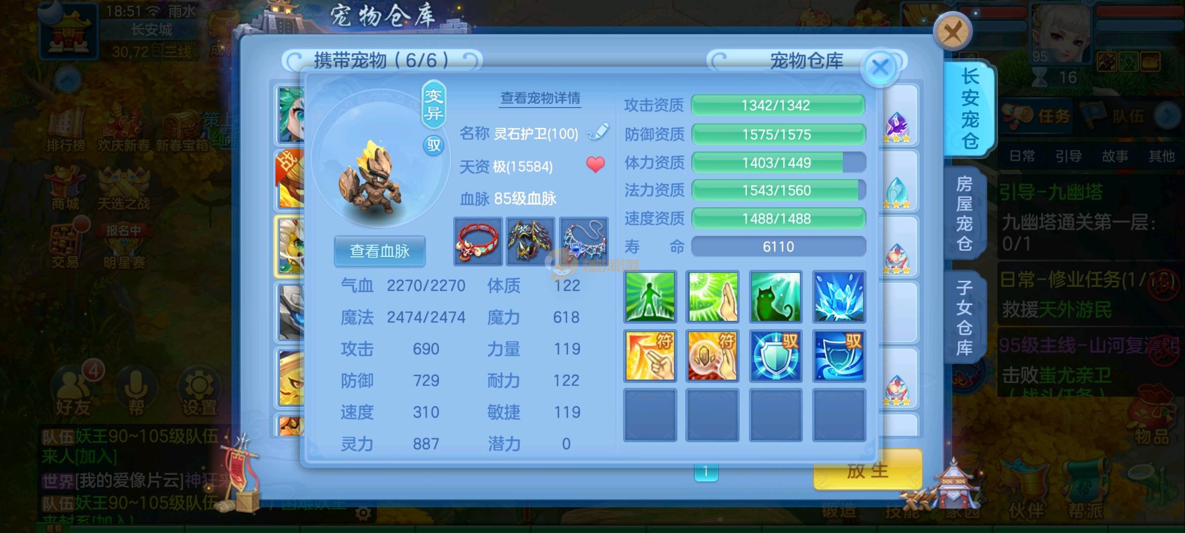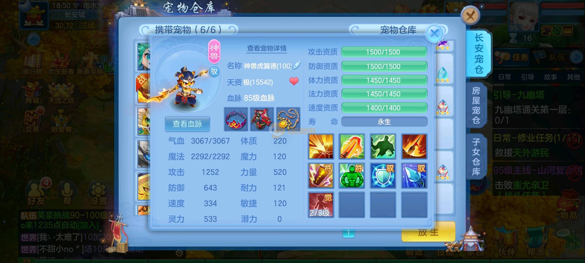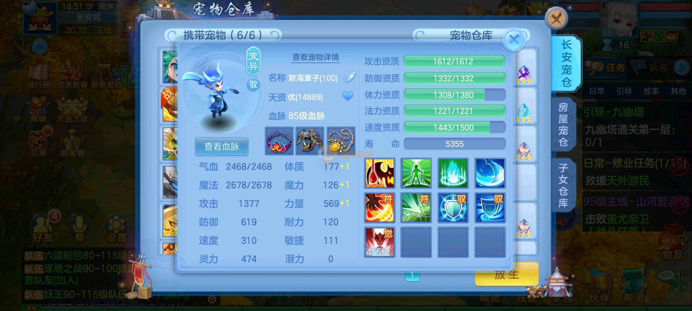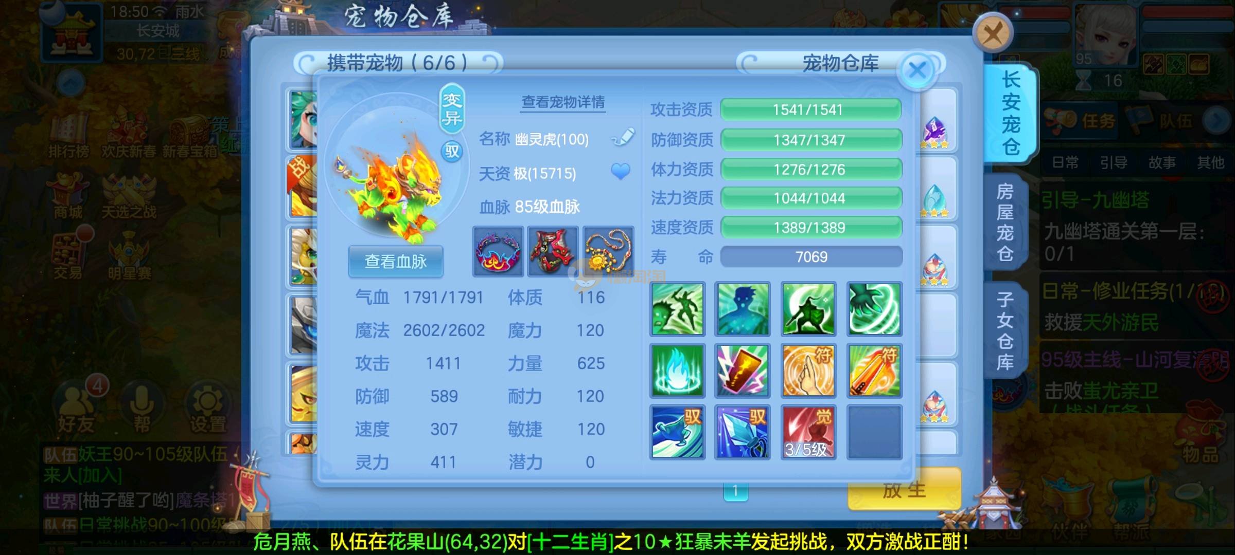 强化仙一龙两蛇一马。特技齐全,宝宝皮肤全,10个满兽魂,辅助特技妙手。13段混12,还有145万银,1884金,坐骑衣橱全,单身海景房,资源满满