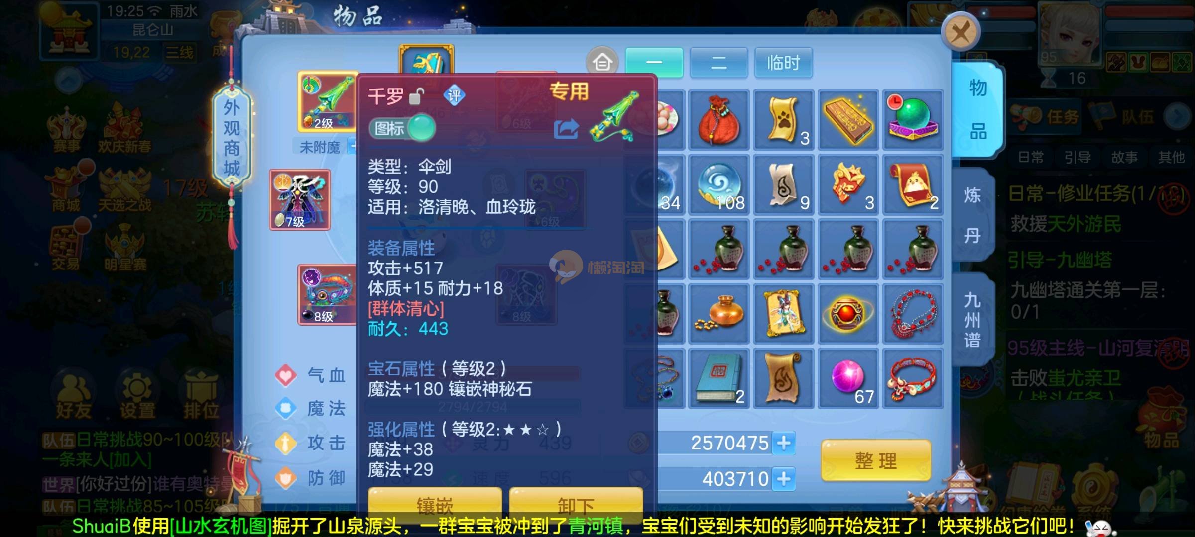 109狮子12混11一内丹蛇双坐骑有泼天日常无压力可打架仓库44个内丹碎片20几个神兽灵可小刀合适秒交易