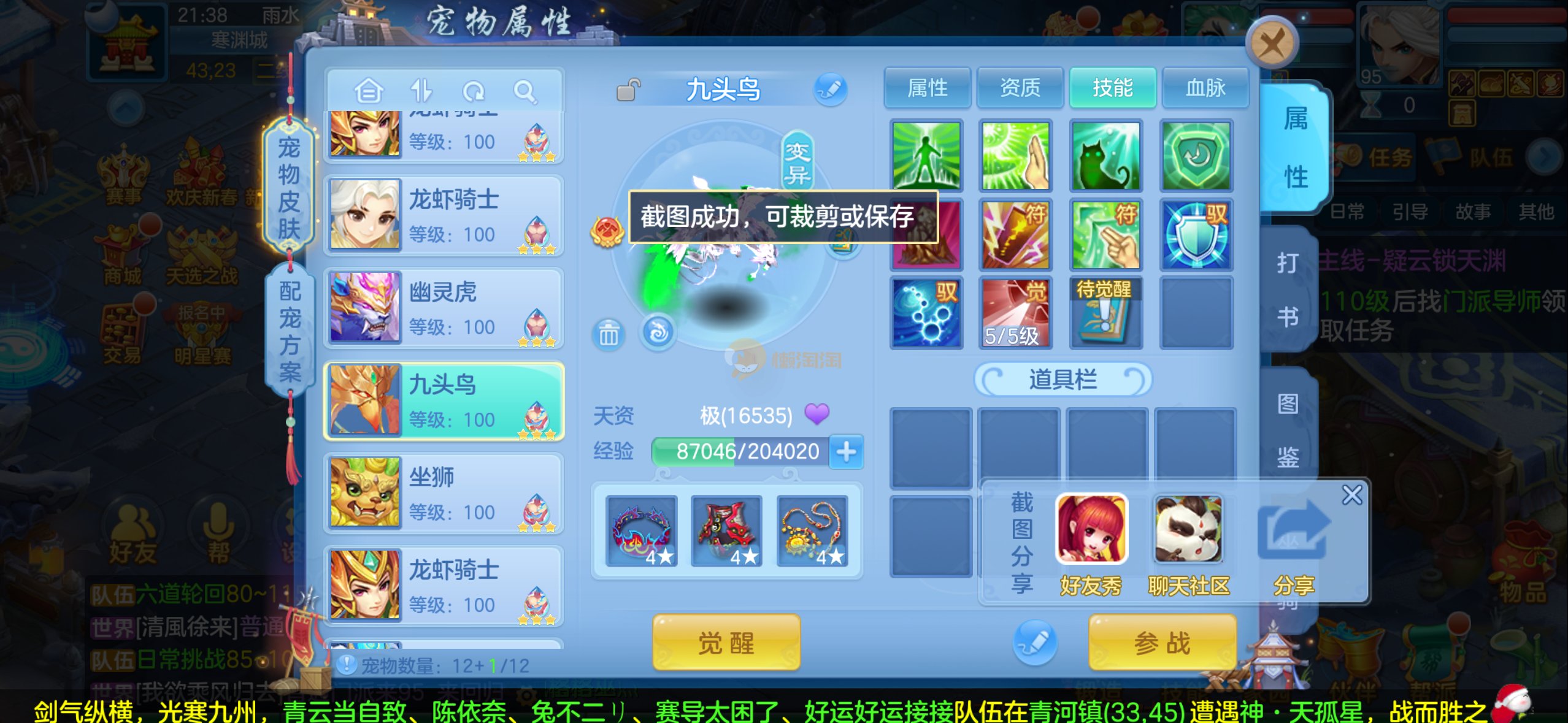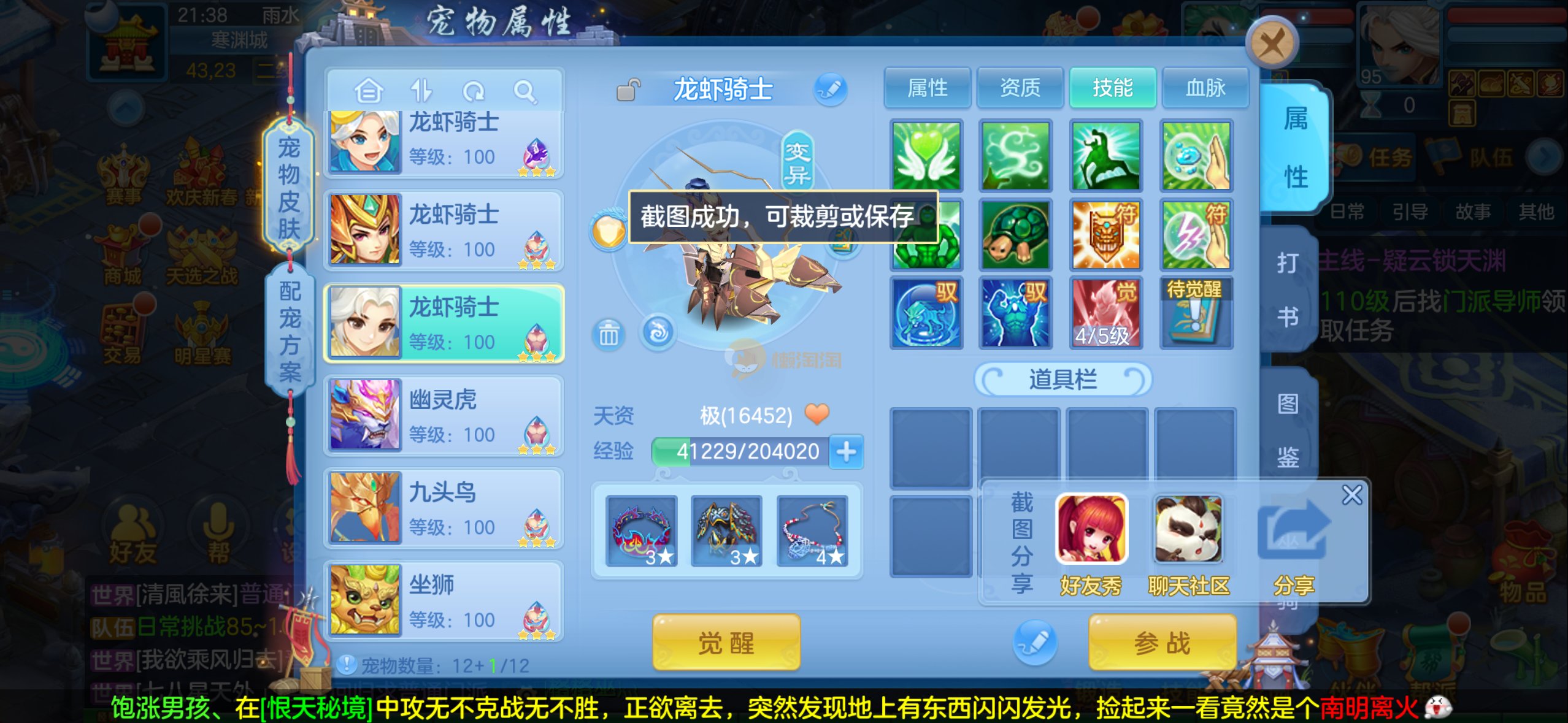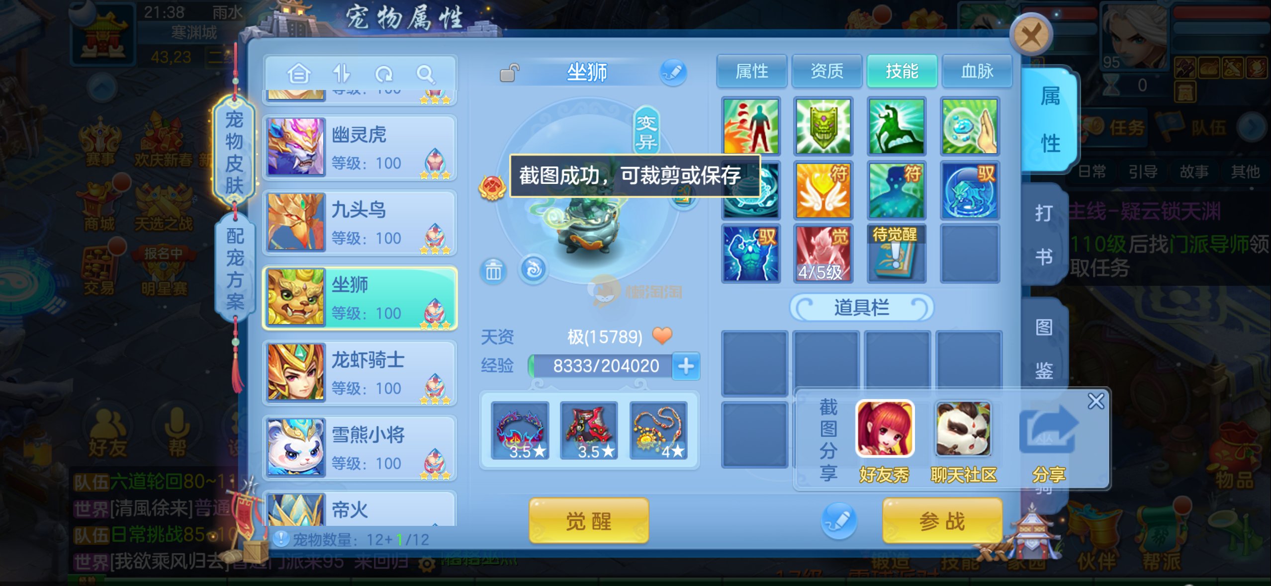 109狮子12混11一内丹蛇双坐骑有泼天日常无压力可打架仓库44个内丹碎片20几个神兽灵可小刀合适秒交易