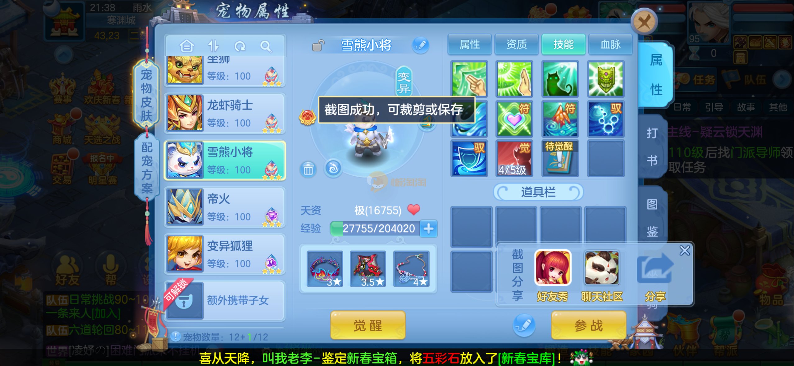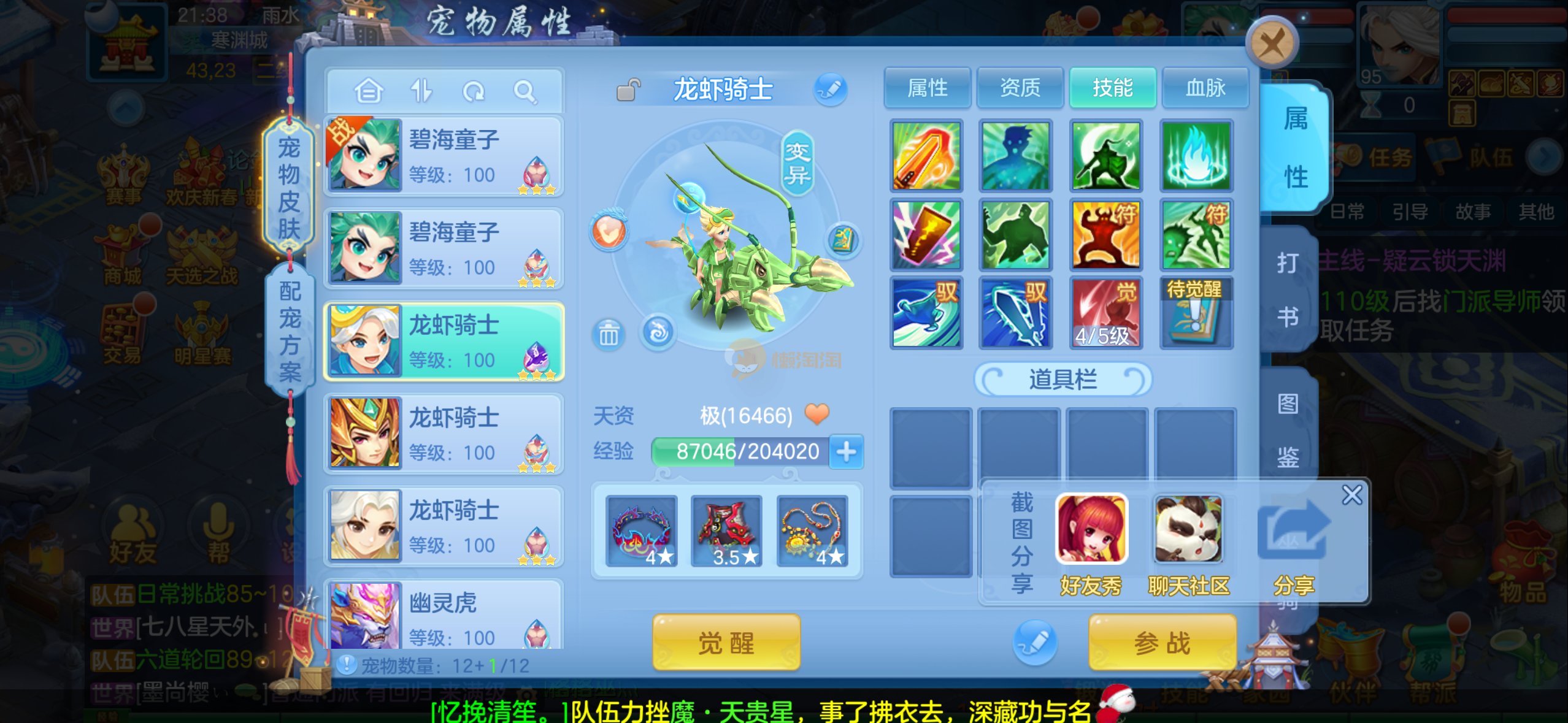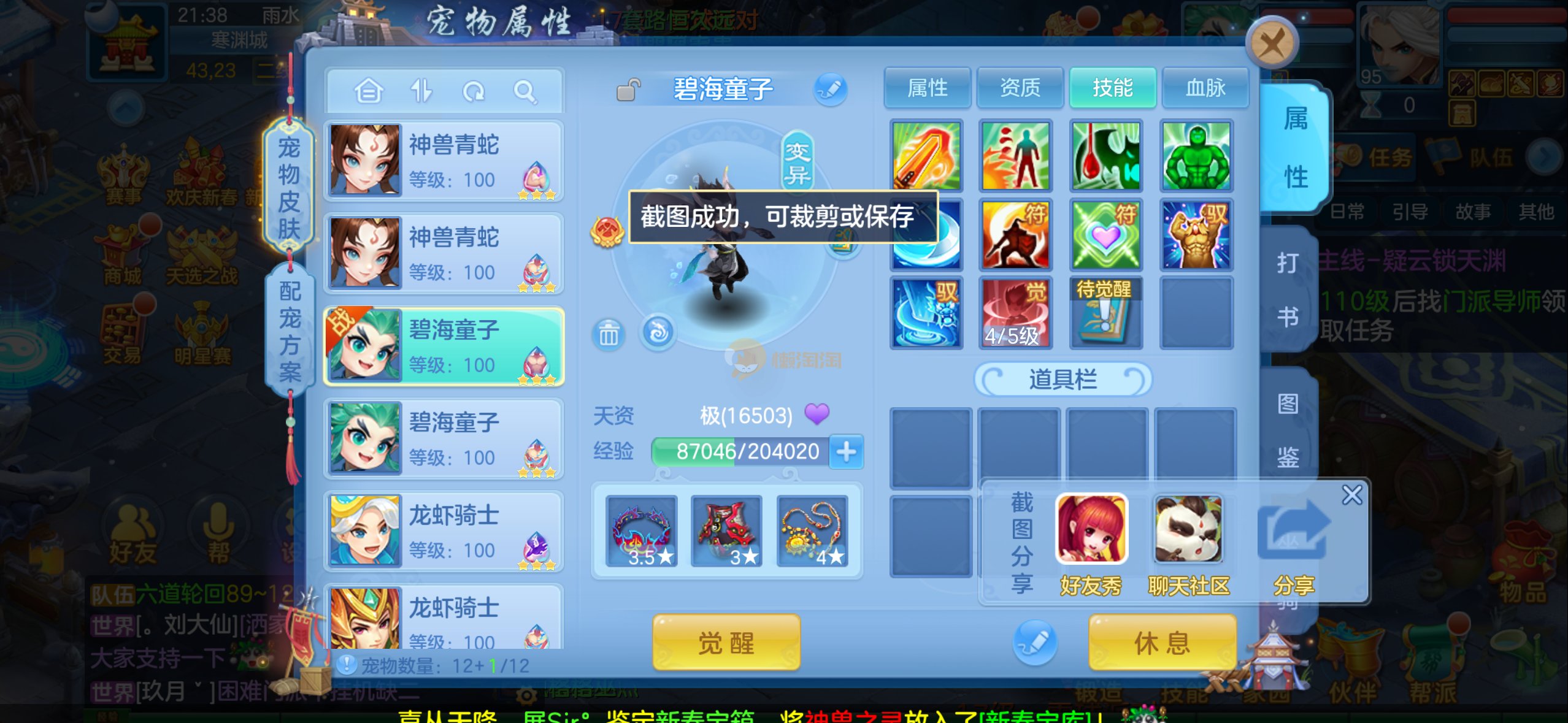 109狮子12混11一内丹蛇双坐骑有泼天日常无压力可打架仓库44个内丹碎片20几个神兽灵可小刀合适秒交易