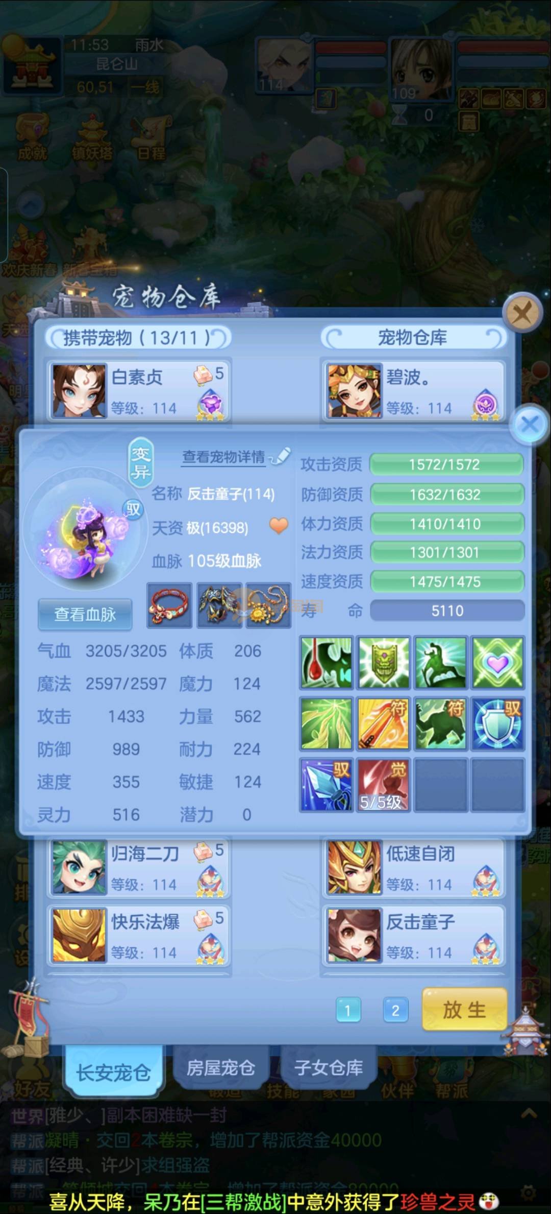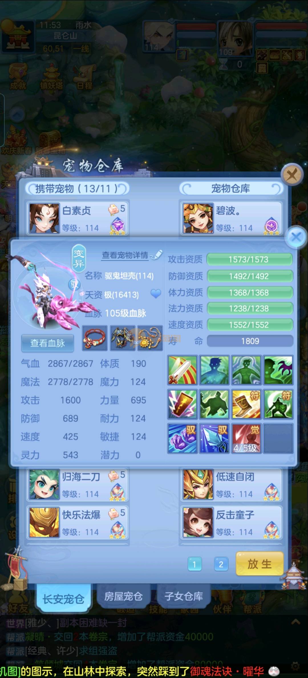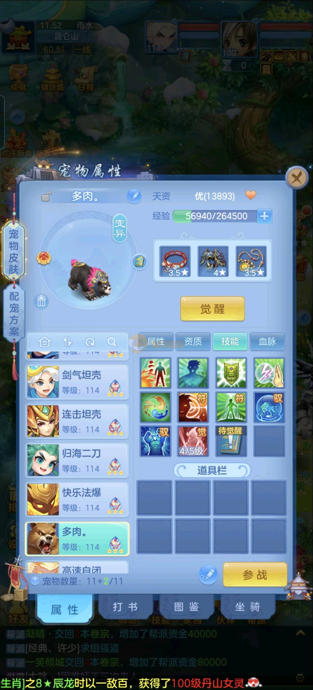 109狮子12混11一内丹蛇双坐骑有泼天日常无压力可打架仓库44个内丹碎片20几个神兽灵可小刀合适秒交易