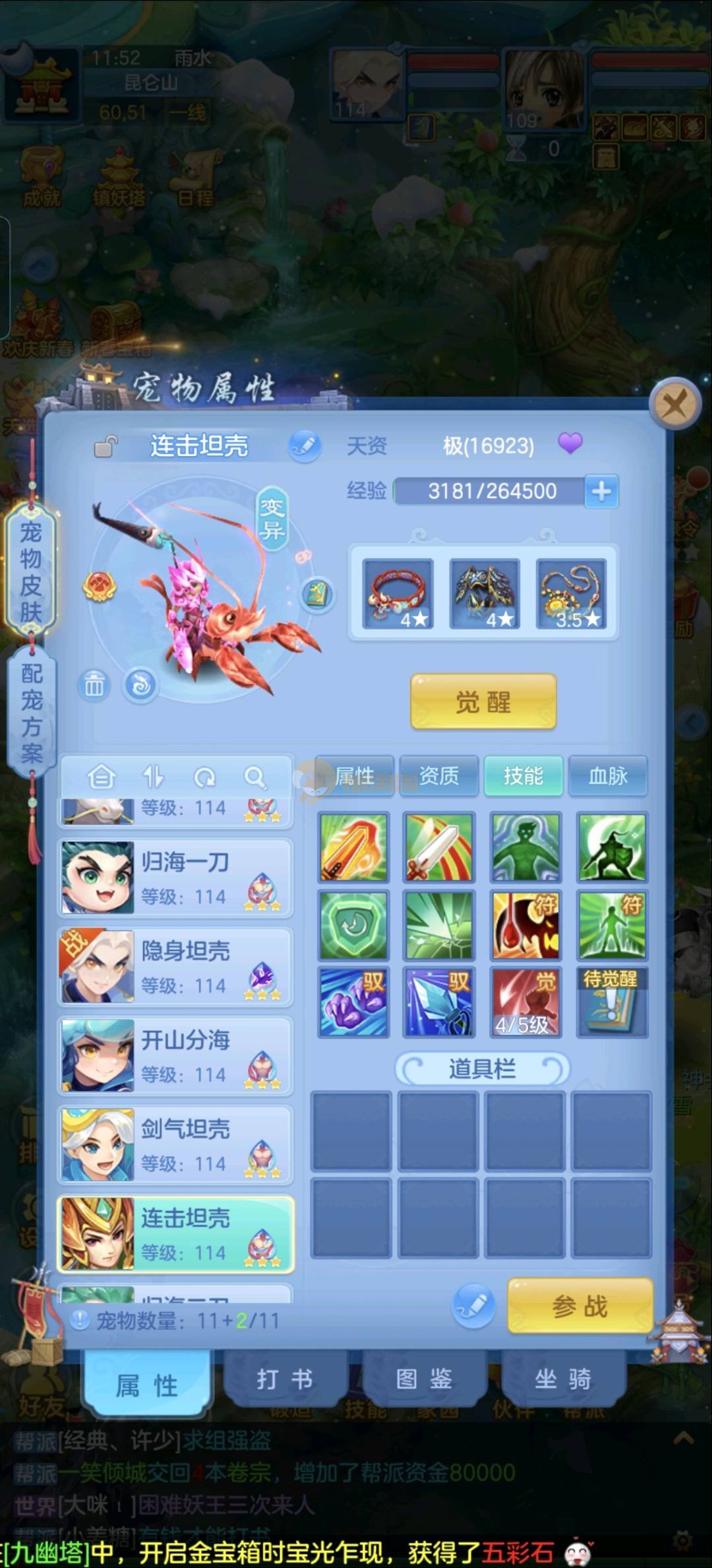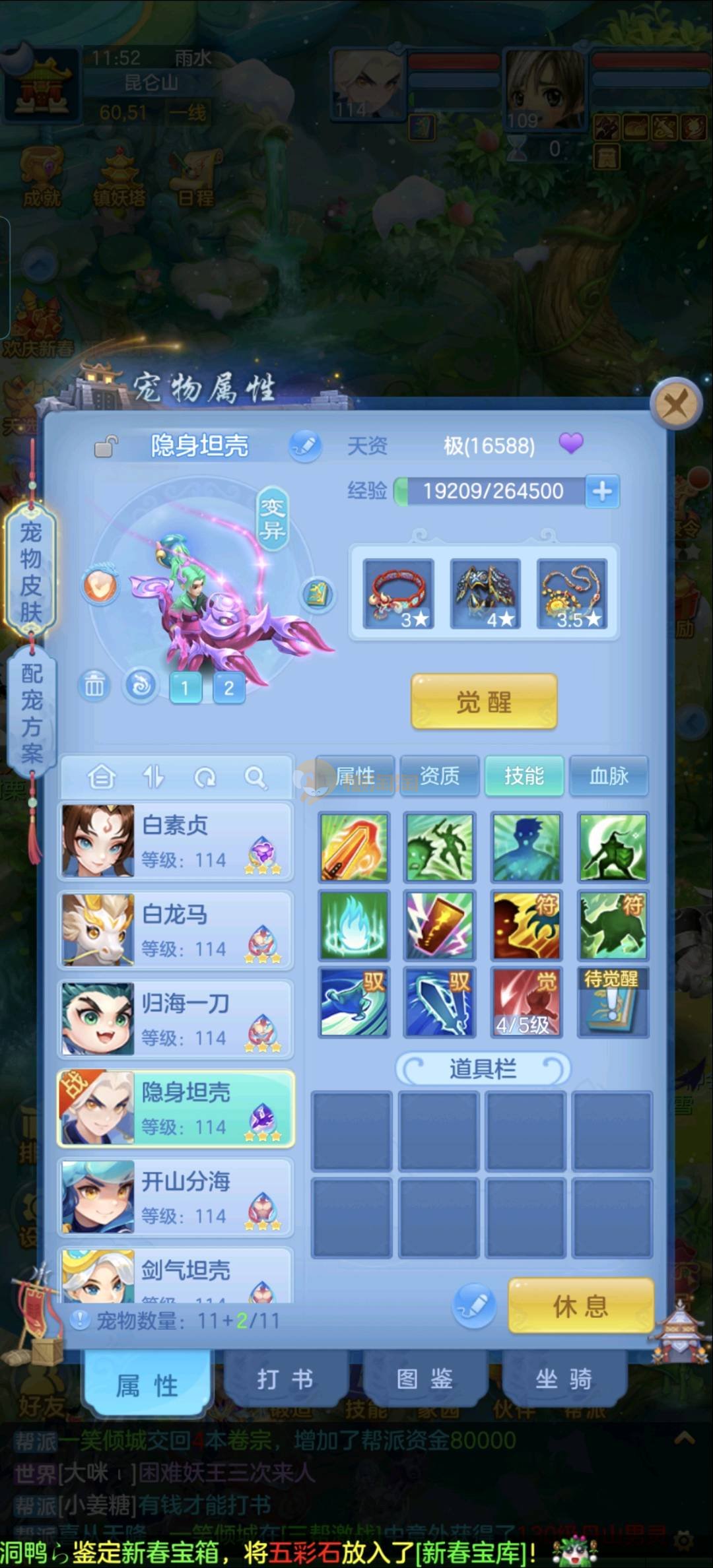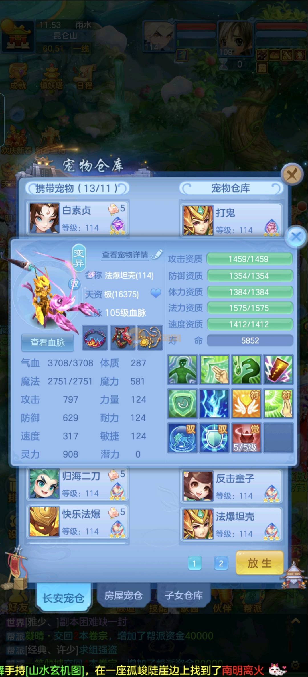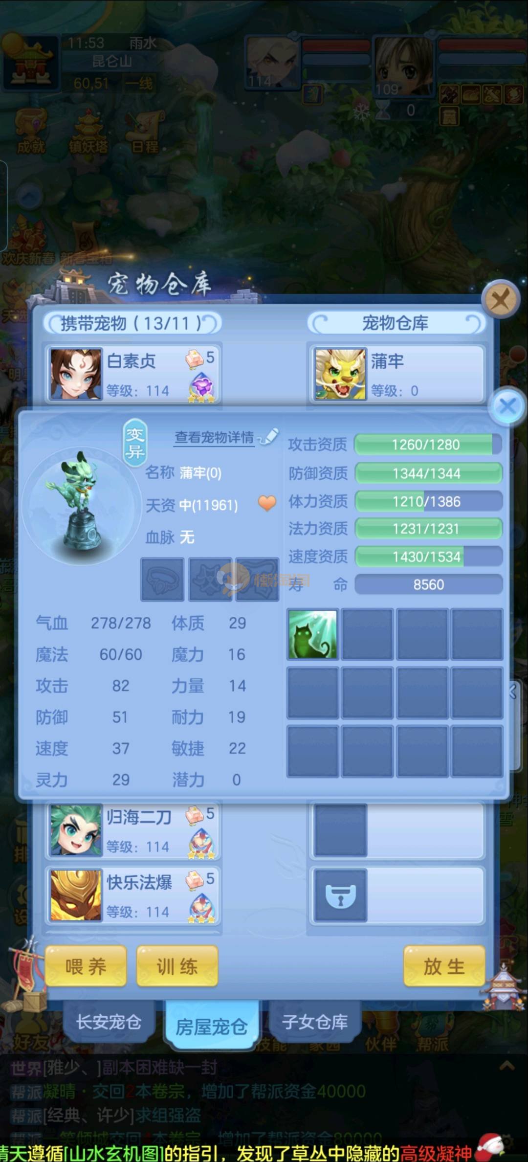 109狮子12混11一内丹蛇双坐骑有泼天日常无压力可打架仓库44个内丹碎片20几个神兽灵可小刀合适秒交易